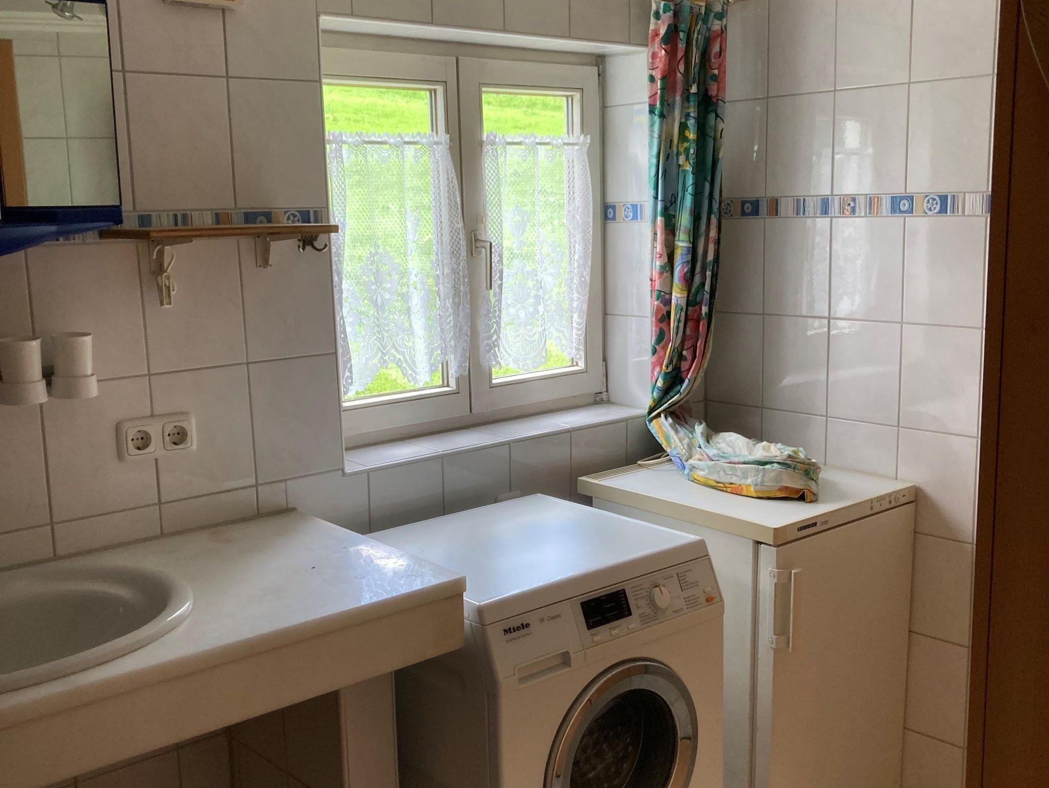 Die Küche ist voll eingerichtet Mit Kaffeevollautomat, Microwelle, Backofen, Kühlschrank mit großem Gefrierfach, Brotschneidemaschine, in der Wohnung befinden sich sogar eine Waschmaschine und ein Gefrierschrank.