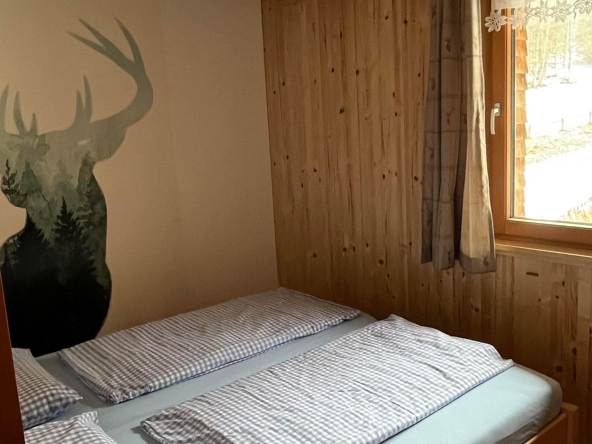 Genieß eine unbeschwerte Zeit in dieser schönen Ferienwohnung, geräumige, ruhige Unterkunft mit wunderschönem Blick auf Berge, Wiesen & Wälder; zwei Schlafzimmer, Küche mit Wohn- & Essbereich, großes Sofa, Satelittenfernseher, ein Badezimmer, großzügiger Balkon, mit Esstisch, im Winter verglast, als Wintergarten; voll ausgestatteter Küche, geräumiger Wohnraum, Komfort Matratzen für wohltuenden Schlaf; Vollholz Haus - liebevoll eingerichtet