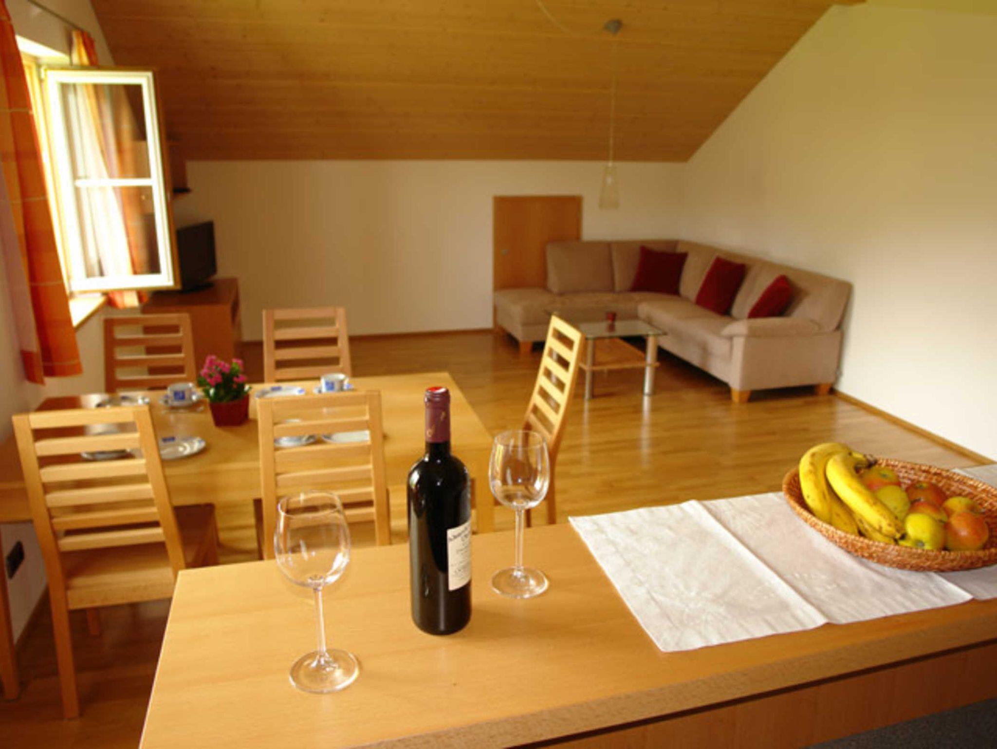 Unsere 85 m2 Ferienwohnung befindet sich im Haupthaus des Ferienhof Eberle. Traditionelle Architektur mit Naturholz sorgen für Ihr Wohlbefinden.