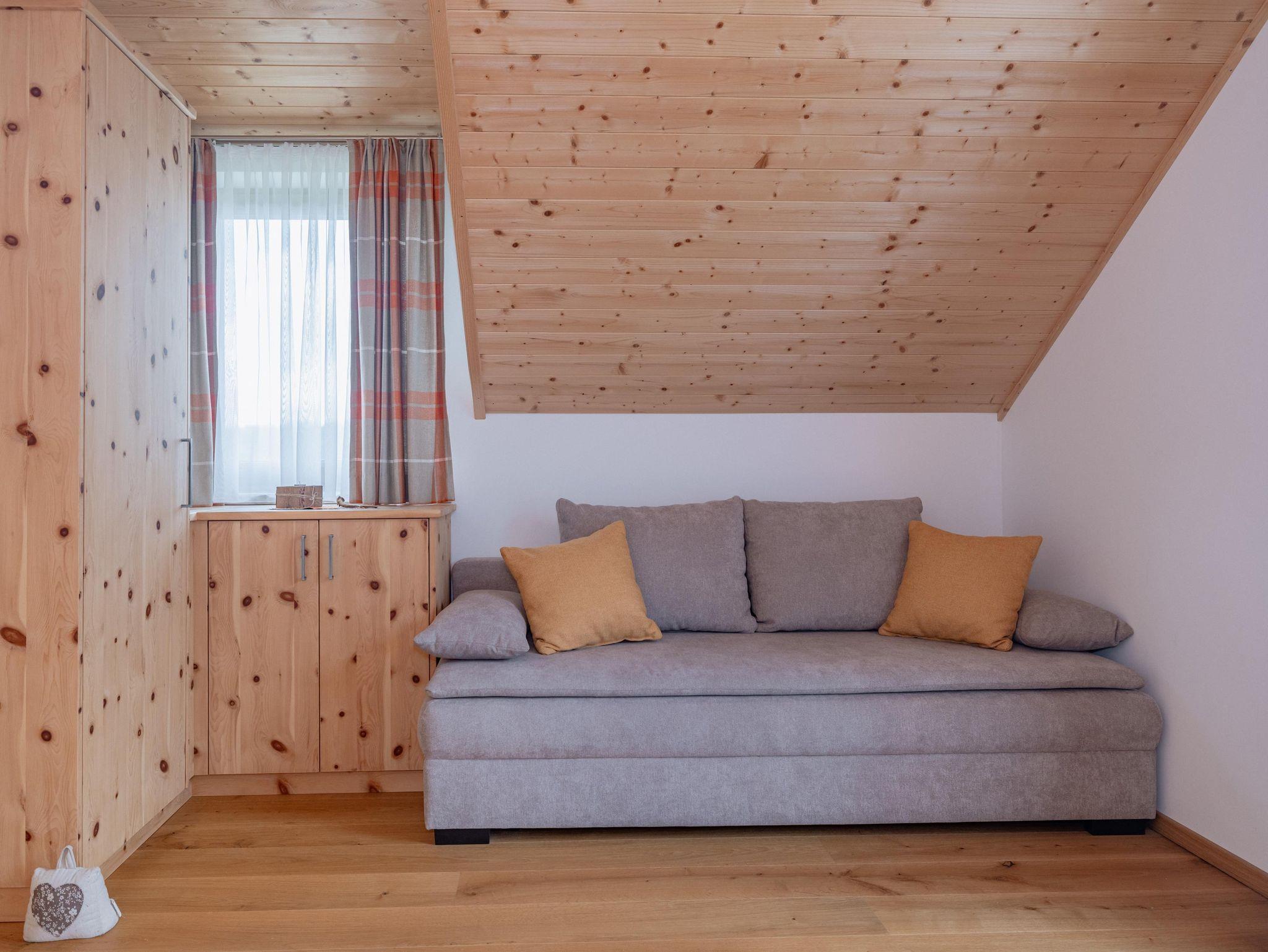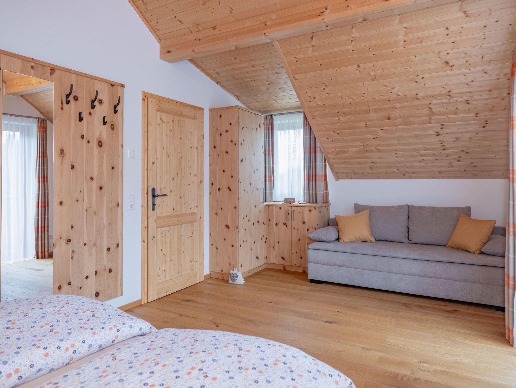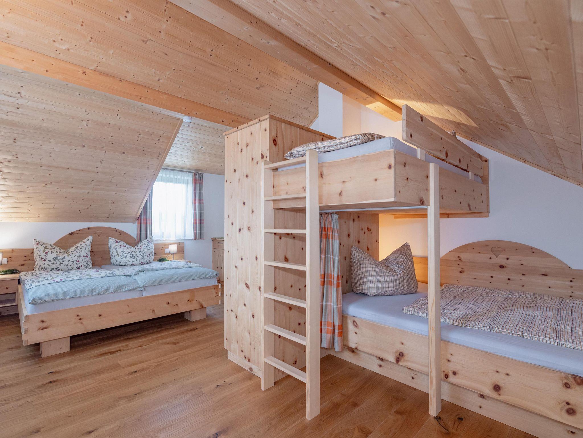 Zirbenholz ist nicht nur ein Baum, sondern ein Wundermittel für das Raumklima. Es verströmt einen angenehmen Duft und seine gesundheitlichen Vorteile sind seit langem bekannt. Studien zeigen, dass Zirbenholz im Schlafzimmer den Schlaf verbessert und zur Entspannung beiträgt. Erlebt diese Vorteile in unseren beiden liebevoll gestalteten Zirben-Schlafzimmern, die Platz für bis zu 8 Personen bieten.