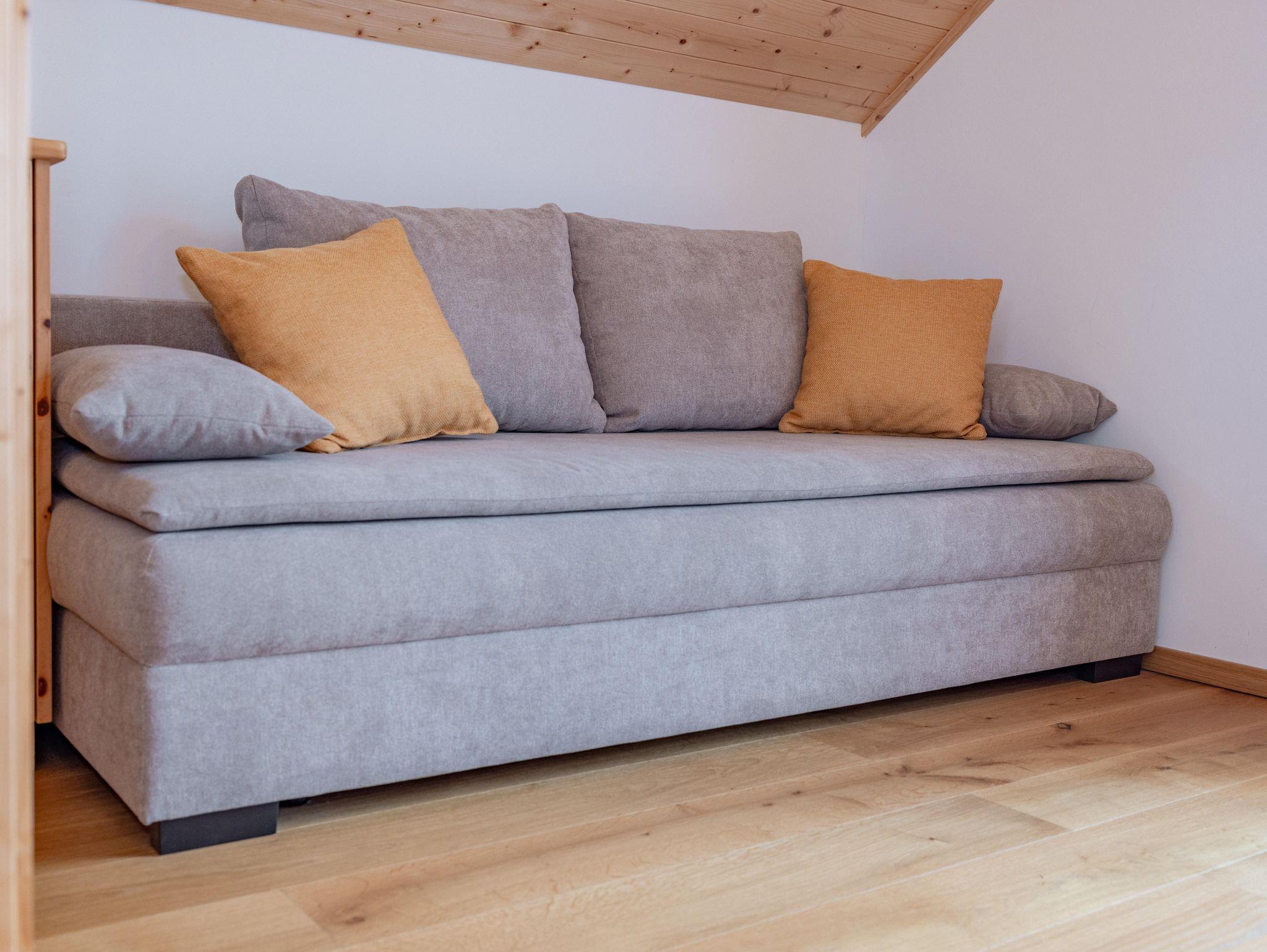 Unsere liebevoll eingerichtete Hütte wurde mit regionalen Materialien erbaut und verfügt über zwei gemütliche Zirbenschlafzimmer. Ein Schlafzimmer ist mit einem Doppelbett und einer ausziehbaren Couch ausgestattet. Das zweite Schlafzimmer bietet ein Doppelbett sowie ein Stockbett mit Matratzen in den Maßen 90 x 200 cm und 140 x 200 cm. Sämtliche Einrichtungsgegenstände wurden aus regionalem Zirbenholz gefertigt. Die Küche wurde von einem Tischler aus dem Nachbarort eigens für die Hütte angefertigt und besticht durch ihre hochwertige Verarbeitung.