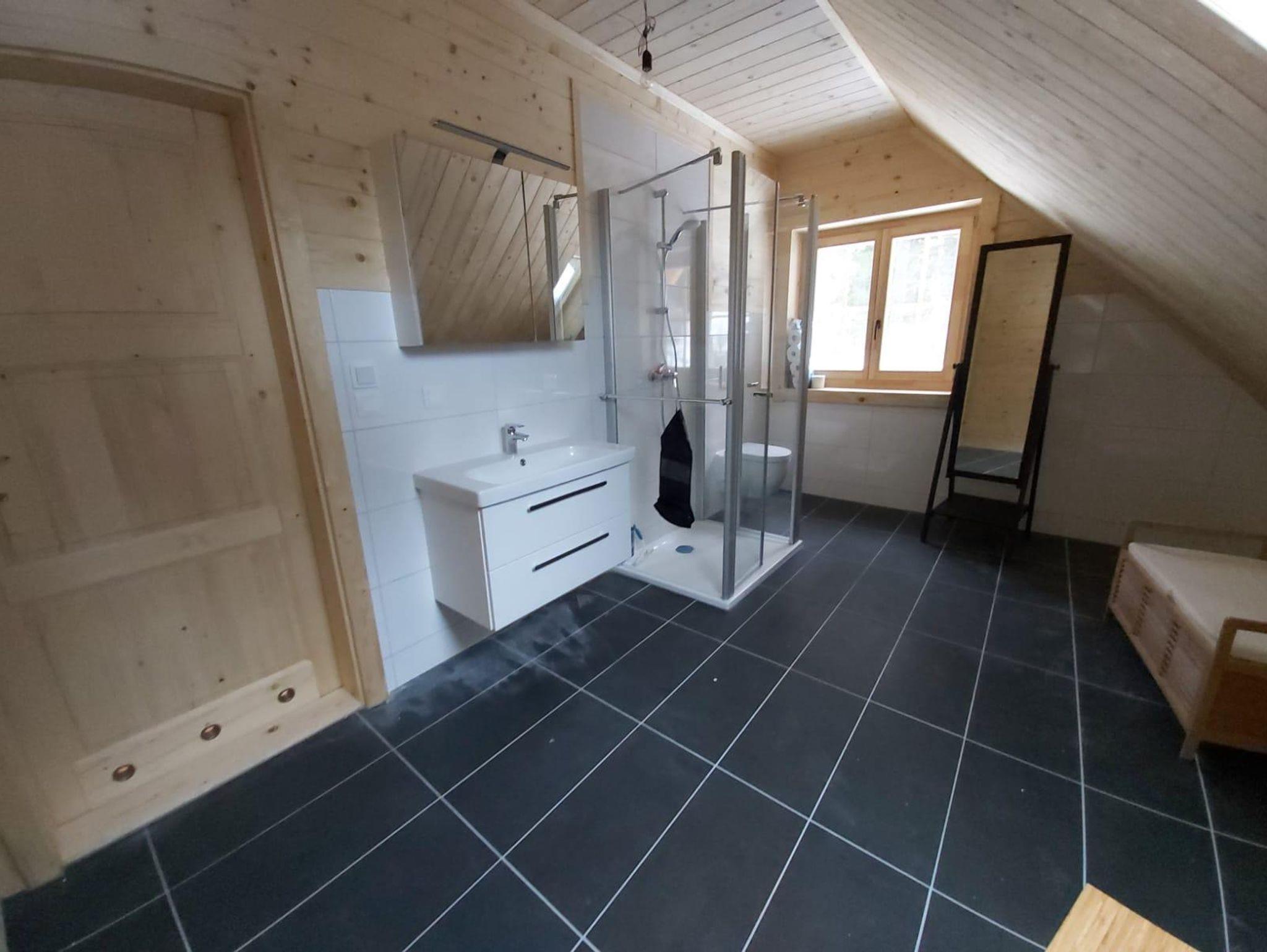 Schwabenhütte, Ferienhaus, Dusche und Bad, WC, waldseitig