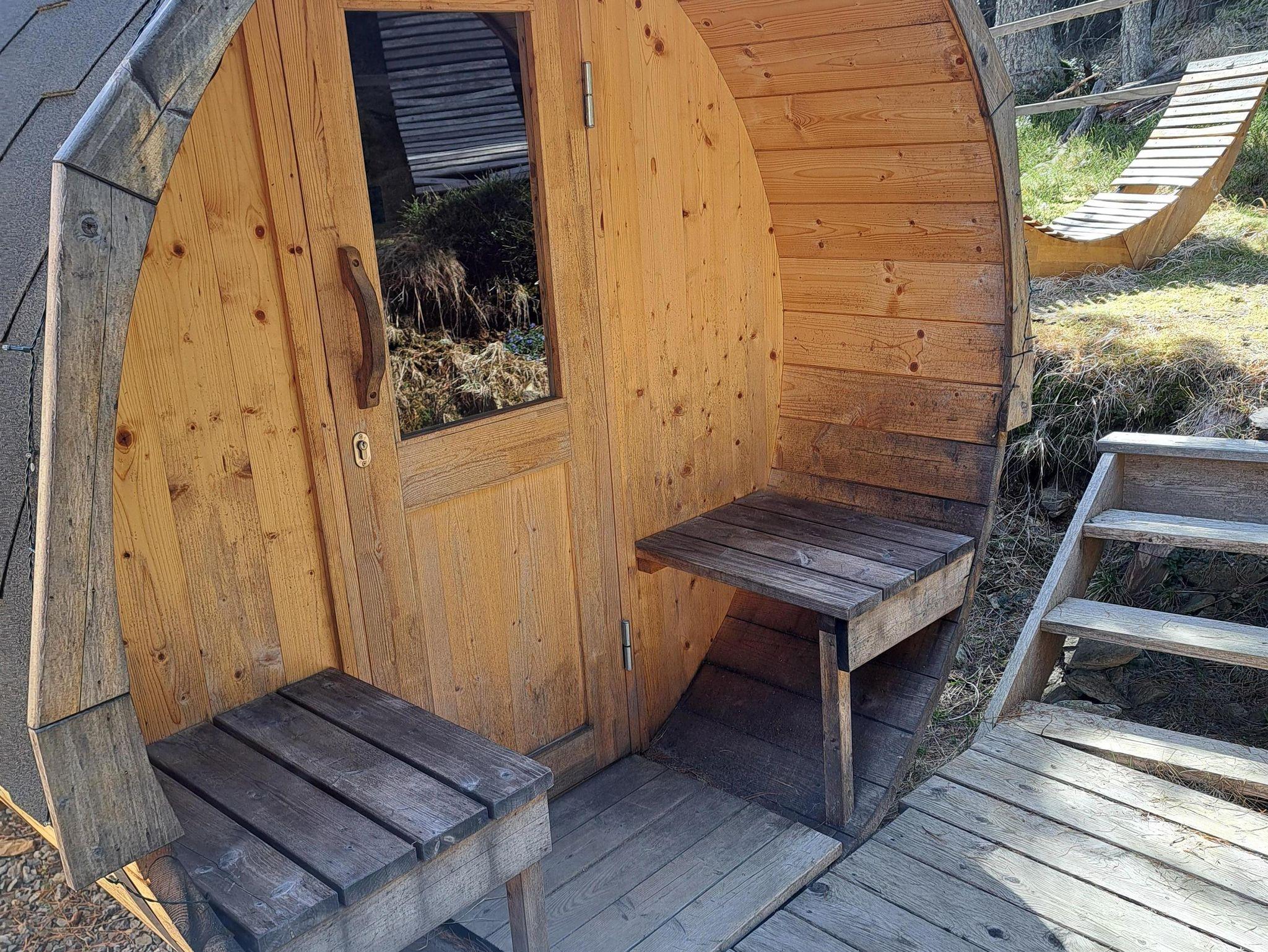 • Fass-Sauna im Garten mit 2 Saunaliegen