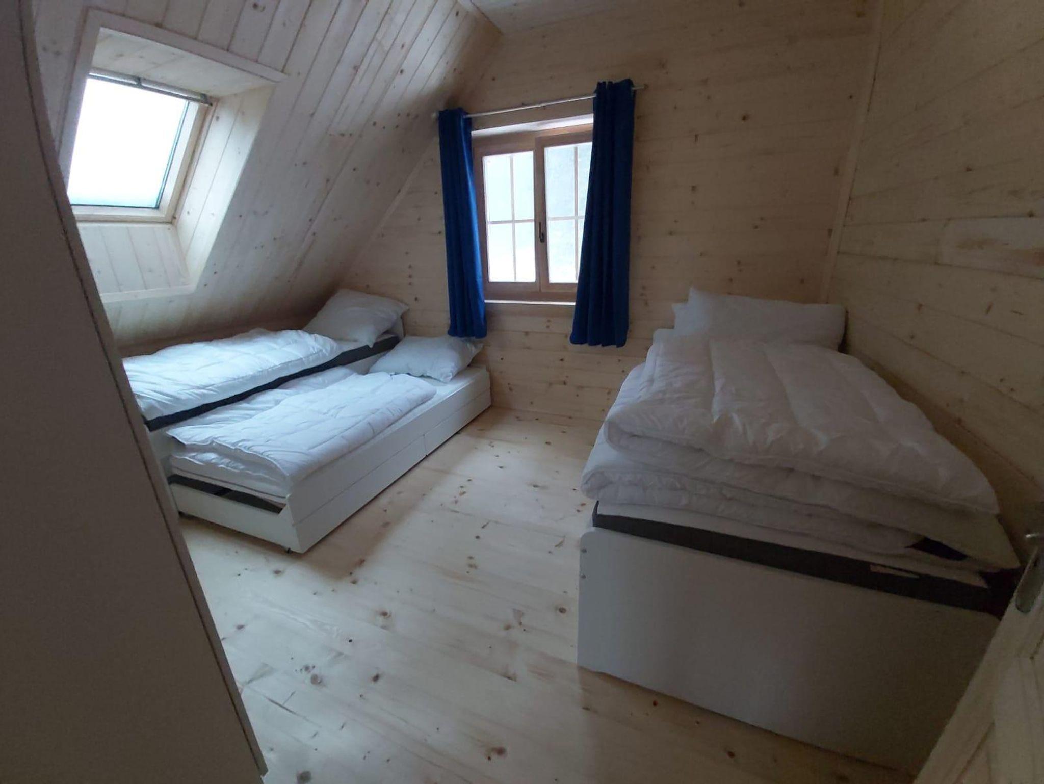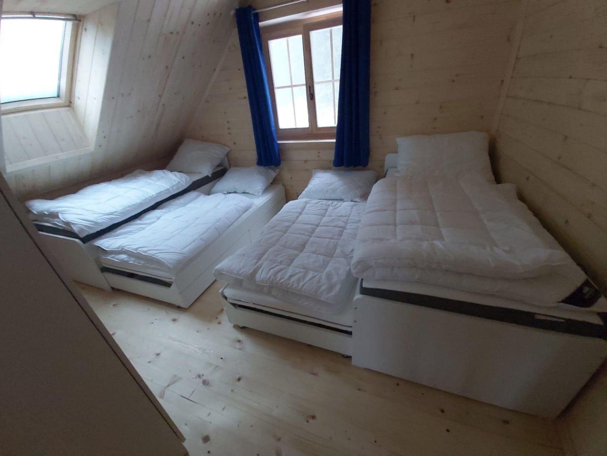 Das DG ist mit 2 Schlafzimmer mit jeweils Doppelbetten und ein Zimmer mit 2 ausziehbaren Einzelbetten ( 4 Kinder) ausgestattet. Ebenfalls befindet sich ein großes Badezimmer mit Fussbodenheizung mit Dusche/WC/ Fön mit Tageslicht im DG. Aus zwei Schlafzimmern ist der Zugang auf den oberen Balkon möglich.