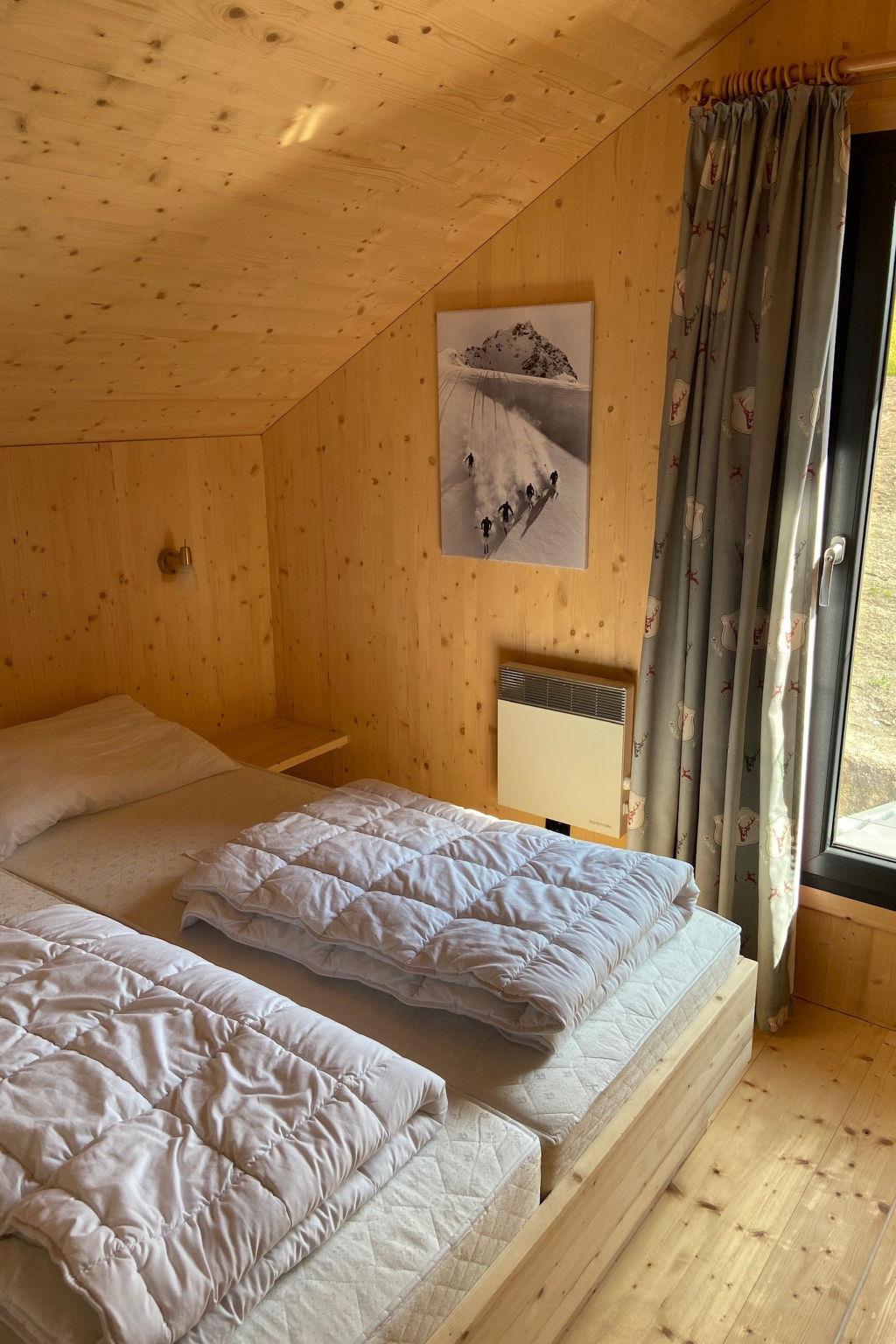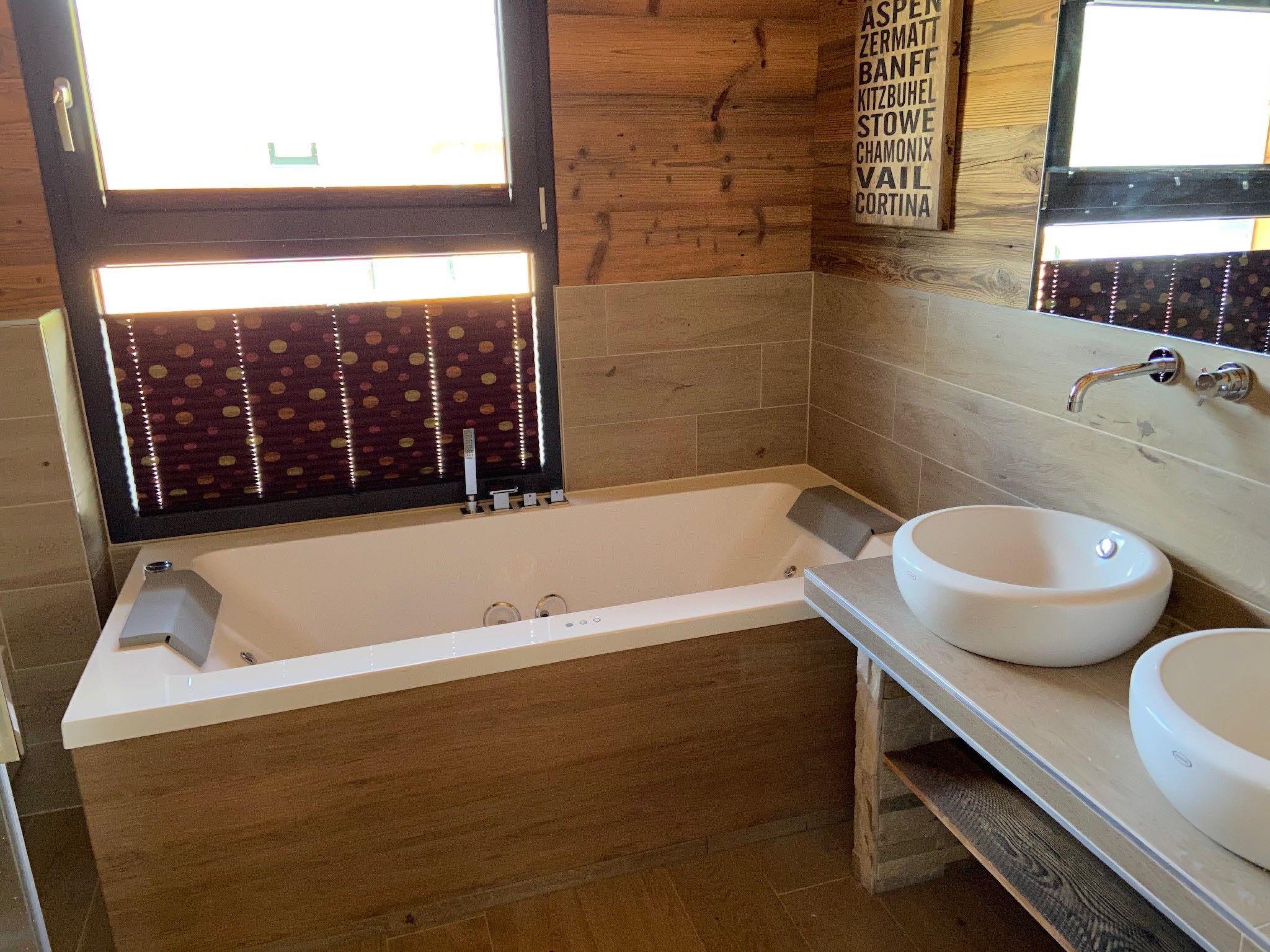 "Premium 58 mit Sauna & Sprudelbad", 4-room house 100 m2. Spacious, comfortable and tasteful furnishings: living/dining room with dining table, satellite TV and flat screen. 4 double bedrooms. Open kitchen (oven, dishwasher, 4 ceramic glass hob hotplates, microwave, electric coffee machine). 2 showers/WC, hydro massage bath. Wooden floors. Large terrace 45 m2. Terrace furniture. Very beautiful view of the mountains and the countryside. Facilities: sauna. Internet (WiFi, free). Parking at the house. Please note: non-smoking house. Smoke alarm.