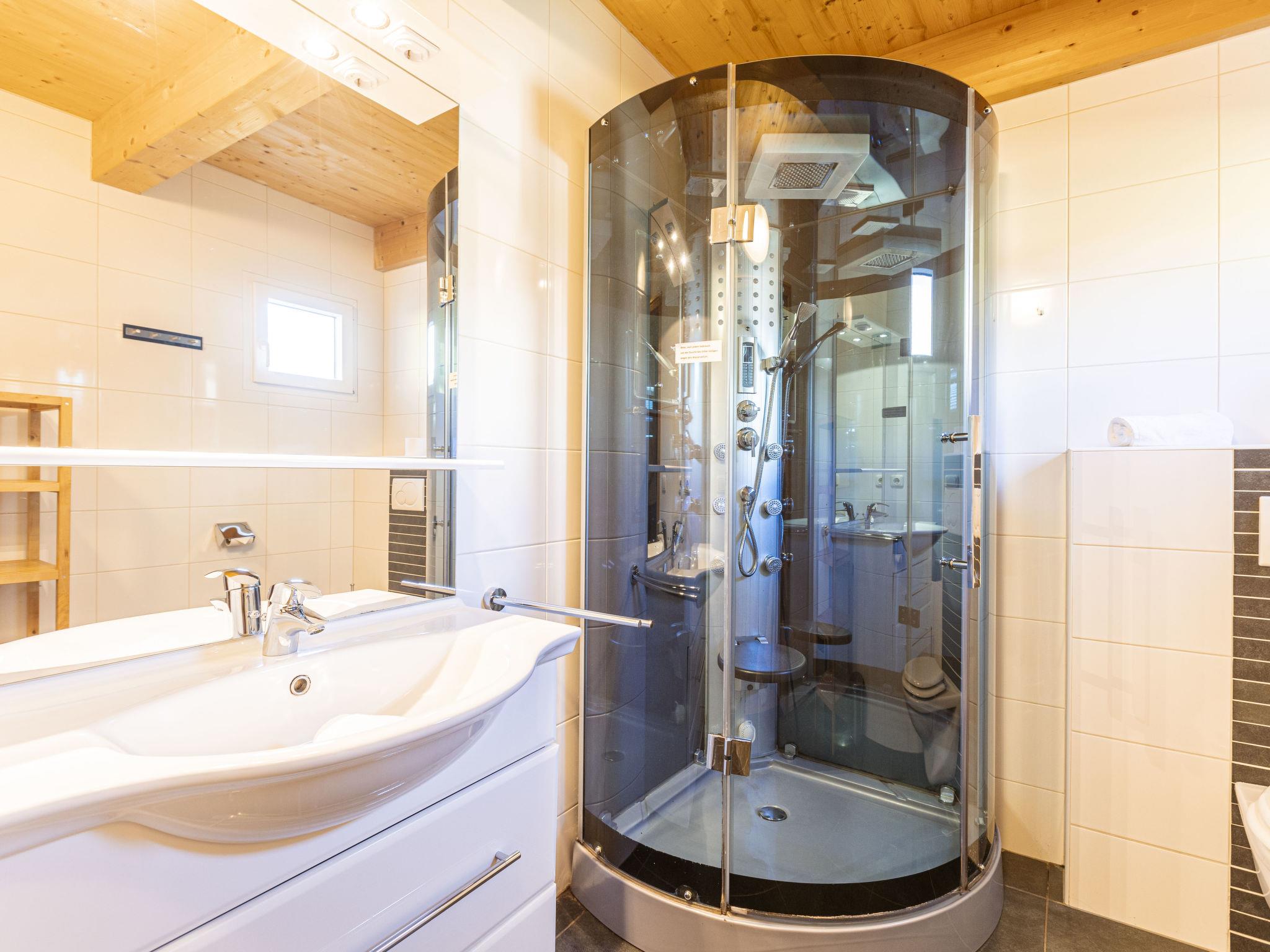 "Premium 18 mit Sauna&Sprudelbad", 5-room house 140 m2. Spacious, comfortable and tasteful furnishings: living room with dining table, satellite TV and hi-fi system. 3 double bedrooms. 1 room with 1 x 2 bunk beds, 1 double bed. Open kitchen (oven, dishwasher, 4 ceramic glass hob hotplates, microwave, electric coffee machine). Bath/WC, shower/WC, hydro massage shower, hydro massage bath. Wooden floors. Terrace. Terrace furniture. Very beautiful view of the mountains and the countryside. Facilities: sauna. Internet (WiFi, extra). Parking at the house. Please note: non-smoking house. Smoke alarm.