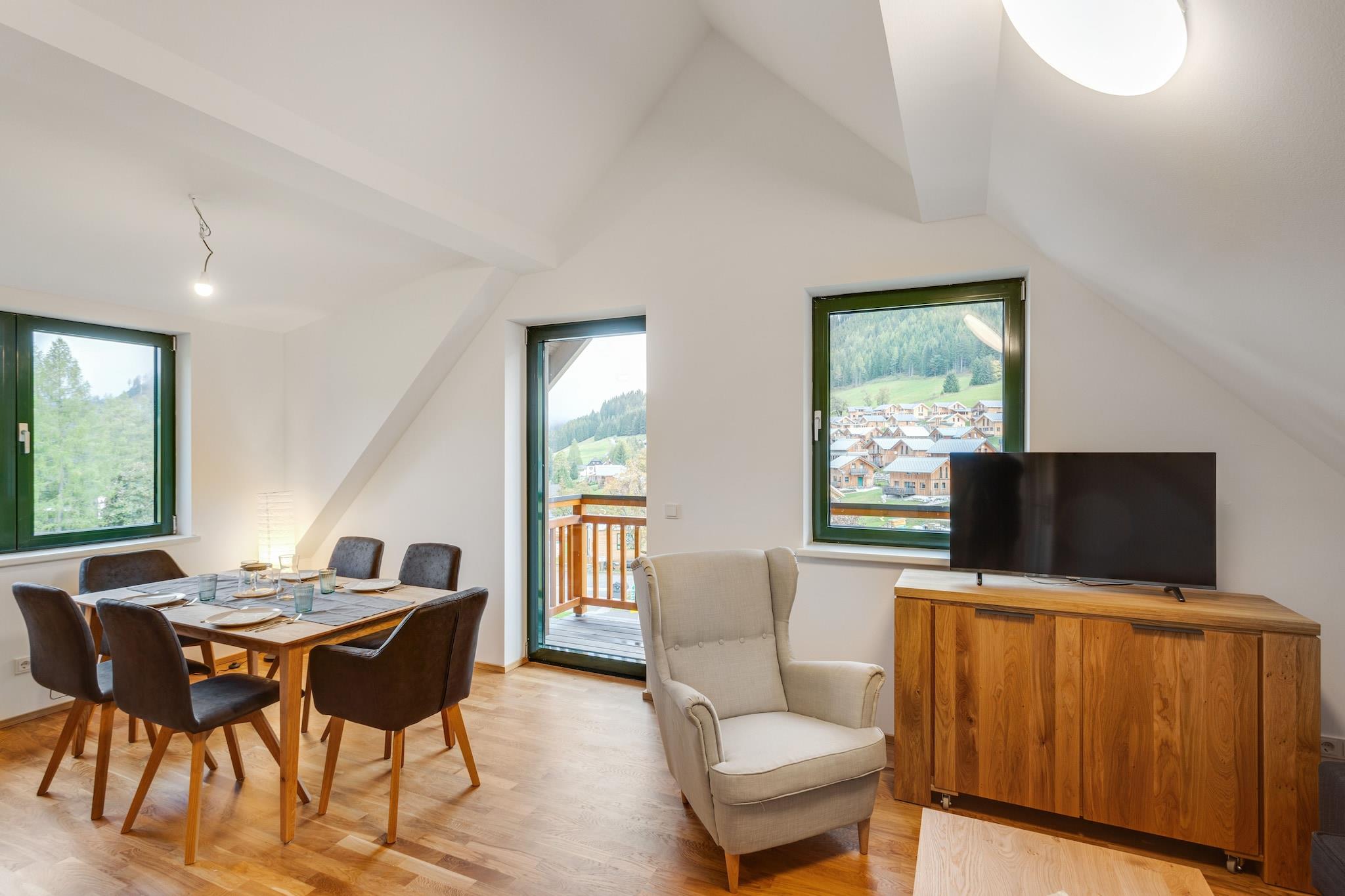 Denne smukke lejlighed til maks. 4 personer ligger direkte i Hohentauern i Steiermark og er luksuriøs og fuldt udstyret. Det består af 2 store soveværelser og 2 badeværelser, en stue med separat spiseplads, et moderne fuldt udstyret køkken og også en balkon. Du kan parkere direkte ved ejendommen. Hohentauern ligger i hjertet af Steiermark og er et vidunderligt område at kombinere lange bjergvandringer og andre sportsture med kultur og afslapning. Nationalparken Gesäuse og nationalparken Kalkalpen ligger i umiddelbar nærhed, et fint udflugtsmål er Admont Abbey Du kan spille golf i Pichlarn (ca. 40 km) eller i Murtal (ca. 40 km). Skiliften til det kendte og traditionelle familieskiområde Ski Hohentauern med 11 kilometer pister ligger i umiddelbar nærhed. Sommeren er bedst kendt for de mange søer, termiske bade og den imponerende bjergkæde Hohe Tauern. De mere end 200 solskinsdage om året og det snesikre skiområde gør dette område til et perfekt ferieområde på alle tider af året.
