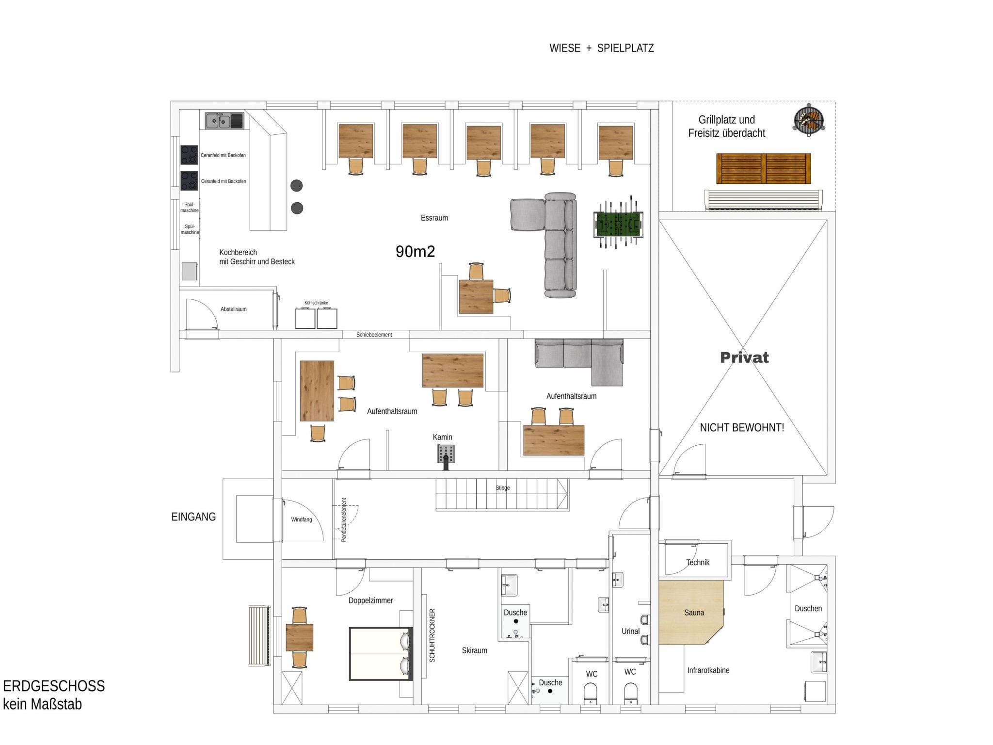 The rooms are divided over 3 floors. Ground floor lounge with kitchen area, sauna with showers. 2 WCs, 2 extra showers, 1 twin room, ski room, 1 FLOOR. 1 triple room, 4 twin rooms with WC. 1 extra WC, shower room 2 showers extra WC. 2 floor 3 3-bed rooms. 2 2-bed rooms with wb. Extra wc, shower room 2 shower cubicles