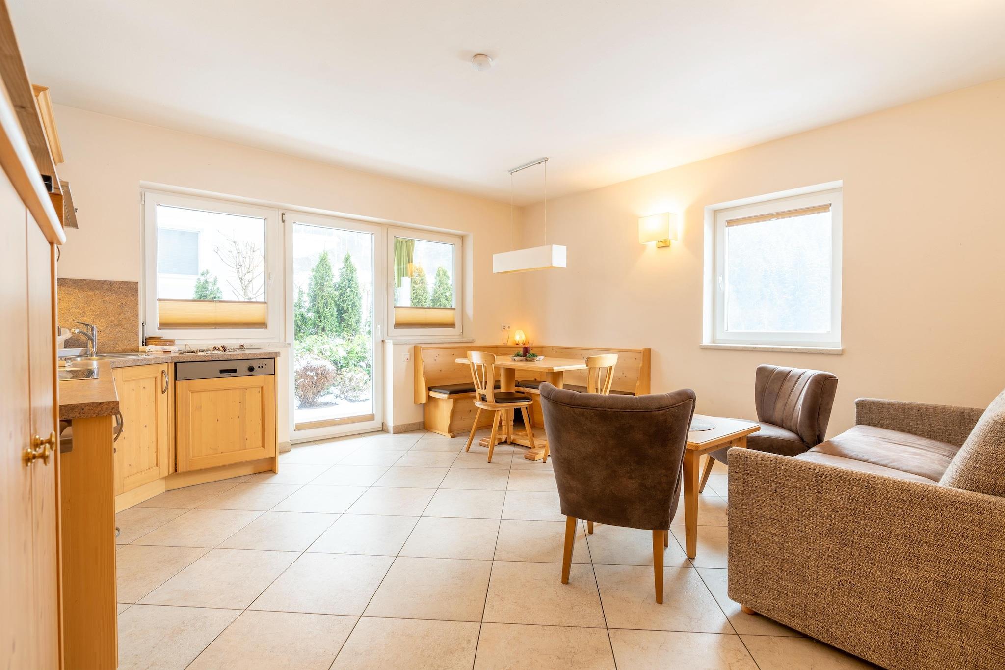 Denne kærligt møblerede ferielejlighed i Hollersbach im Pinzgau er ideel for par og små familier, der søger fred, natur og komfort. Den ligger i stueetagen i et hus af høj kvalitet og kan rumme op til fire personer. Kombinationen af smagfulde møbler og en privat have skaber en afslappet og hjemlig atmosfære. Lejlighedens hjerte er den åbne stue, spisestue og køkkenalrum med direkte adgang til terrassen og den lille have – perfekt til morgenmad under åben himmel, solrige eftermiddage eller et glas vin om aftenen. Stuen har en sovesofa og et fjernsyn. Køkkenet er fuldt udstyret og inkluderer en opvaskemaskine. Det separate soveværelse har en komfortabel dobbeltseng. De, der søger afslapning efter en aktiv dag, kan bruge stedets sauna (mod betaling). Dit vintersportsudstyr kan opbevares sikkert i skirummet – komplet med en praktisk skistøvlevarmer til varme støvler den næste dag. Beliggenheden kunne ikke være bedre: Dalstationen i skiområdet Kitzbühel/Kirchberg ligger kun 1,2 kilometer væk. Om sommeren lokker vandrestierne i Nationalparken Hohe Tauern, urtehaven, bistien og naturstien langs bækken. Et supermarked, caféer og restauranter ligger inden for gåafstand – kun omkring 300 meter væk. Denne ferielejlighed er et stilfuldt tilflugtssted for dem, der ønsker at kombinere naturoplevelser med komfortabel bolig – i en af Østrigs smukkeste regioner. Denne ferielejlighed er et stilfuldt tilflugtssted for dem, der ønsker at kombinere naturoplevelser med komfortabel bolig – i en af Østrigs smukkeste regioner.