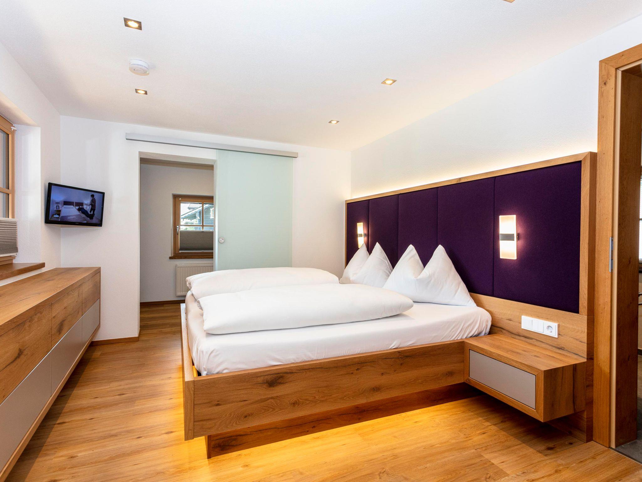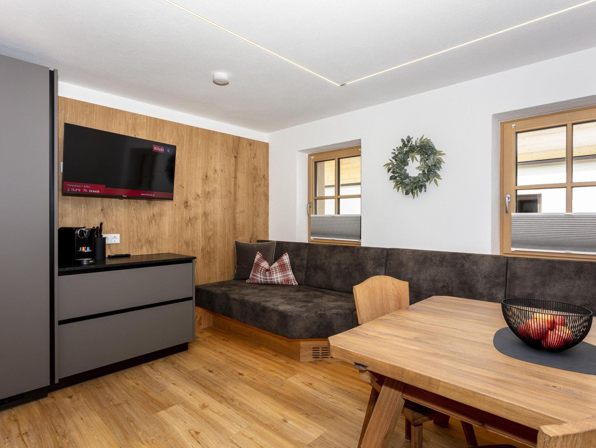 Ferienwohnung Bergkristall - Die Charmante Die charmante Ferienwohnung Bergkristall im 1. Stock im Bestandshaus ist mit ihren 40 m² eine traumhafte Unterkunft für bis zu 4 Personen. Ein Erwachsenen- und ein Kinderzimmer (Stockbett) lassen die Familie einen wunderbaren Urlaub in den Bergen erleben. Die eigene Infrarotkabine im Bad bietet Entspannung pur nach einem sportlichen Tag.
