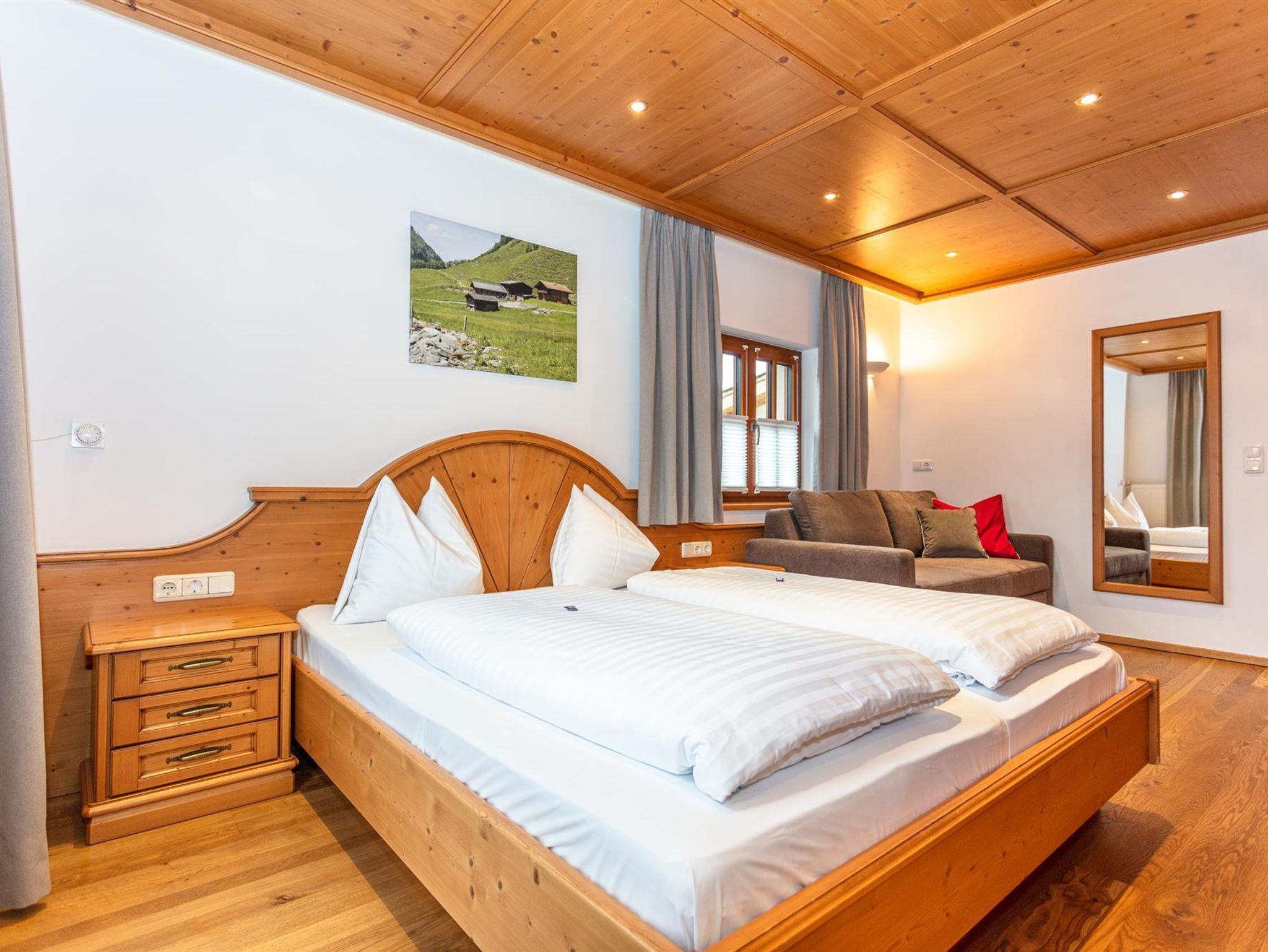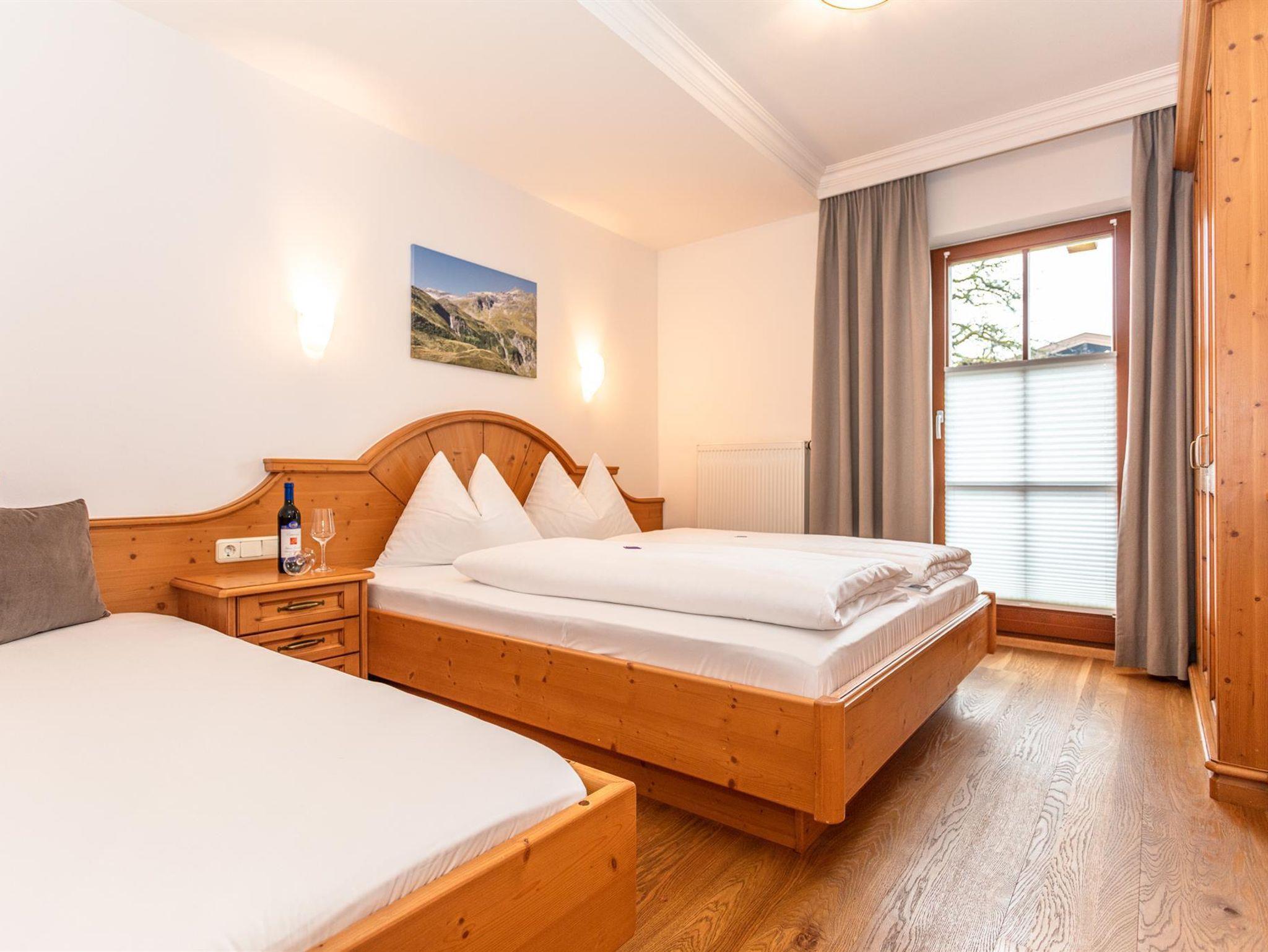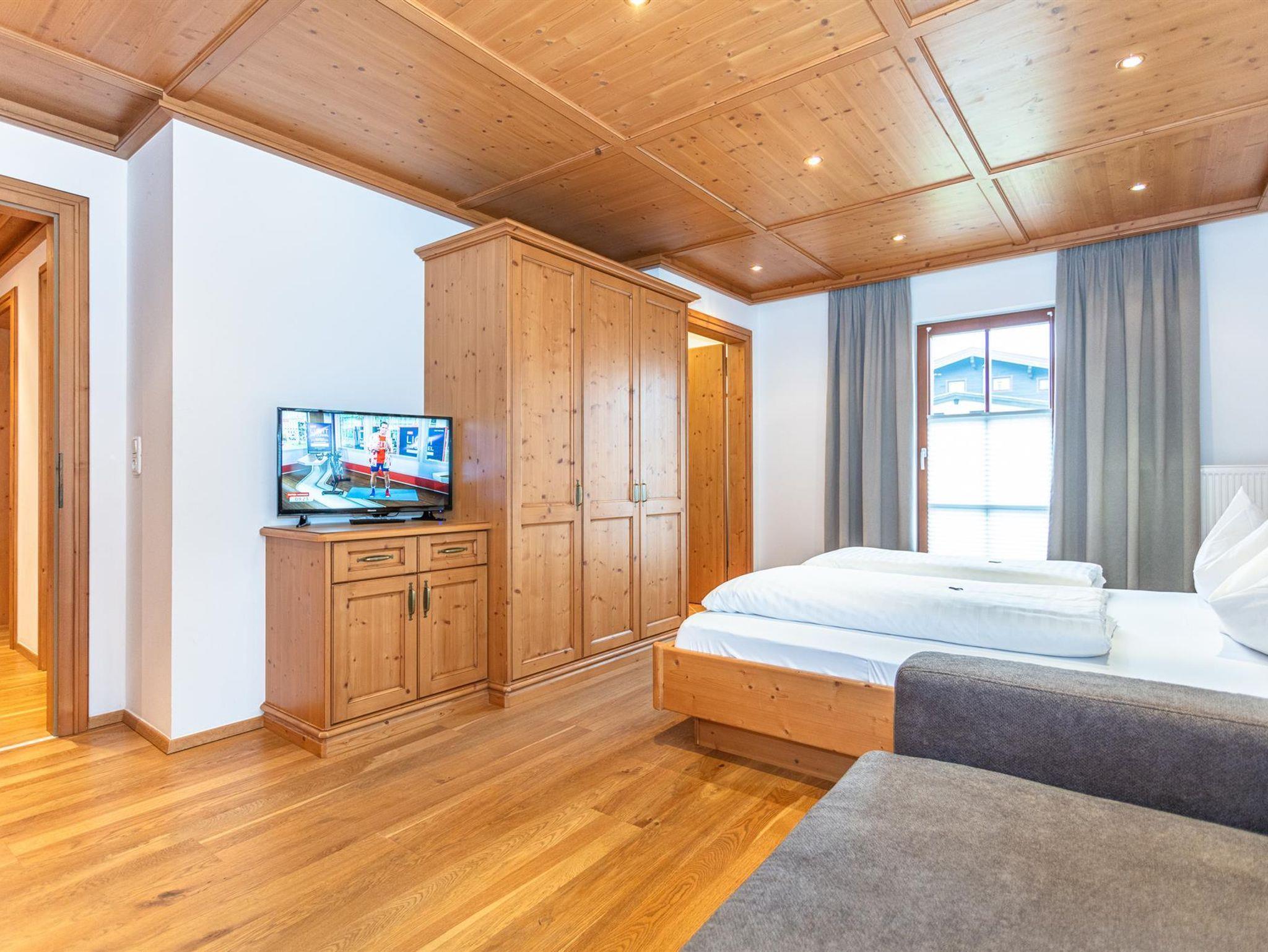 Ferienwohnung Alpenrose - Die Großzügige Unser großzügiges Apartment Alpenrose im 1. Stock im Bestandshaus ist mit seinen 75 m² bestens geeignet für bis zu 7 Personen. Zwei Eingänge und eine Abtrennung (durch eine doppelte Verbindungstür) eines Zimmers sorgen bei Bedarf für Privatsphäre. Zwei Bäder und ein ost- und südseitiger Balkon sorgen zusätzlich für einen angenehmen Urlaub.