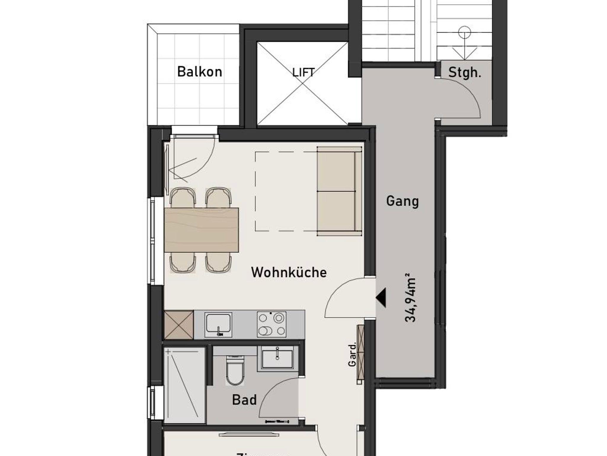 Apartment 3, 4 und 5 sind mit einem Personenaufzug im 2. Obergeschoss zu erreichen.