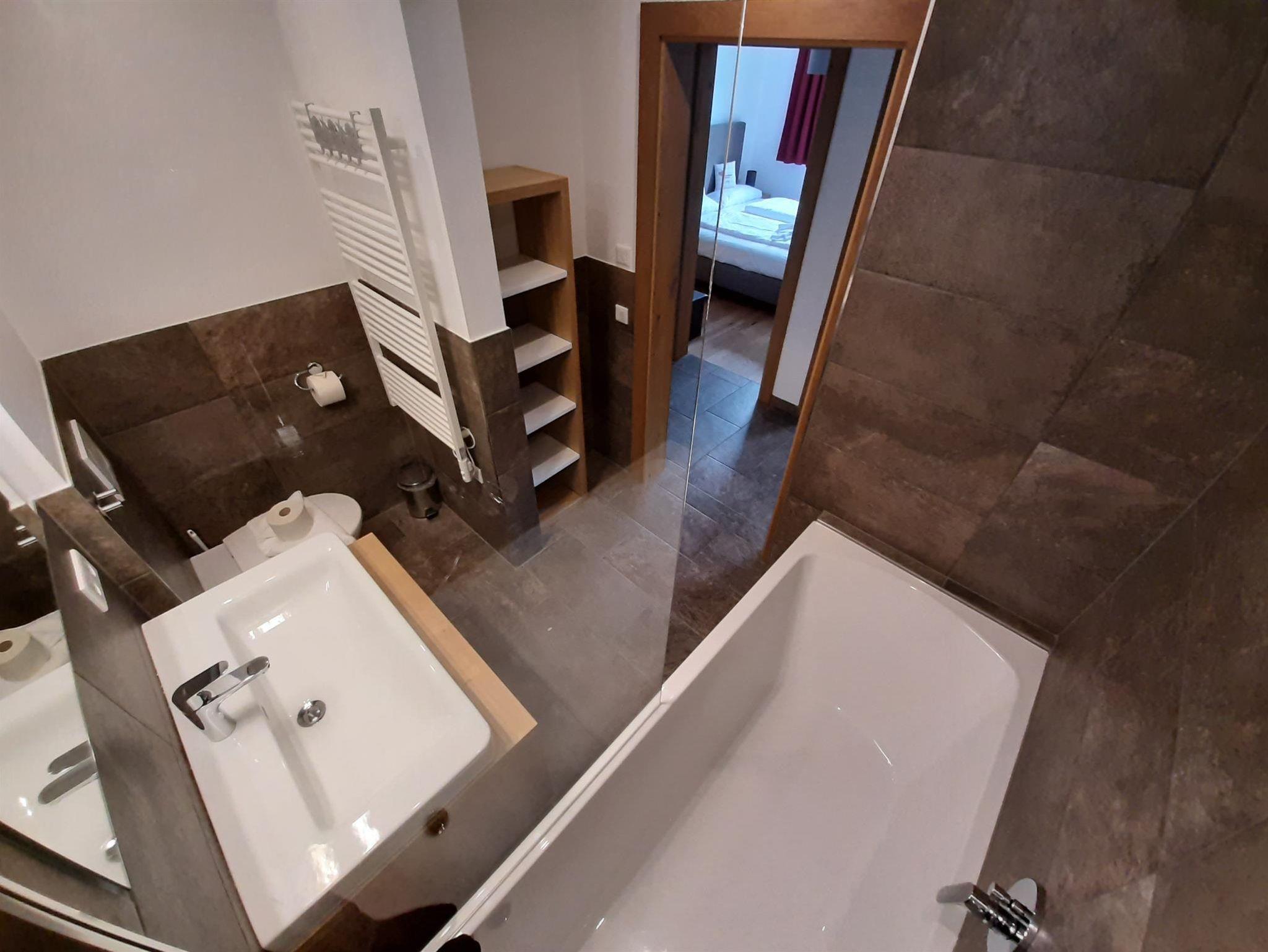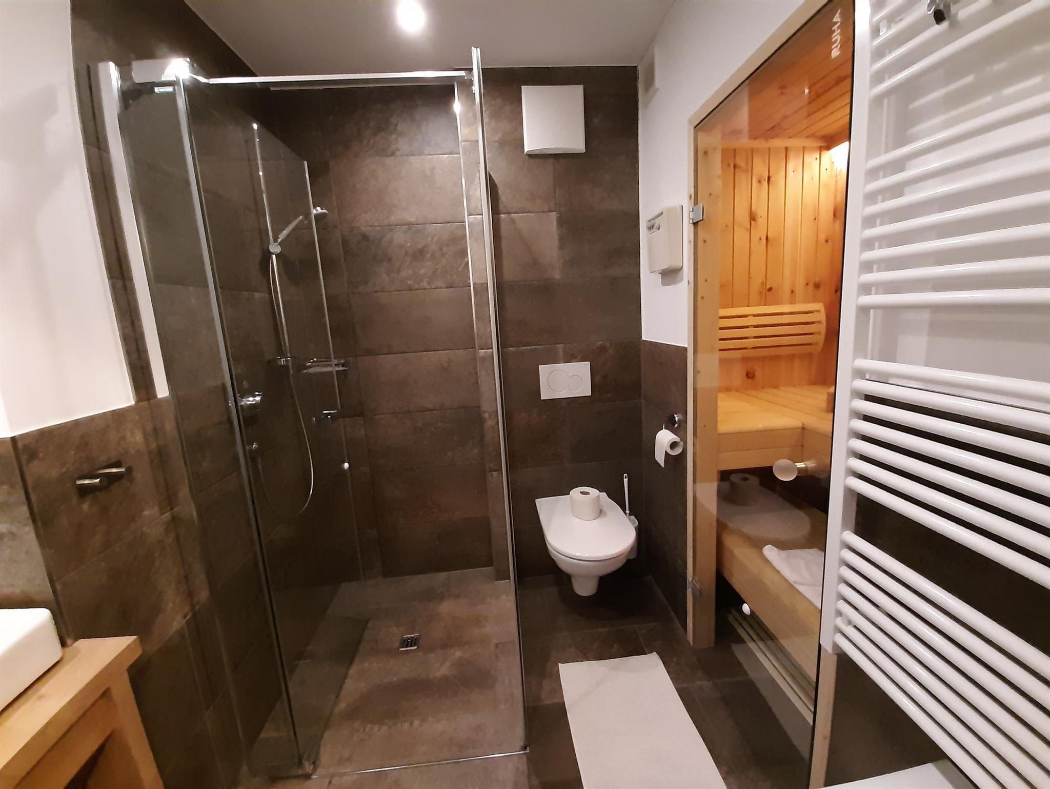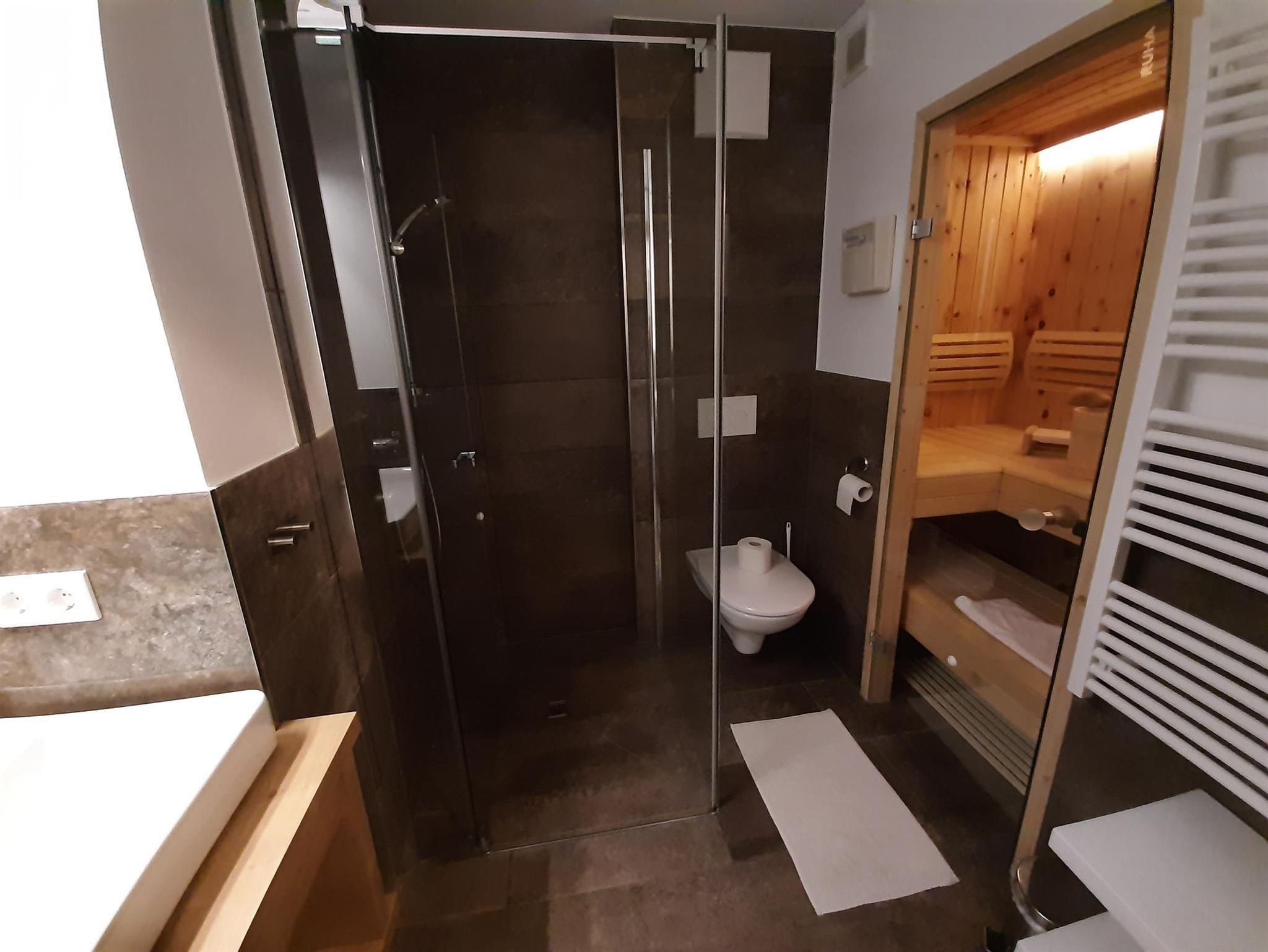 In den beiden Badezimmern relaxen Sie entweder in der Badewanne oder im Aroma der ätherisch duftenden Zirbensauna. Oder Sie genießen in der Früh oder nach dem Saunagang die großzügige Walk-in Dusche.