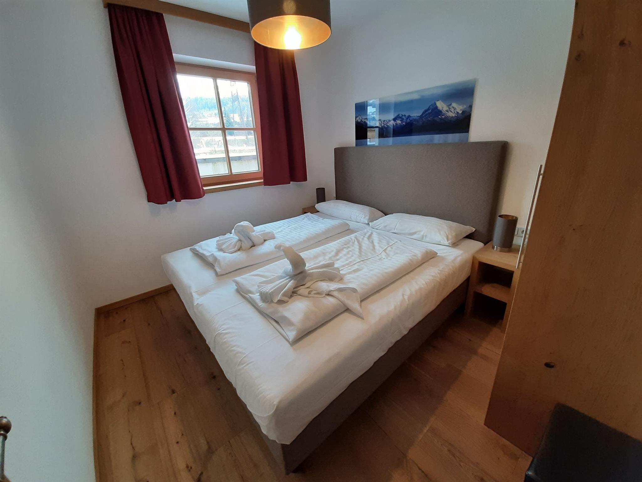 Übernachten können 6 Personen in 3 Schlafzimmern mit je einem Doppelbett, die einen unverbaubaren Blick auf die Kitzbühler Berge hergeben. Außerdem können 2 Personen auf der Schlafcouch im Wohnbereich entspannt schlafen.