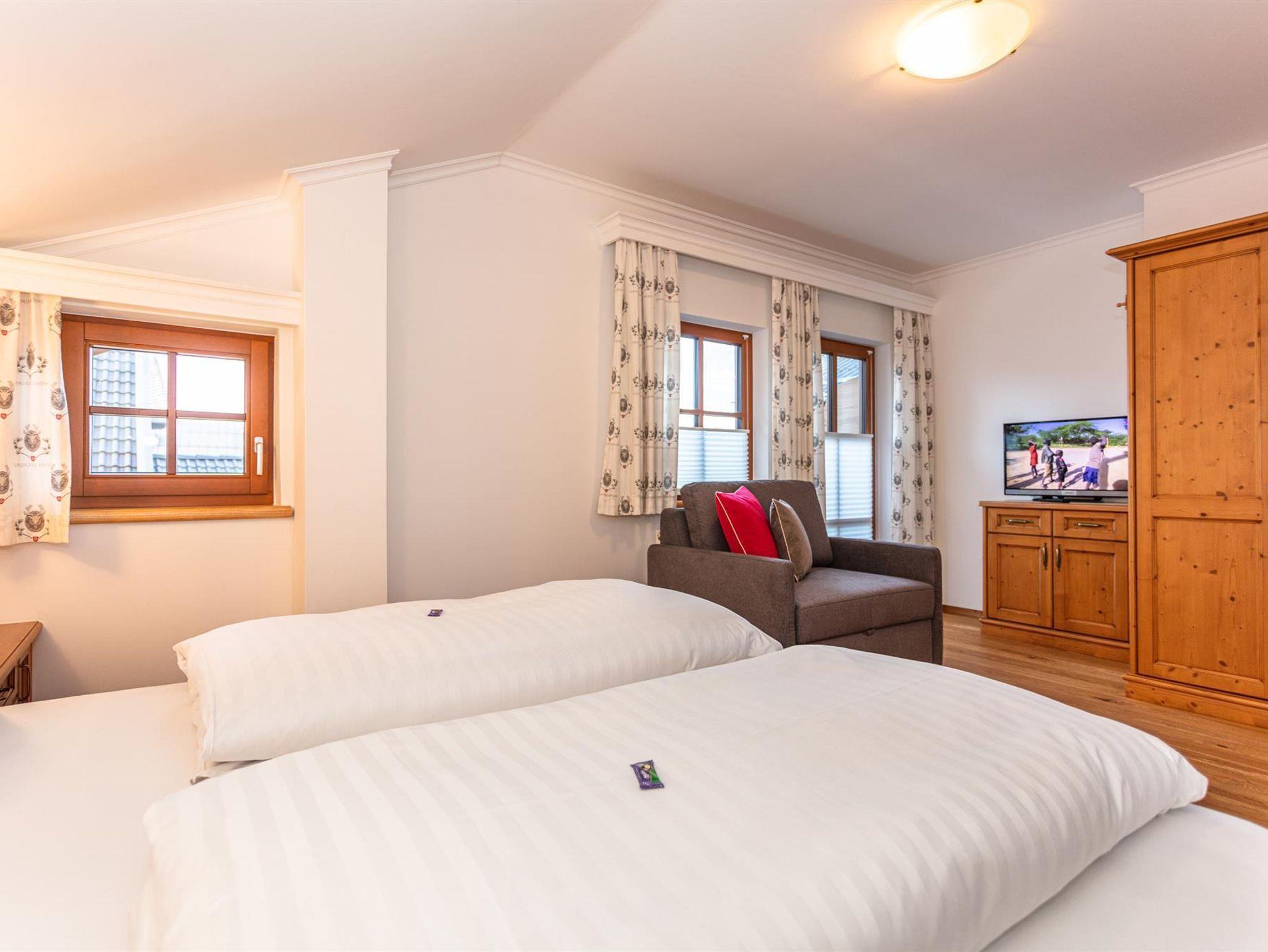 Ferienwohnung Talblick - Die Geräumige Wenn Du eine Ferienwohnung mit Platz suchst, so ist unsere Ferienwohnung Talblick im 2. Stock im Bestandshaus die perfekte Lösung für Dich. Diese geräumige Wohnung (90 m²) ist mit ihren 3 Schlafzimmern auf bis zu 8 Personen ausgelegt.