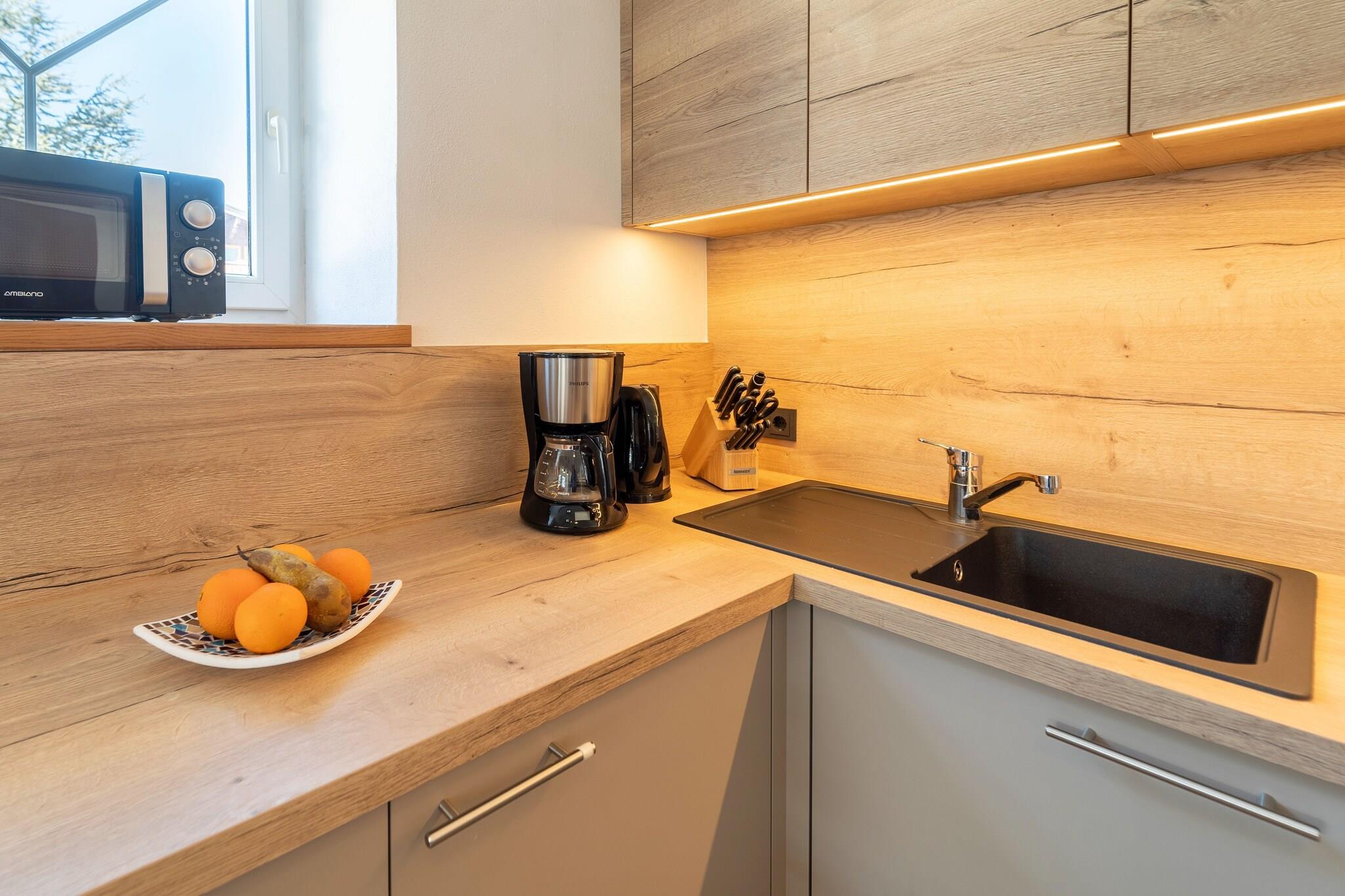 Velkommen til vores skønne og elegante ferielejlighed, som med sit åbne køkken-alrum er perfekt til familier og venner, der gerne vil passe sig selv og lave mad sammen. Beliggende mellem Kitzbühel og Zell am See, tilbyder det alle bekvemmeligheder til en uforglemmelig ferie. Hollersbach ligger kun 30 minutters kørsel fra Kitzbühel og maleriske Zell am See. Panoramasvævebanen Kitzbühler Alpen forbinder byen direkte med Kitzbühler-skiområdet med sine 179 kilometer pister. Den store naturlige badesø i fritidscentret Hollidee, kun 1 km væk, inviterer hele familien om sommeren. Vandreentusiaster og mountainbike-entusiaster vil også få noget for pengene i Hohe Tauern National Park, med adskillige mountainbike-stier i området, der passer til alle niveauer. Ferielejligheden har et fuldt udstyret køkken, som er husets hjerte. Ud over de to soveværelser med dobbeltsenge er der en sovesofa og et fjernsyn. Der er passet godt på dit sportsudstyr: en praktisk skikælder med skistøvlevarmer og et cykelrum står til din rådighed. Self-catering kan nå det lokale supermarked i en kort gåtur. Hvis du gerne vil ud at spise, finder du adskillige muligheder i de nærliggende restauranter. Du betaler nationalparkkortet, når du ankommer til stedet.