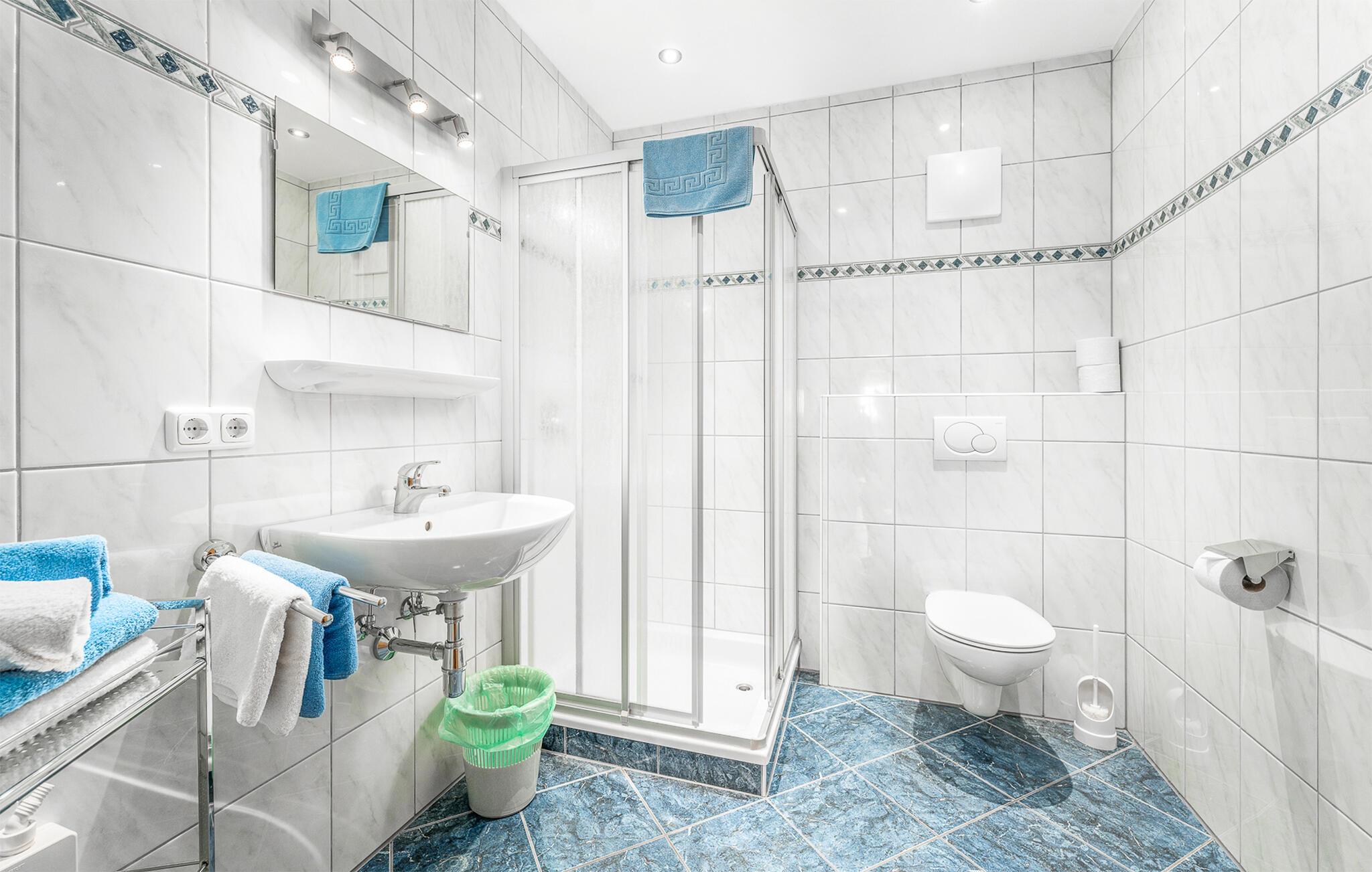 Badeværelse (nr. 1) - WC. Varmt og koldt vand. Bruser