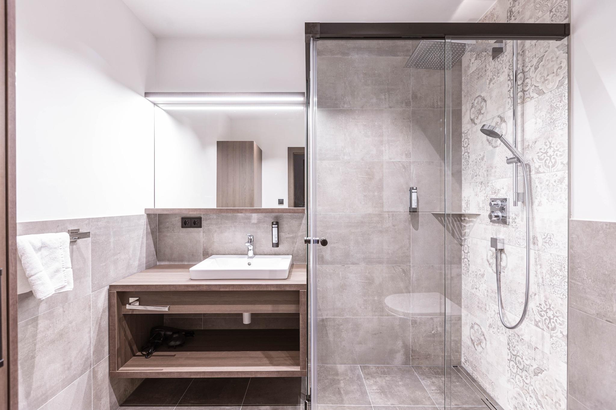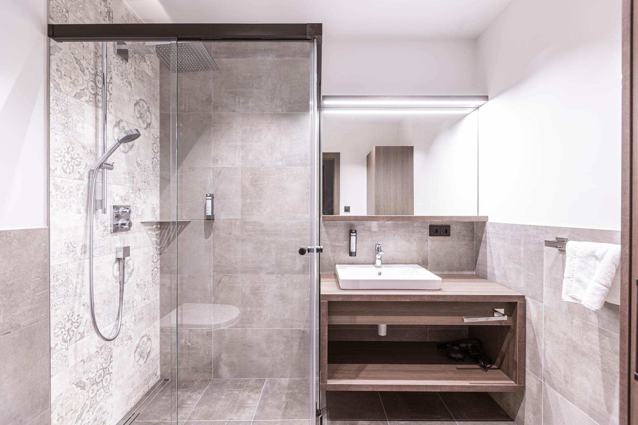 Denne 60 m² store lejlighed kan komfortabelt rumme op til 5 gæster. Det har 1 soveværelse, 1 badeværelse med bruser og toilet (hårtørrer medfølger), en stue-spisestue med tekøkken og en rummelig 52 m² terrasse. Nyd en afslappende søvn i den komfortable dobbeltseng og enkeltseng, og det 40 m² store opholdsareal byder på ekstra plads med en dobbelt sovesofa til to. Der er gratis trådløs internetadgang på Brixental Suites Hopfgarten. Brixental Suites Hopfgarten er beliggende i Hopfgarten im Brixental, Tyrol, direkte på pisten (Ski-in/Ski-out). Ejendommen ligger kun få meter fra Hohe Salve-dalstationen og inkluderer Kitzbüheler Alpen-gæstekortet. En gratis underjordisk parkeringsplads er også tilgængelig for gæsterne. Det fuldt udstyrede tekøkken indeholder alle nødvendige redskaber, en keramisk kogeplade, ovn, køleskab med fryser og opvaskemaskine, sammen med en brødrister, elkedel og Nespresso-kaffemaskine. Et lille startsæt med opvaskeflader, opvaskemiddel (20 ml), en svamp, affaldsposer og rengørings- og viskestykker leveres ved ankomsten.