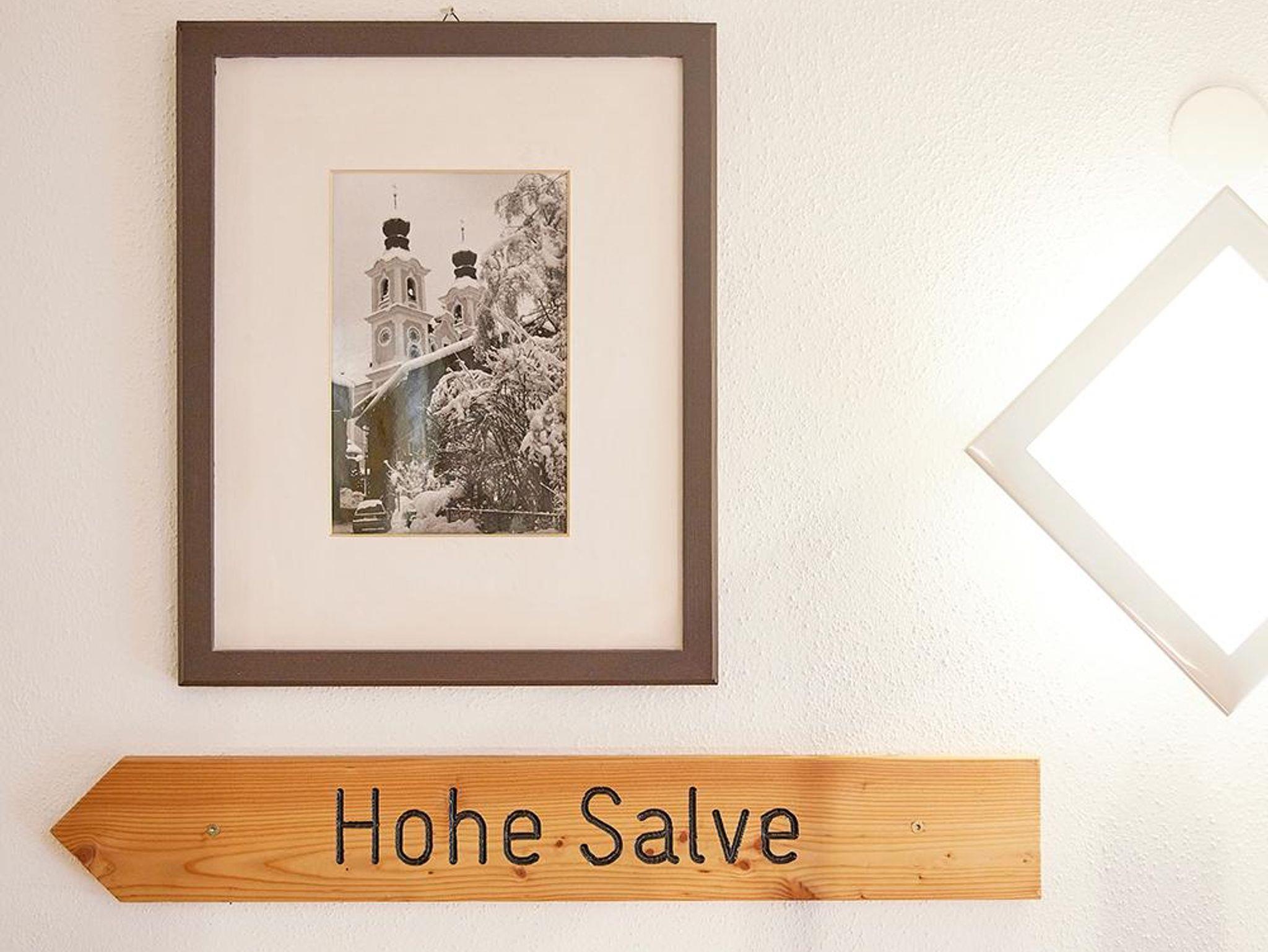 Unsere großzügige Ferienwohnung Hohe Salve (ca. 145 m²) befindet sich im 2. Stock und bietet Platz für bis zu 14 Personen, zuzüglich 1 Kinderbett (bzw. 17 Personen in Kombination mit unserem Dreibettzimmer G'sundheitsbründl). Sie verfügt über 5 Schlafzimmer. Das Besondere hieran ist, dass alle Schlafzimmer über ein eigenes Bad verfügen. Die Hohe Salve eignet sich für mehrere Familien mit Kindern. Alle Schlafzimmer sind zweckmäßig eingerichtet und mit SAT-Fersehgeräten und Zentralheizung ausgestattet. 3 der 5 Schlafräume verfügen zudem über einen Balkon.