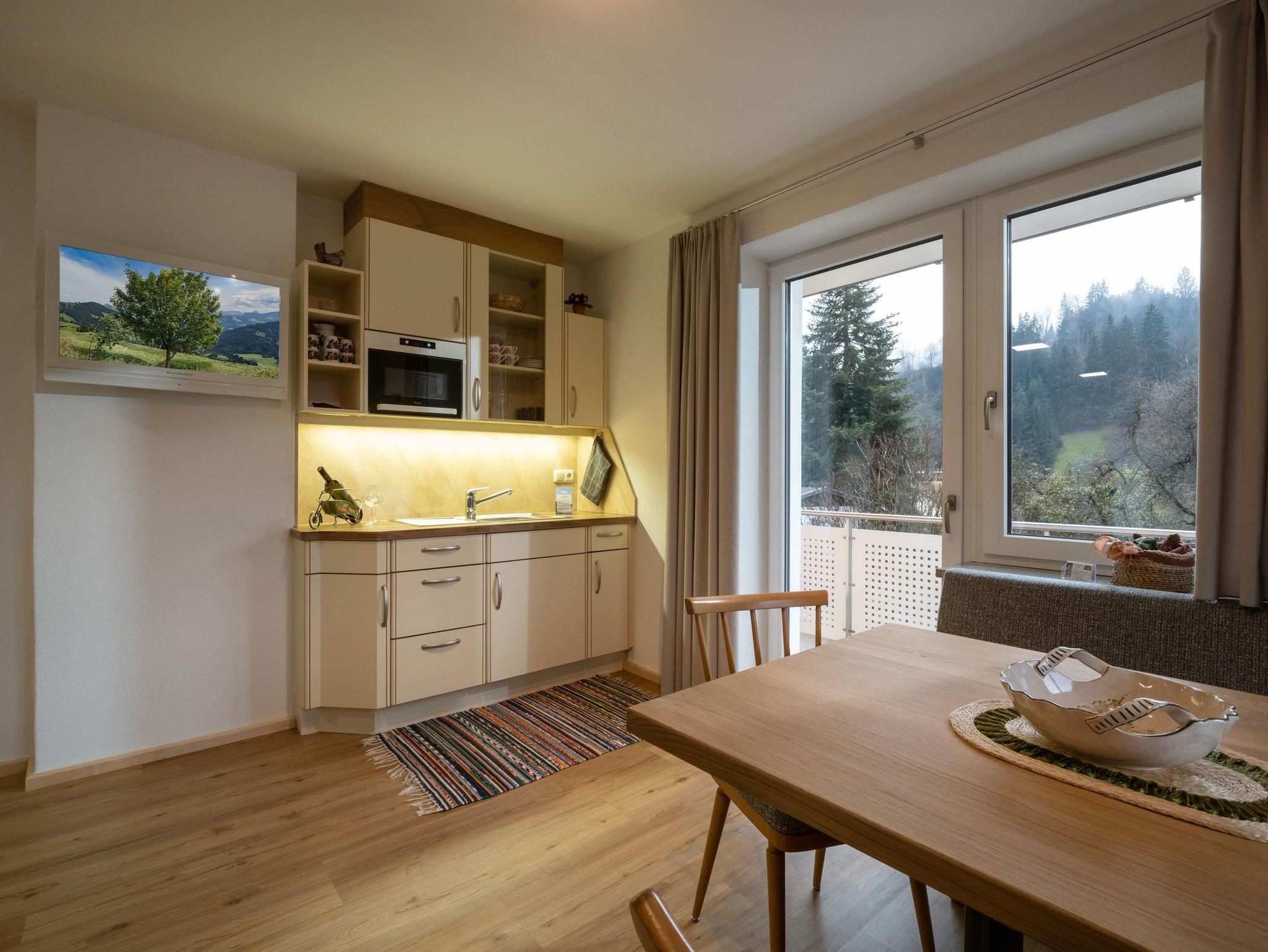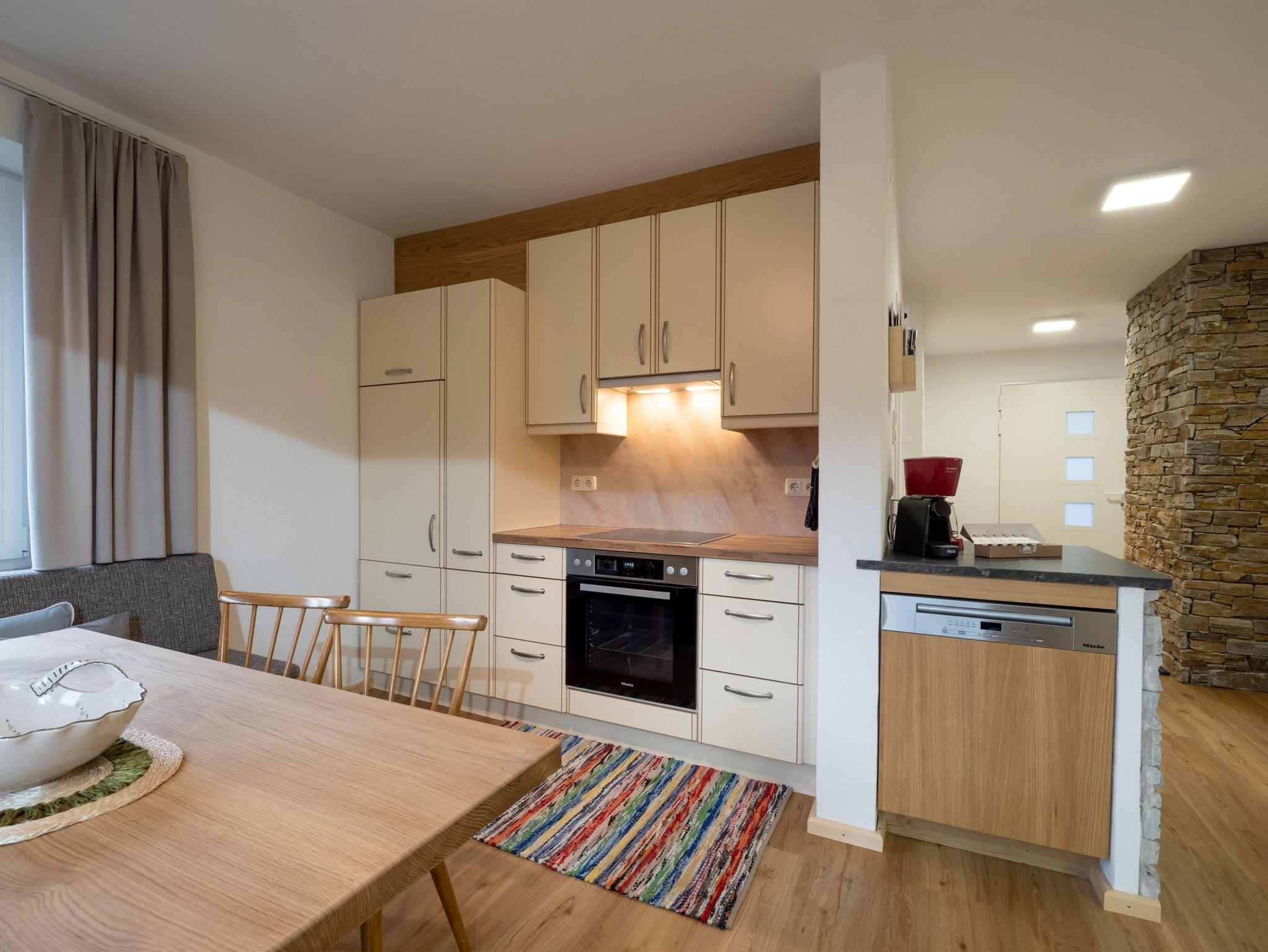 Die gut ausgestattete Küche lässt keine Wünsche offen und die gemütliche Essecke lädt zu geselligem Beisammensein ein.