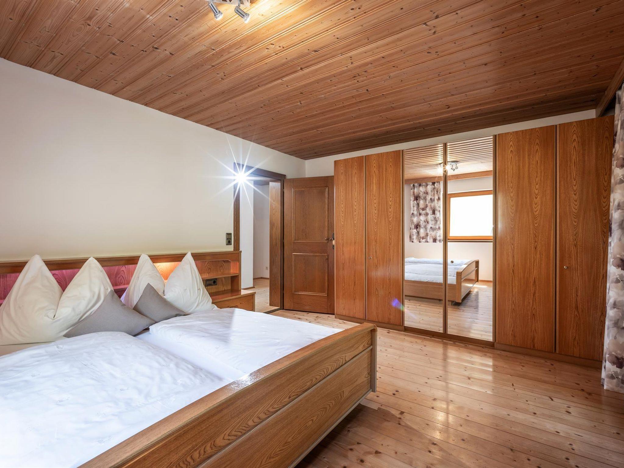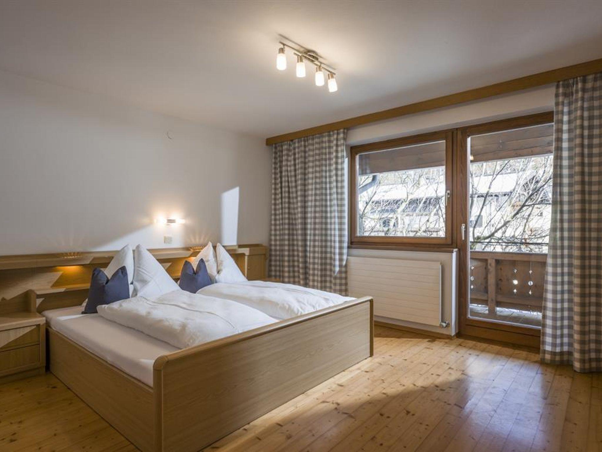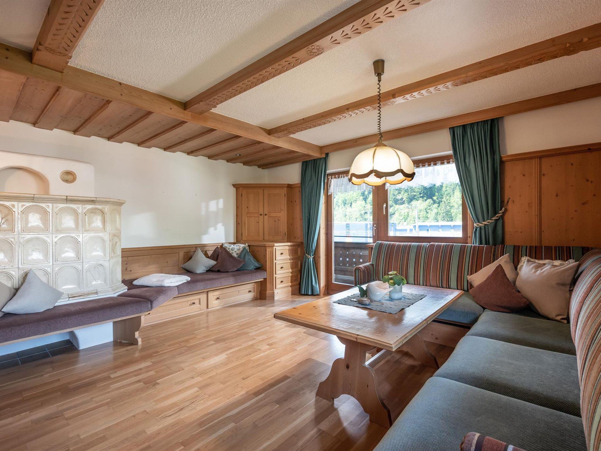 Die Ferienwohnung im Tiroler Stil lädt zum Wohlfühlen ein. Sie verfügt über 2 Balkone, 4 Schlafzimmer, Bad, WC, einer voll ausgestatteten Küche und einem gemütlichen Wohnzimmer. Dank der Geräumigkeit bietet die Wohnung genügend Platz für Familien oder Gruppen bis zu 10 Personen. Die Schlafmöglichkeiten bestehen aus 3 Schlafzimmern mit je einem Doppelbett, 1 Schlafzimmer mit Einzelbett und 3 Zustellbetten sind auf Anfrage möglich.