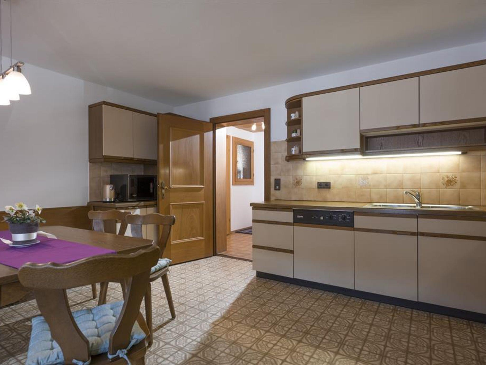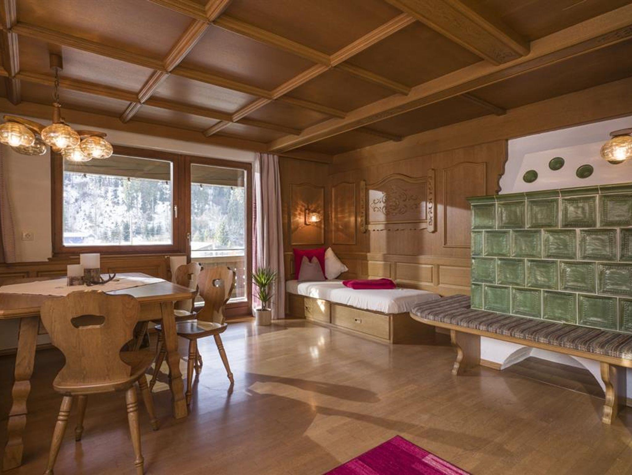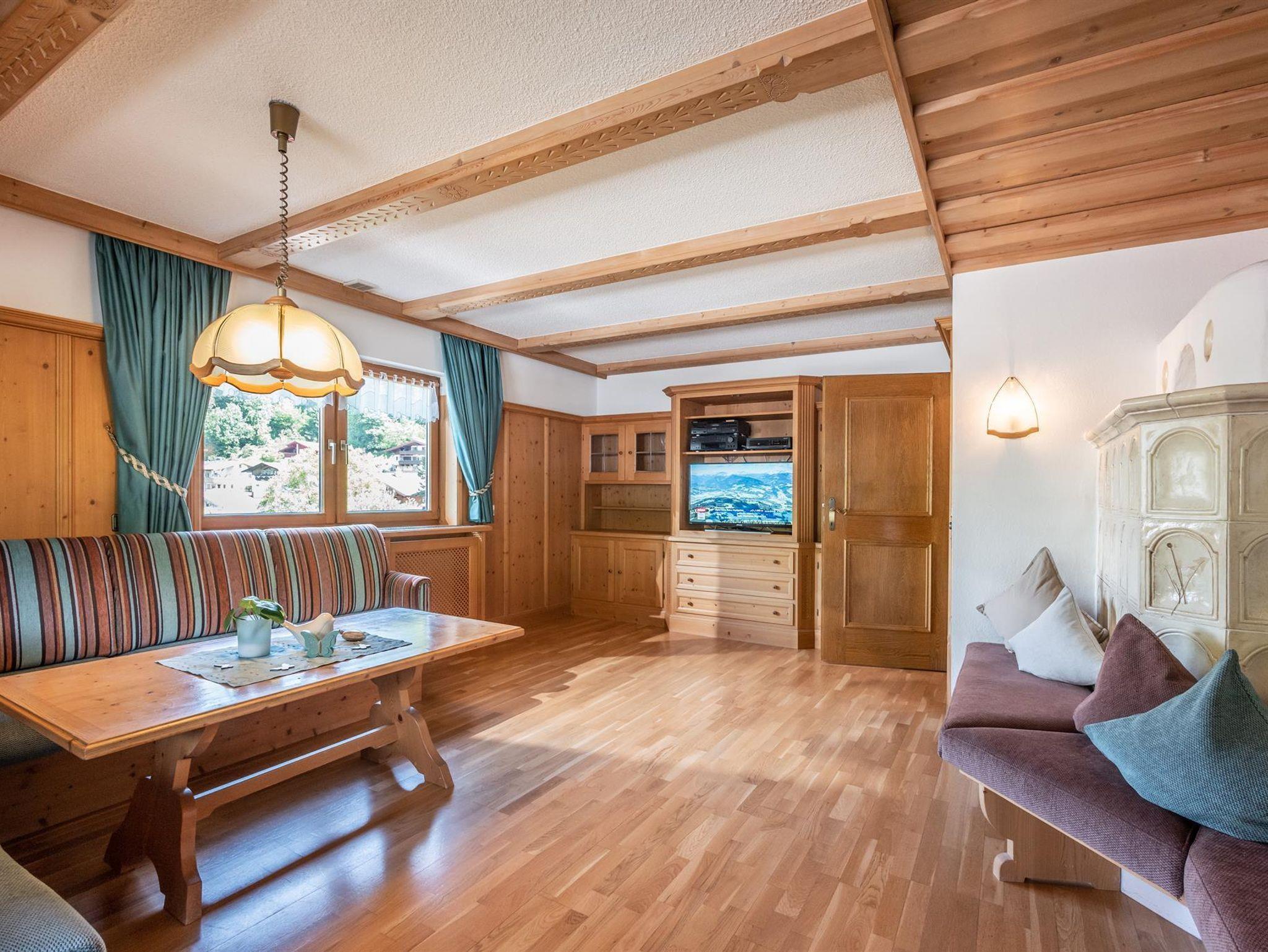 Die Ferienwohnung im Tiroler Stil lädt zum Wohlfühlen ein. Sie verfügt über 2 Balkone, 4 Schlafzimmer, Bad, WC, einer voll ausgestatteten Küche und einem gemütlichen Wohnzimmer. Dank der Geräumigkeit bietet die Wohnung genügend Platz für Familien oder Gruppen bis zu 10 Personen. Die Schlafmöglichkeiten bestehen aus 3 Schlafzimmern mit je einem Doppelbett, 1 Schlafzimmer mit Einzelbett und 3 Zustellbetten sind auf Anfrage möglich.
