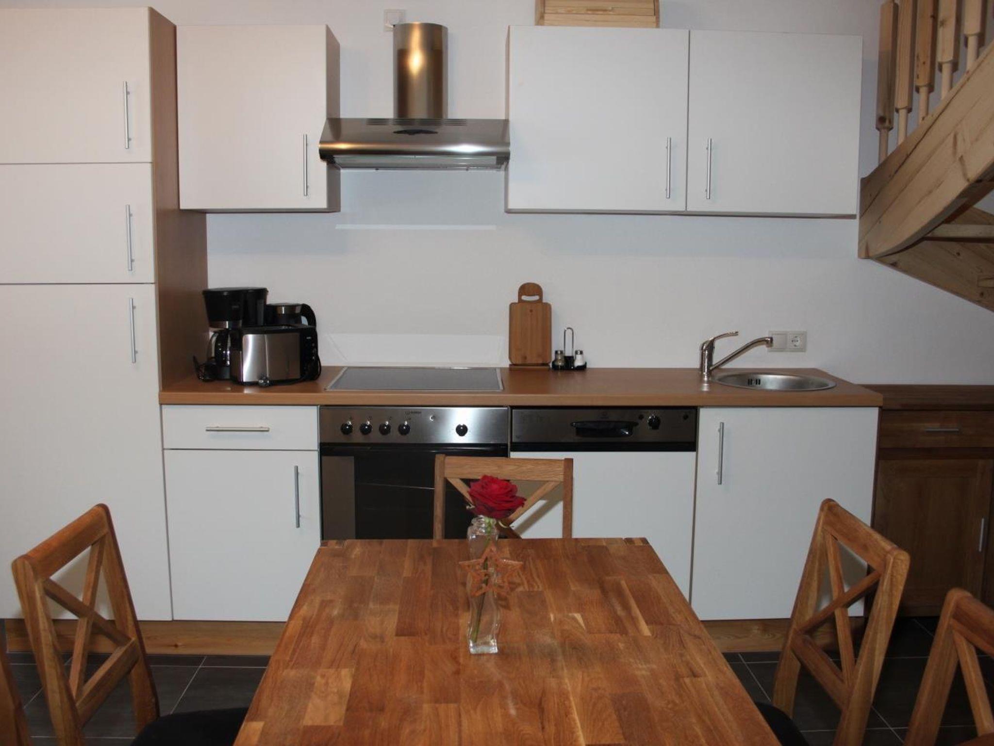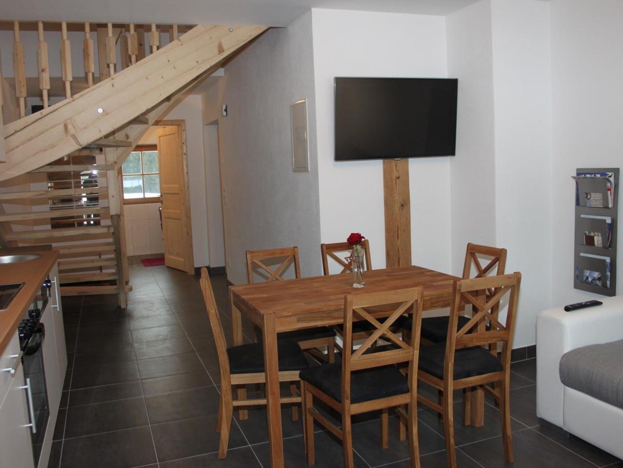 Die 65 m² große Wohnung ist über den seitlichen Aufgang des Bauernhauses erreichbar.