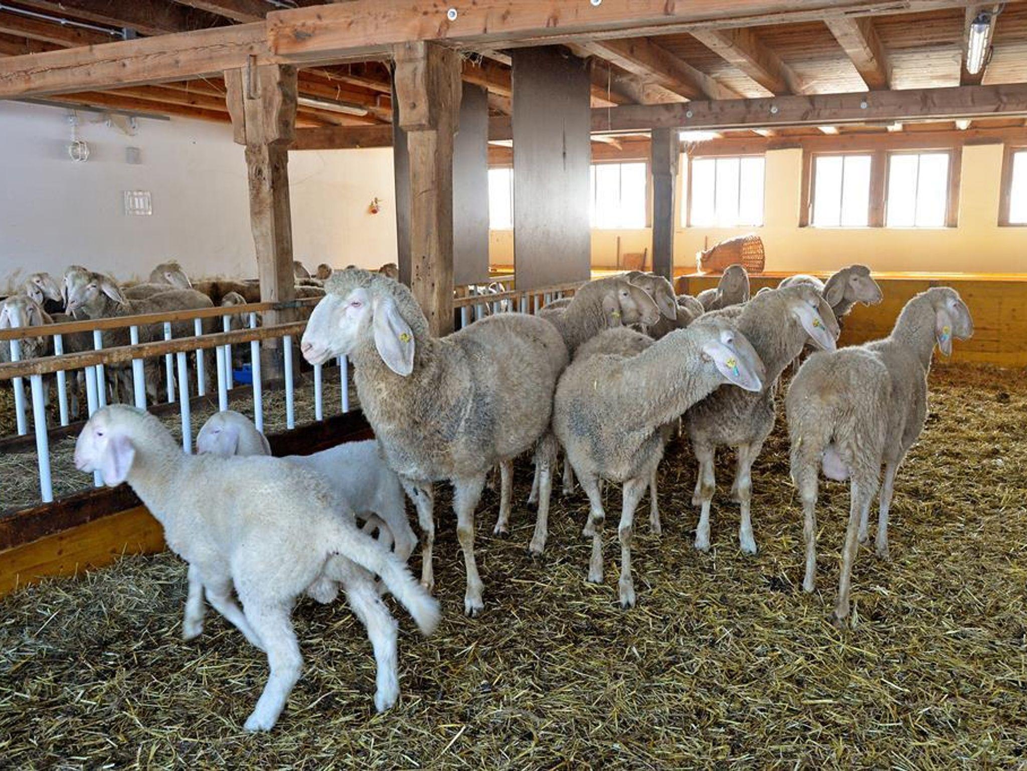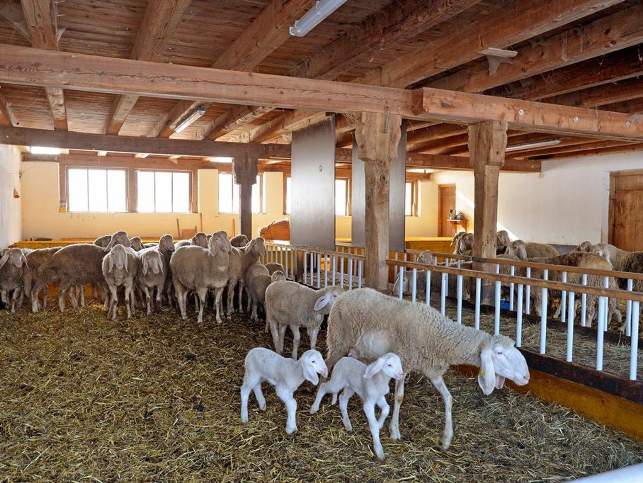 Bereits beim Hinaufgehen in die Wohnung können Sie unseren Schafen und Lämmern im Stall zusehen.