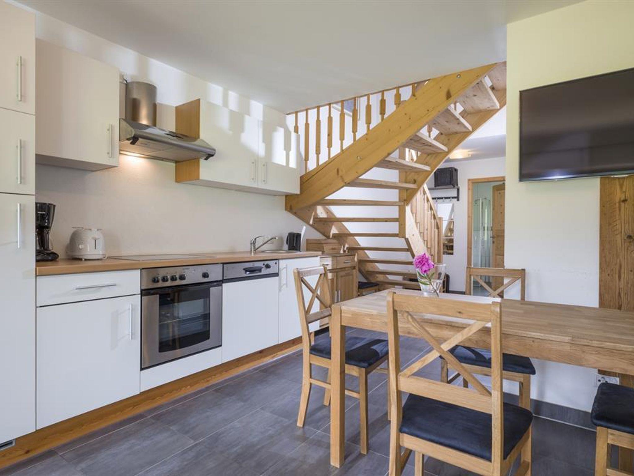 In der 1. Etage befindet sich der Wohnraum ca. 4 x 5 m mit komplett ausgestatteter Küche, großzügigem Bad mit Dusche und WC von der aus sie die Hohe Salve in voller Pracht durchs Fenster erleben können. Beim Wohnraum befindet sich ein kleiner Balkon (Altholz).