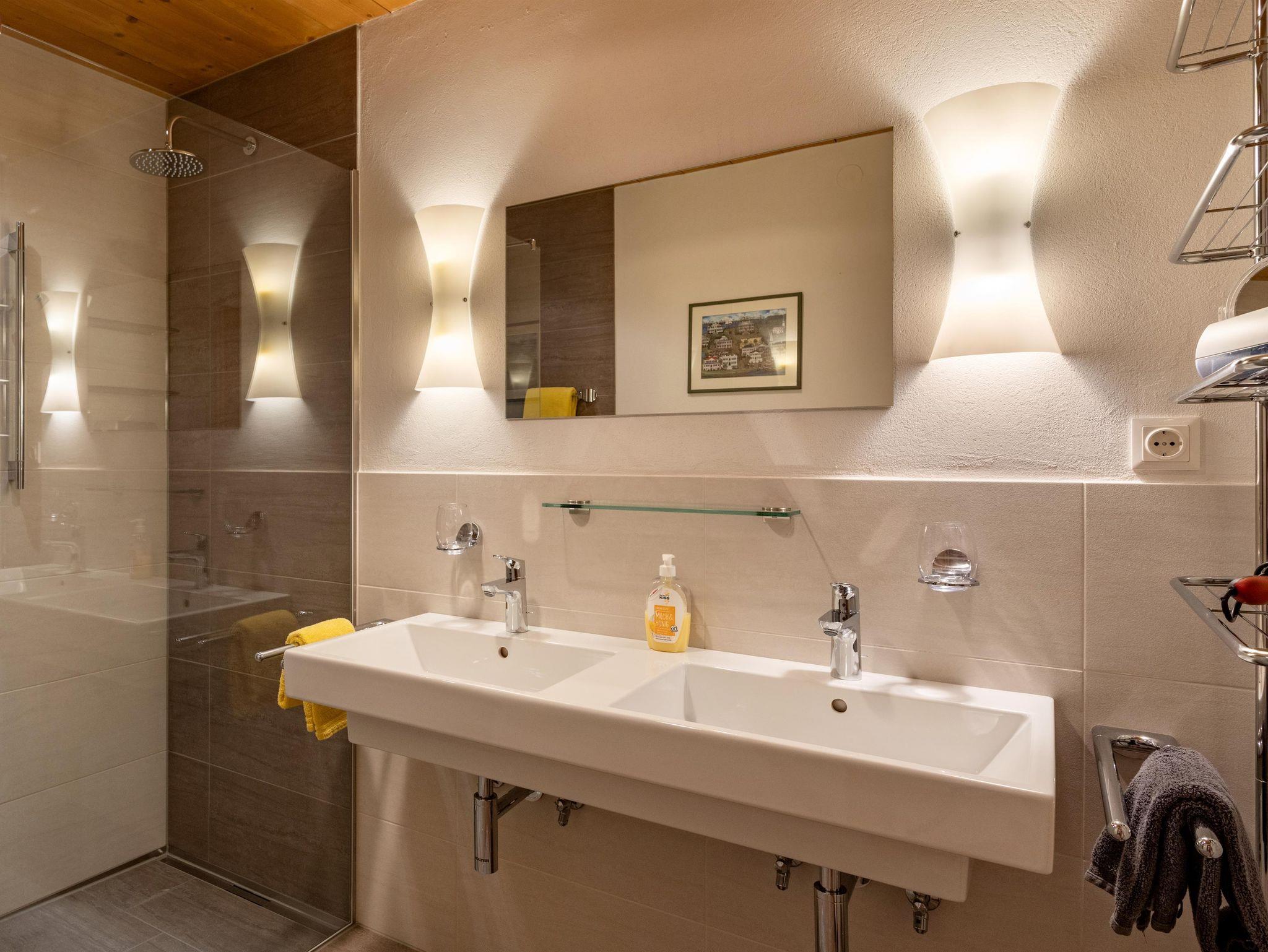 Waschmaschine, Trockner und Abstellraum für Schi, Sportgeräte und -schuhe stehen zur Verfügung.