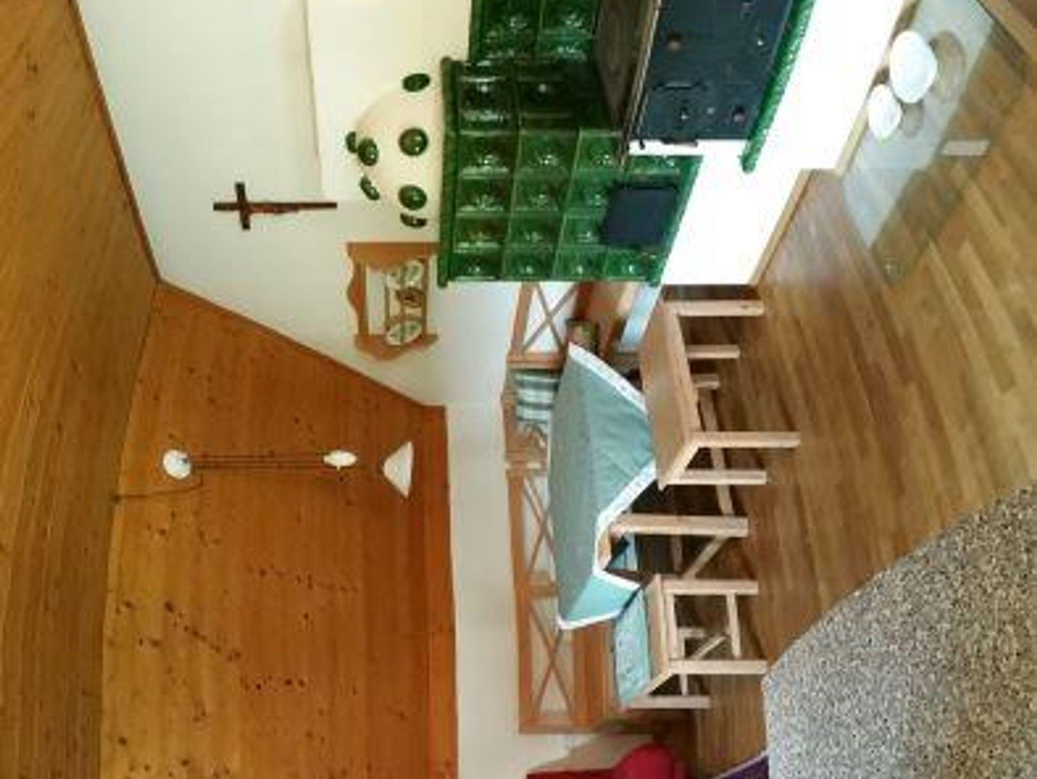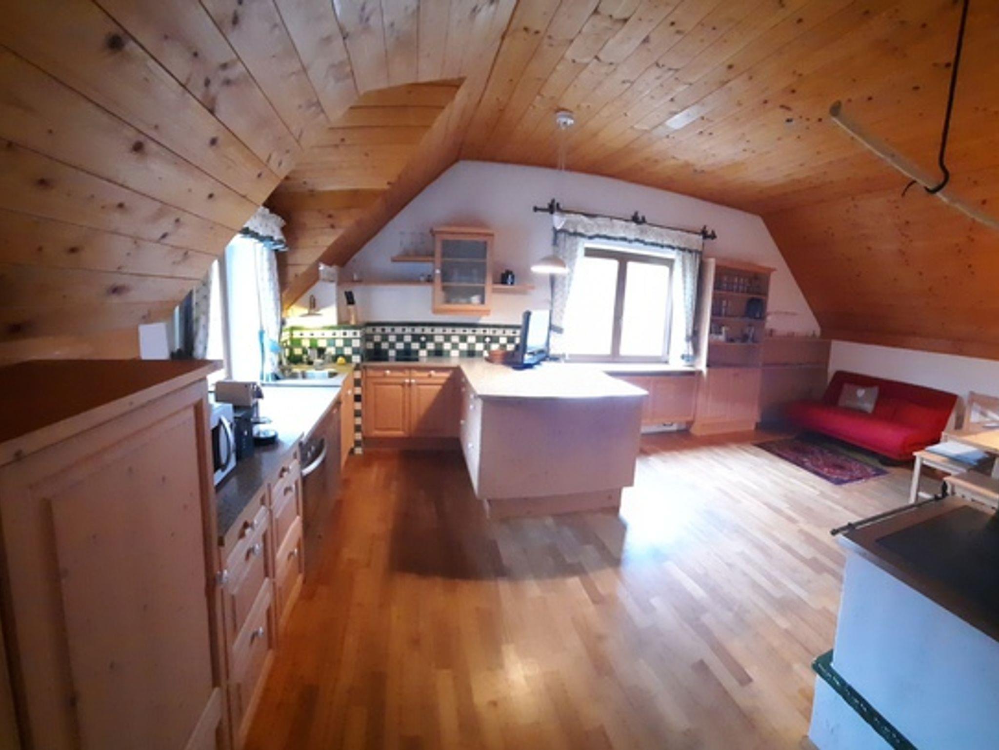 In der 56 m² großen Wohnung befinden sich eine komplett eingerichtete Wohnküche mit Holz- und Kachelofen. Ein Doppelzimmer, Badezimmer mit Dusche und WC, TV, kostenfreies W-LAN.