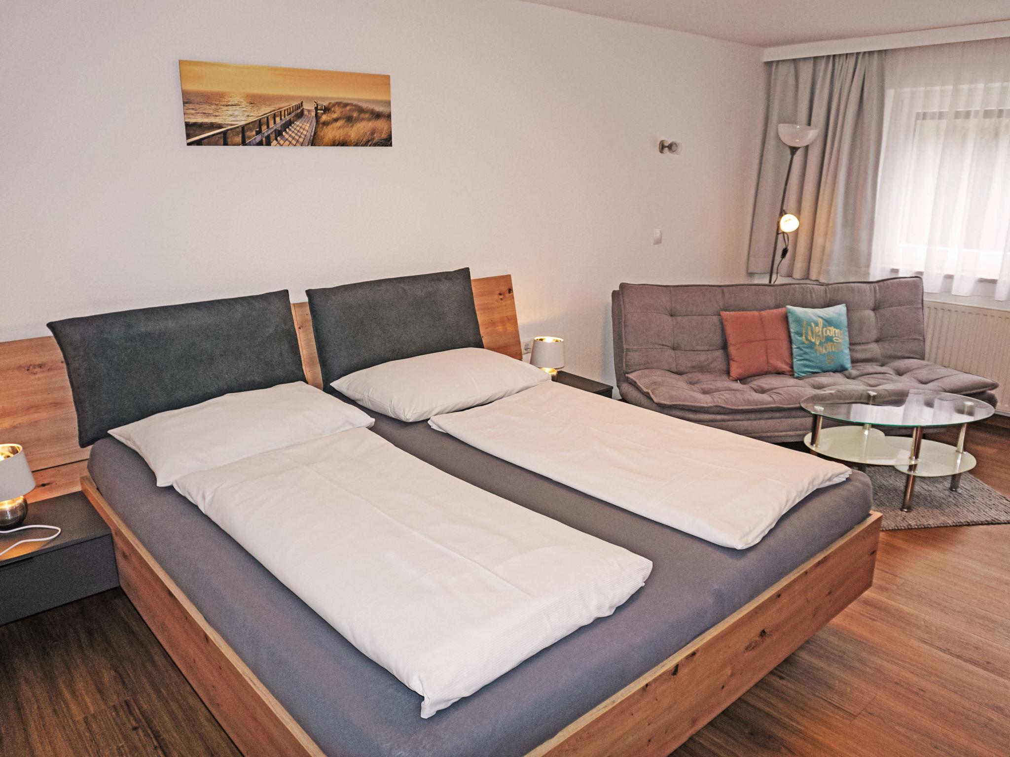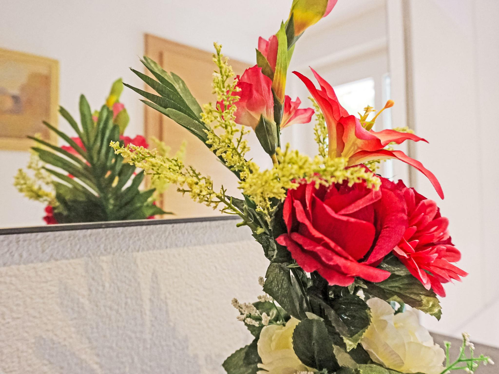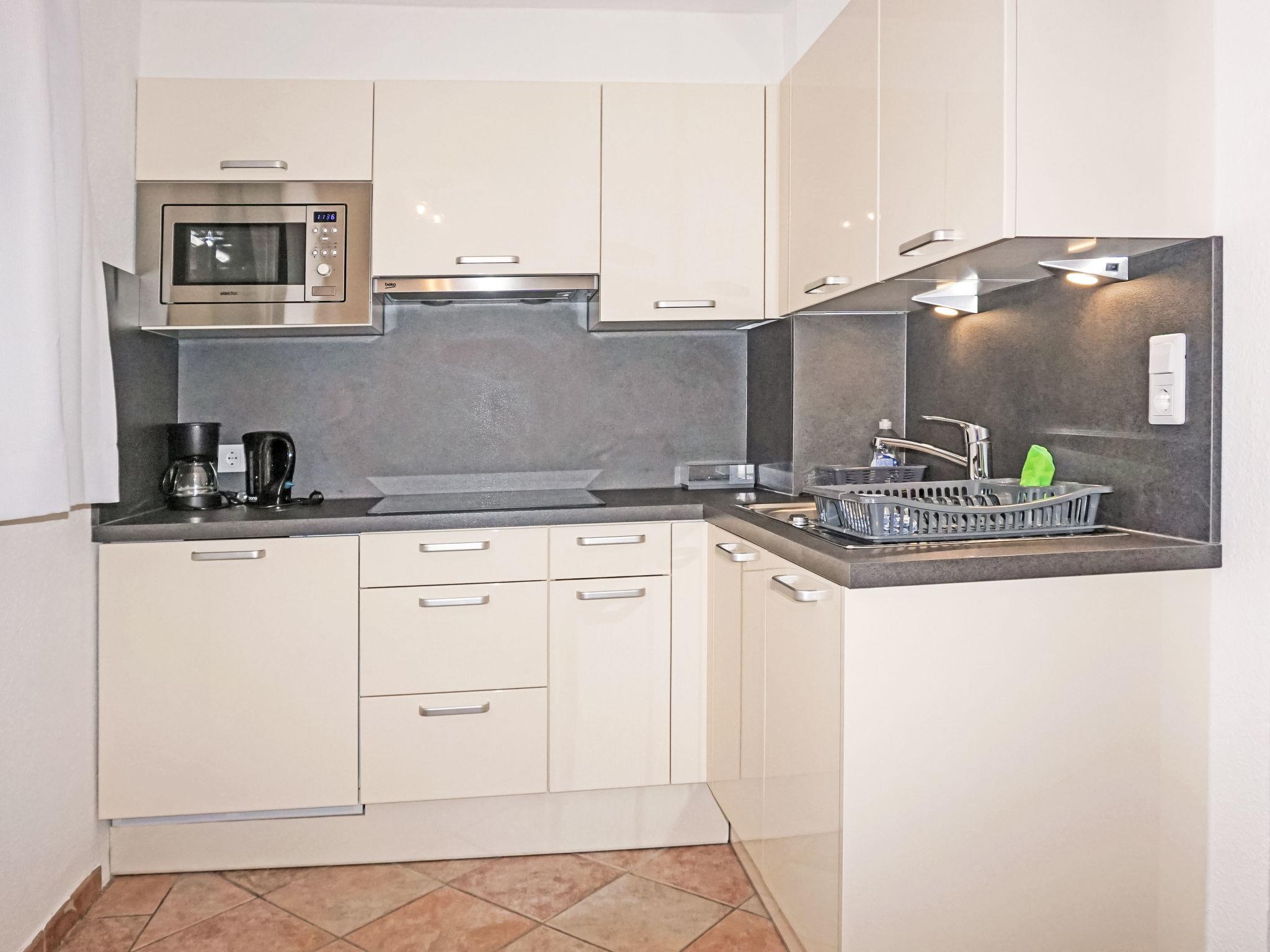 "Studio 1", 1-room studio 35 m2. Comfortable and tasteful furnishings: kitchen-/living room (dishwasher, 4 ceramic glass hob hotplates, toaster, kettle, microwave, electric coffee machine) with 1 bed (180 cm, length 200 cm), dining table and satellite TV (flat screen). Shower, sep. WC. Heating. Large terrace, west facing position. Terrace furniture, sitting area. Side view of the mountains. Facilities: Internet (WiFi, free). Parking at the house. Please note: smoke alarm.