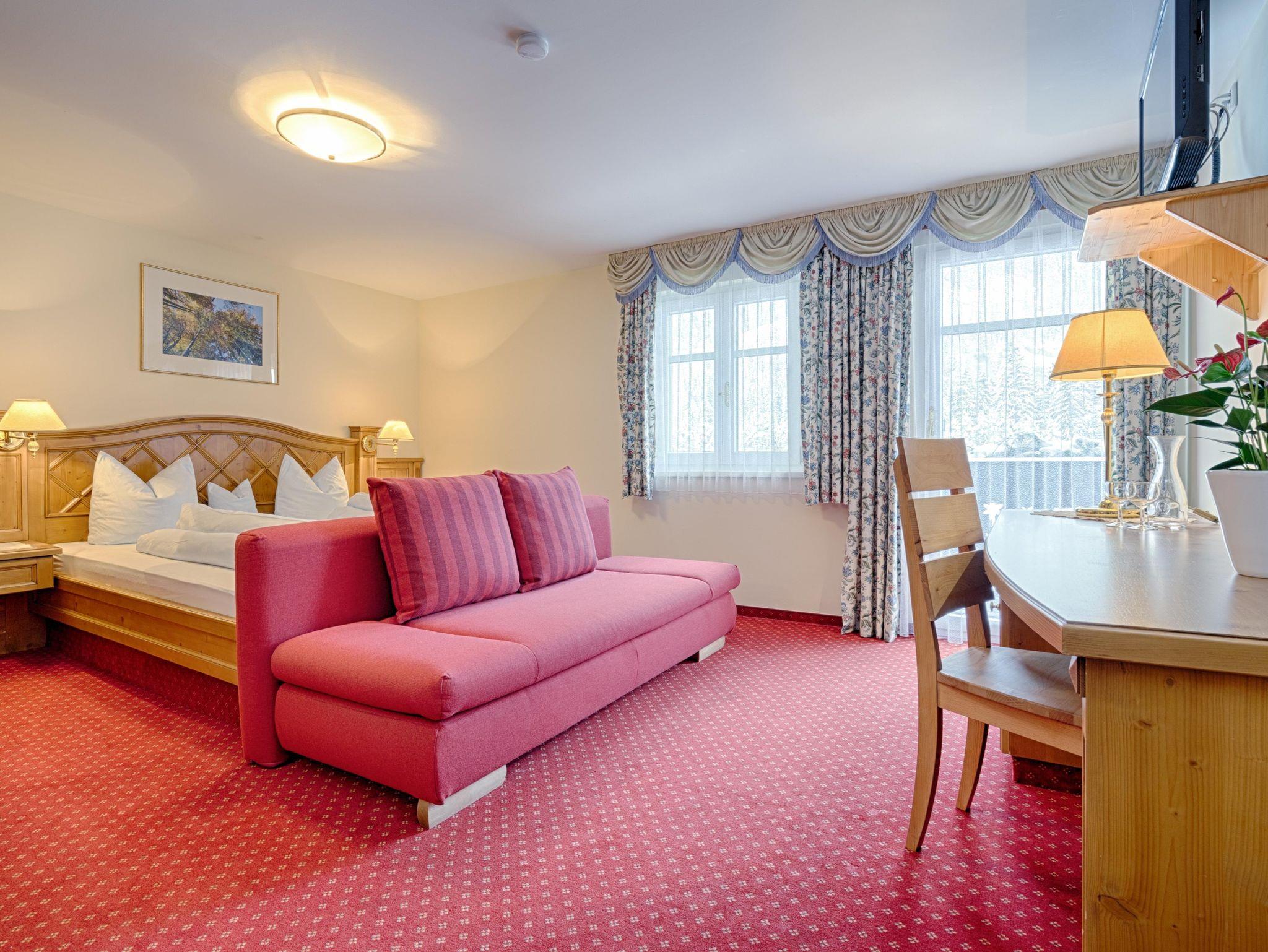 Zwei- oder Dreibettzimmer Arlberg mit Dusche, WC, Fön, SAT-TV, W-LAN, Selbstwahltelefon, Safe und teilweise Balkon