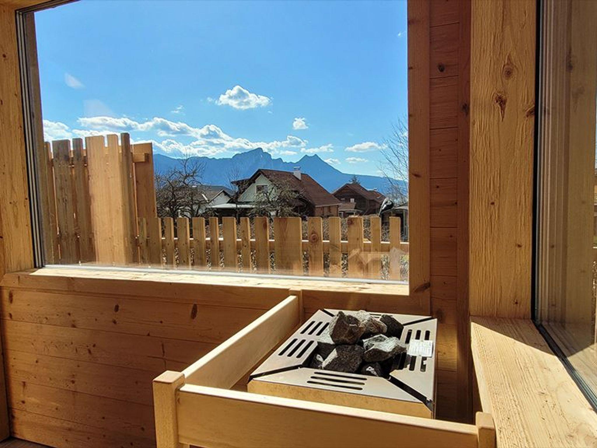 Genießen Sie gemütliche Abende auf der Terrasse mit Bergblick oder entspannen sie in der Hauseigenen Sauna mit Panoramablick auf Berg und See! Genießen Sie gemütliche Urlaubstage in dieser einzigartigen Ferienwohnung.