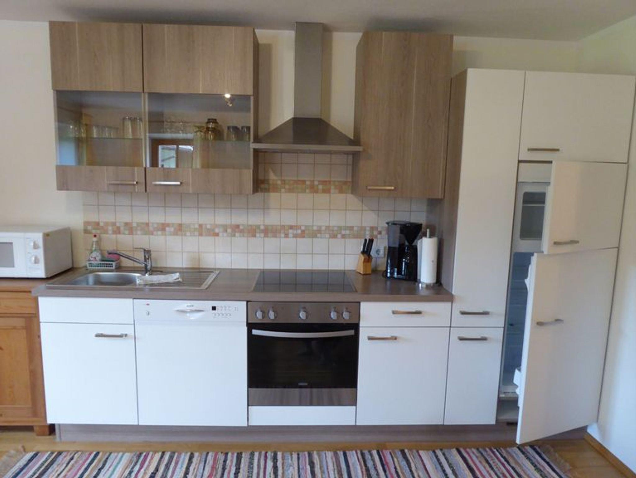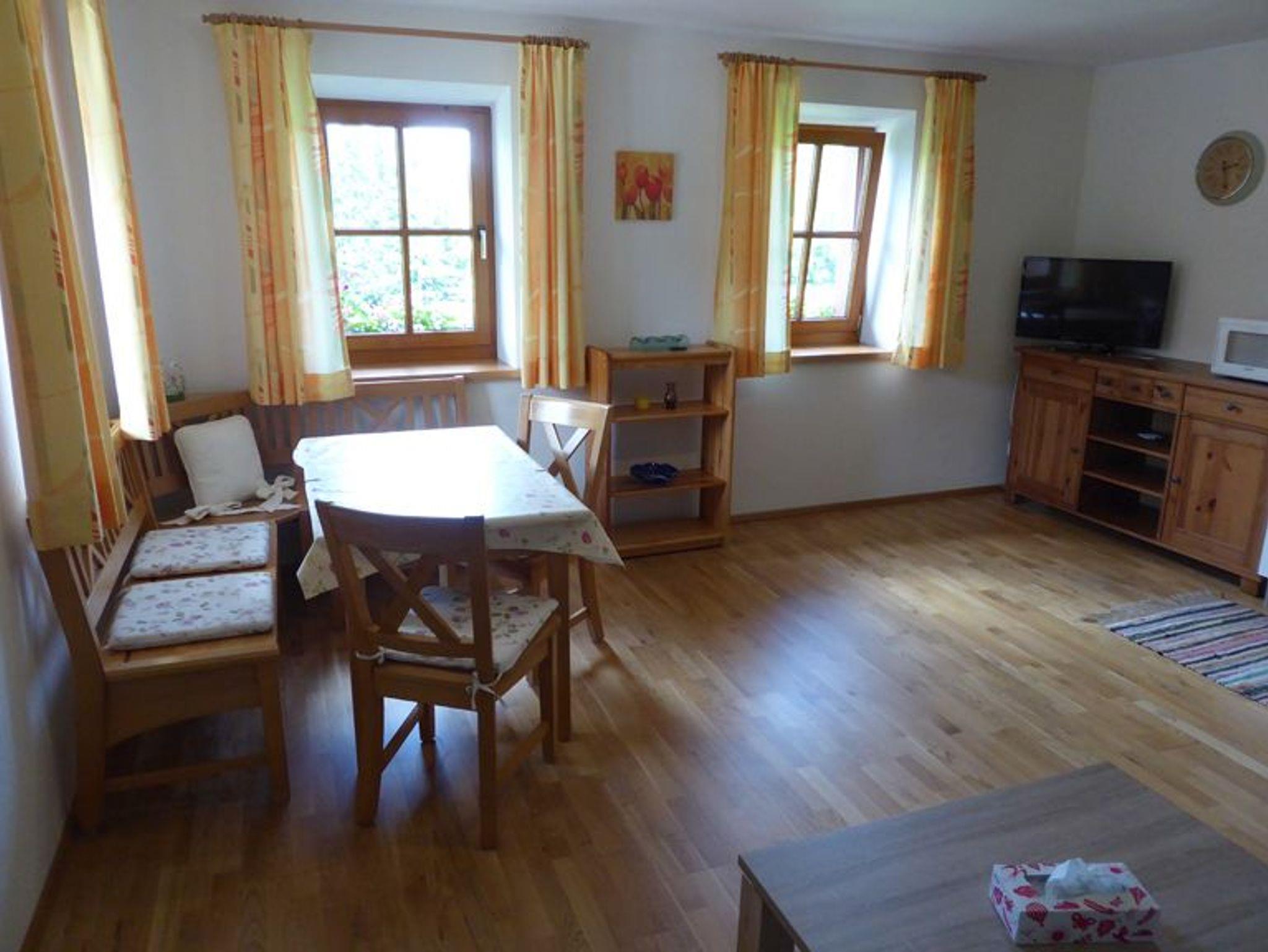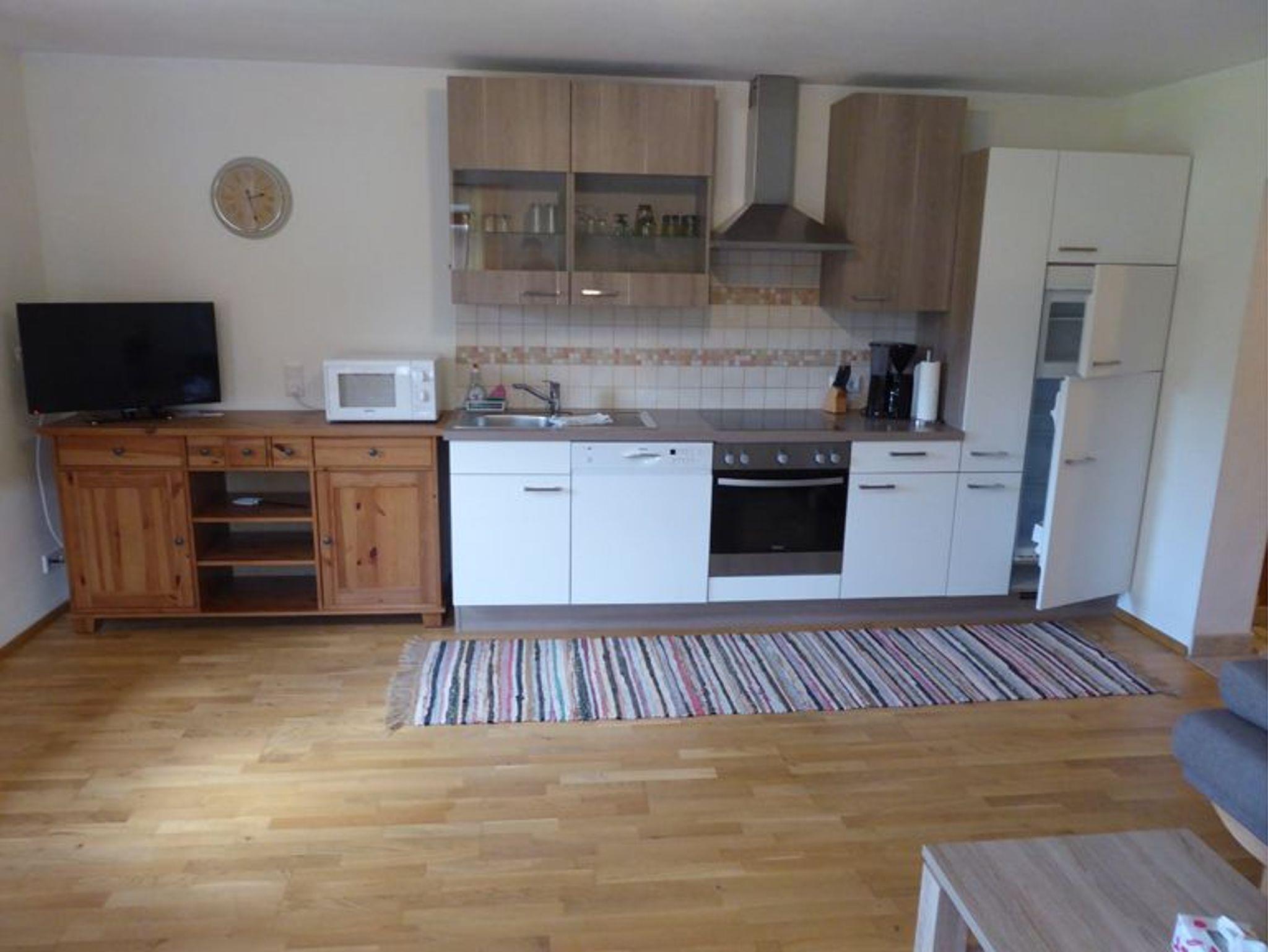 Die im ländlichen Stil eingerichtete Ferienwohnung (45 m²), verfügt über einen geräumig, gemütlichen Wohnraum, mit Küche und Ausziehcouch. Weiters ist die Küche mit einem großen Geschirrspüler und Mikrowelle ausgestattet. Das kleine, aber feine Schlafzimmer und das schöne Bad passen perfekt zum Einrichtungsstil.