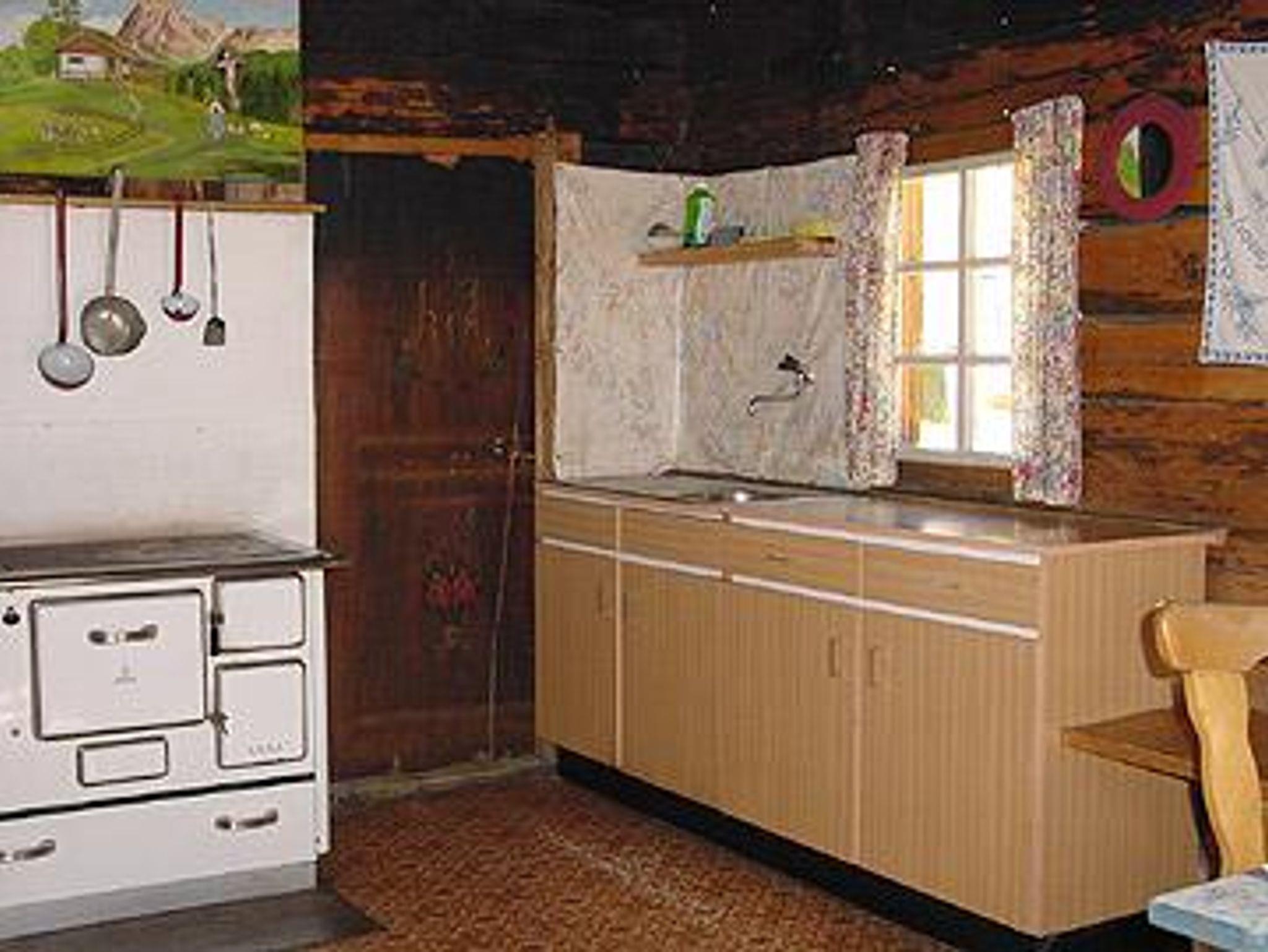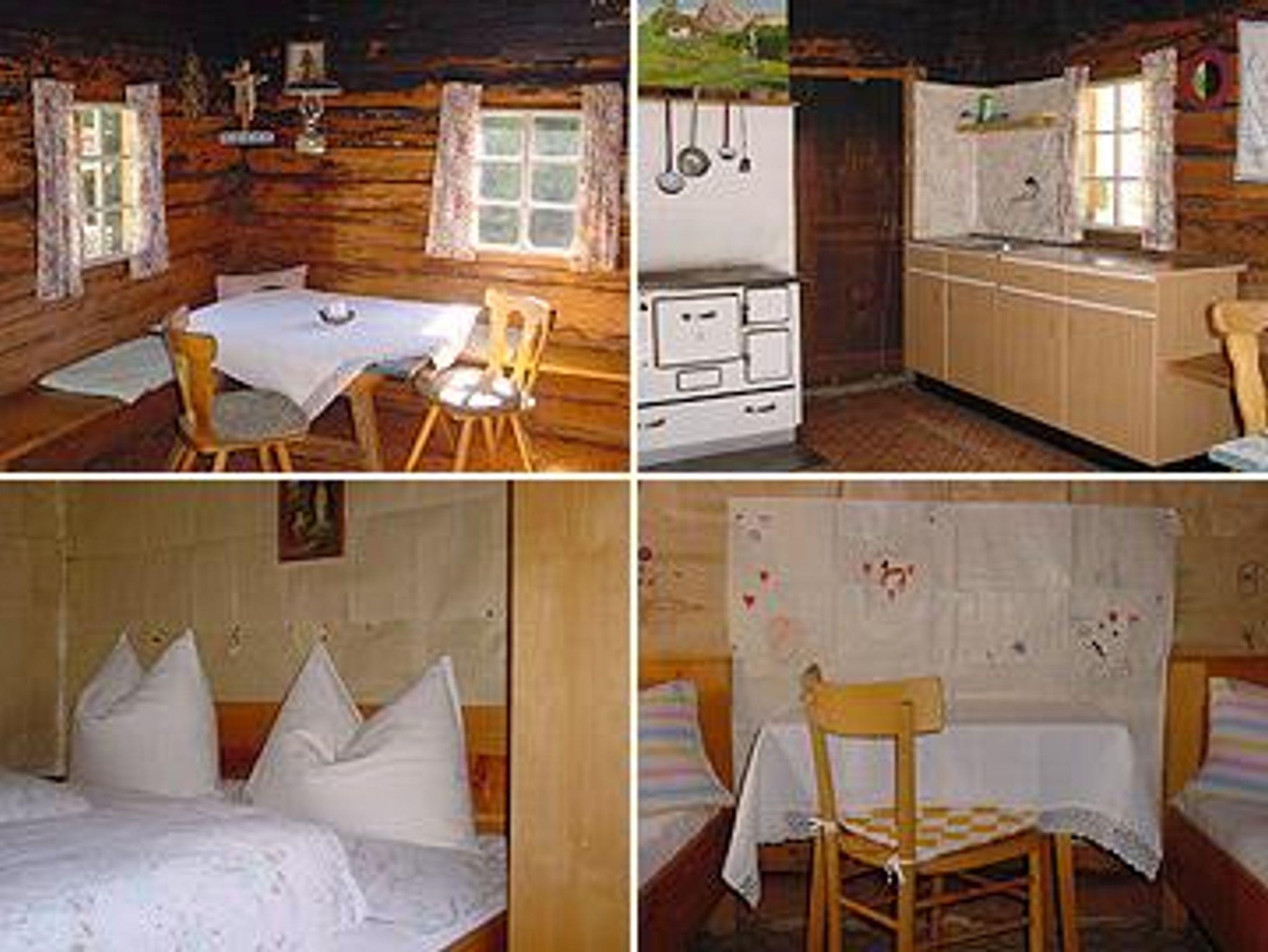Unsere Almhütte ist für 6 Personen ausgestattet: Küche mit Holzherd zum Kochen und Heizen, fließend Kaltwasser in der Küche, 3 Doppelbettzimmer, WC als Fallkloset, Balkon und Abstellraum.
