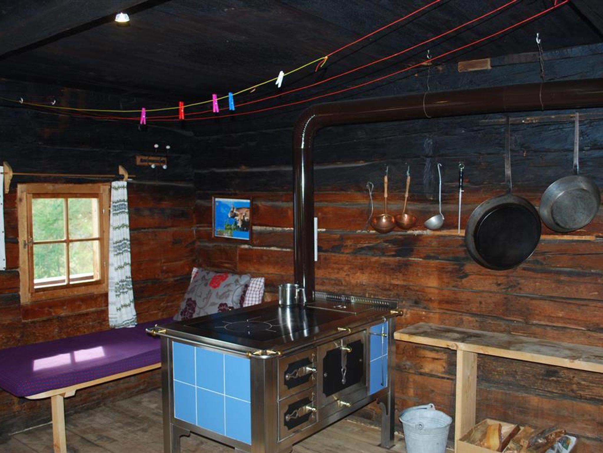 Die geräumige Almhütte bietet Platz für 9 Personen. Es ist auch ein Badezimmer mit Dusche und WC eingebaut. Schöne sonnige Lage und Aussicht.