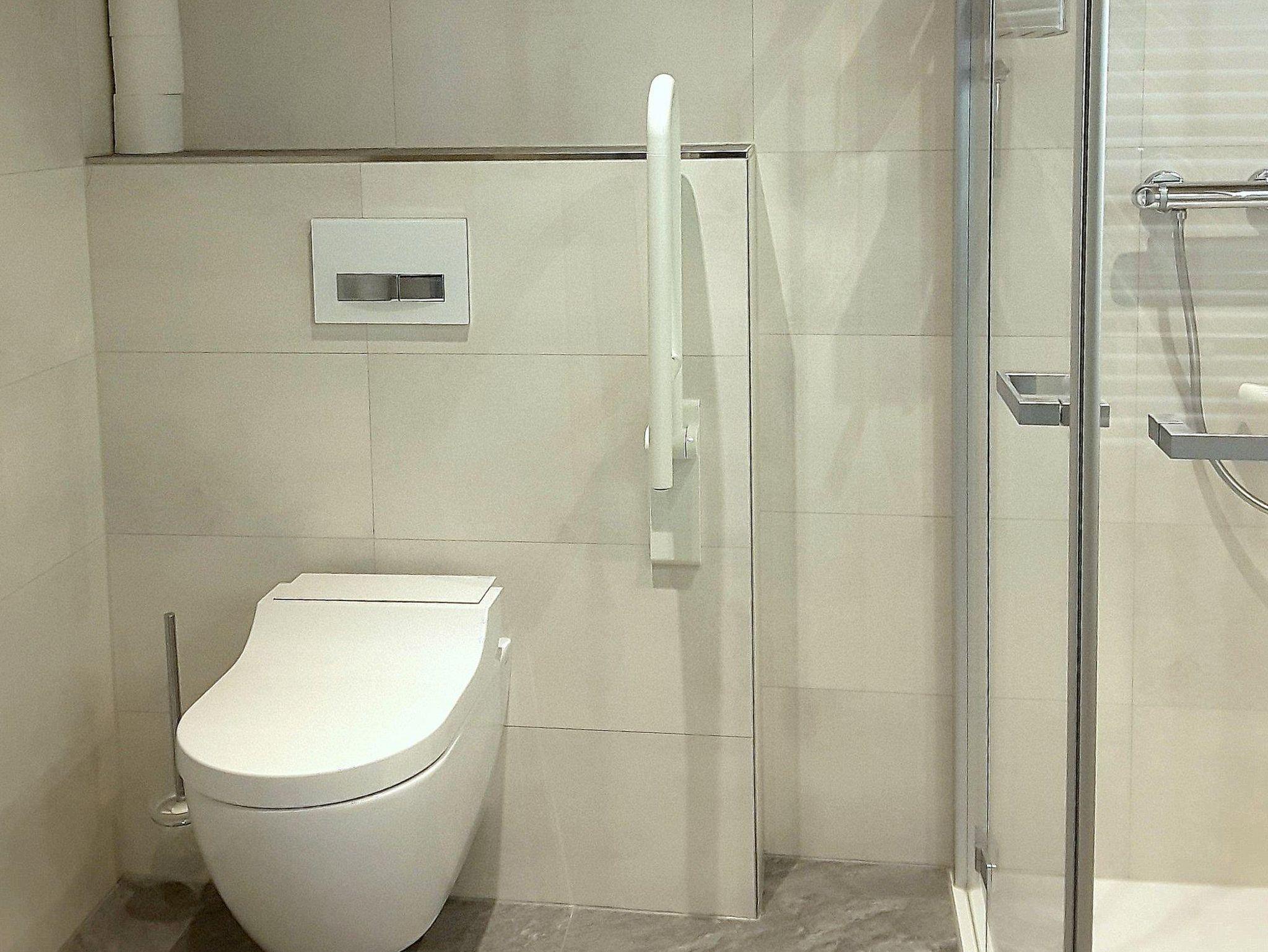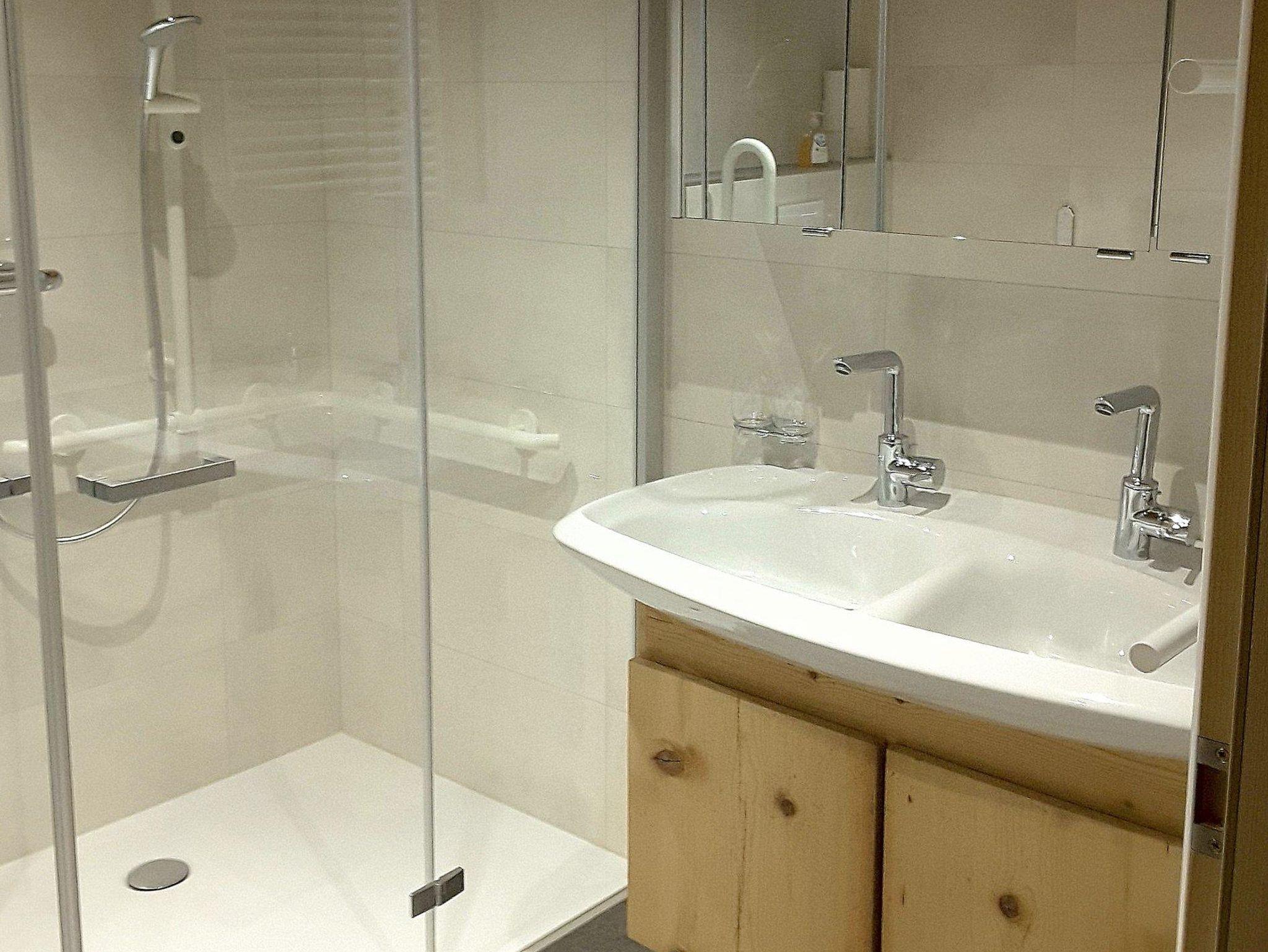 Badezimmer Dusche,Doppelwaschbecken,Waschmaschine,Dusch-WC-AquaClean