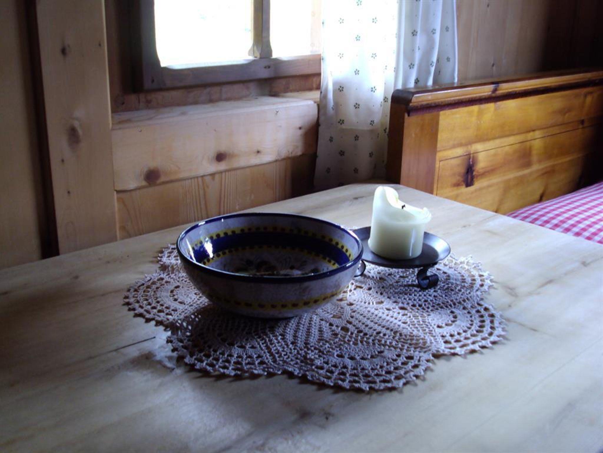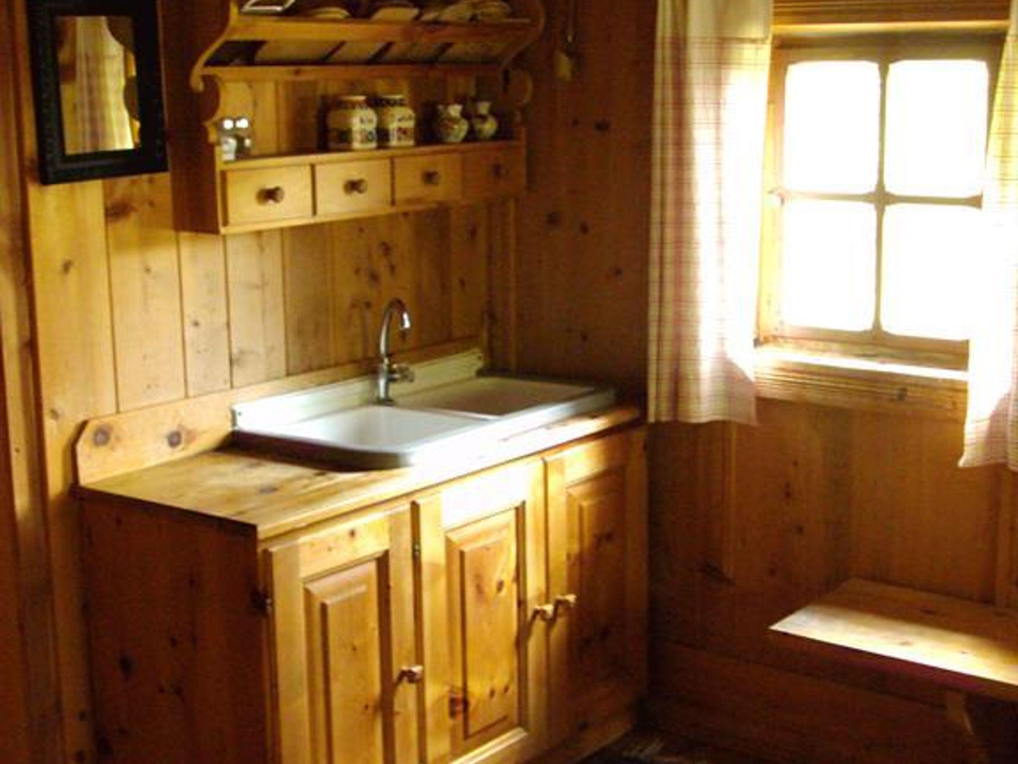 Die Hütte ist im Urzustand belassen worden, außer in der Küche, da ist Fließwasser (kalt)!