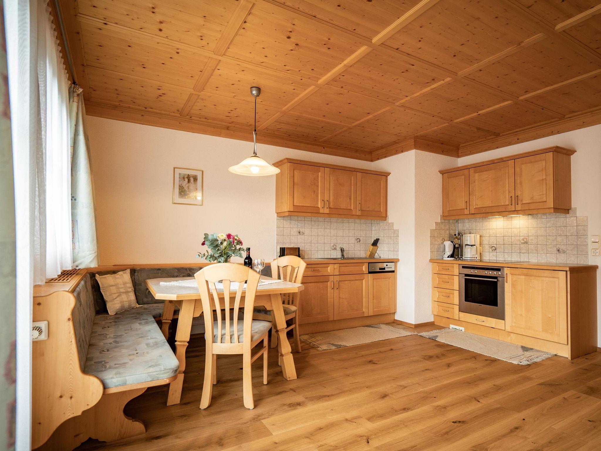 Das Apartment Dofblick für bis zu 7 Personen bietet 1 Doppelbettzimmer, 1 Dreibettzimmer mit Ost-Balkon, einen Wohnraum mit voll ausgestatteter Küche, Essbereich und Süd-Balkon, Doppelcouch, Dusche/WC, Bidet, SAT/TV, Telefon und kostenfreies W-LAN.
