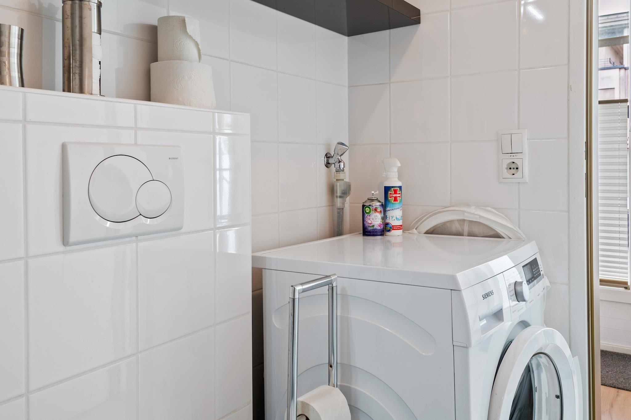 På 2. etage: (Stue(dobbeltsovesofa, spisebord, sofahjørne), Køkken(kaffemaskine, mikrobølgeovn, opvaskemaskine , køle-fryseskab), åbent køkken(komfur), soveværelse(dobbeltseng), soveværelse(dobbeltseng), badeværelse(badekar med bruser, toilet, vaskemaskine), klimaanlæg, terrasse)