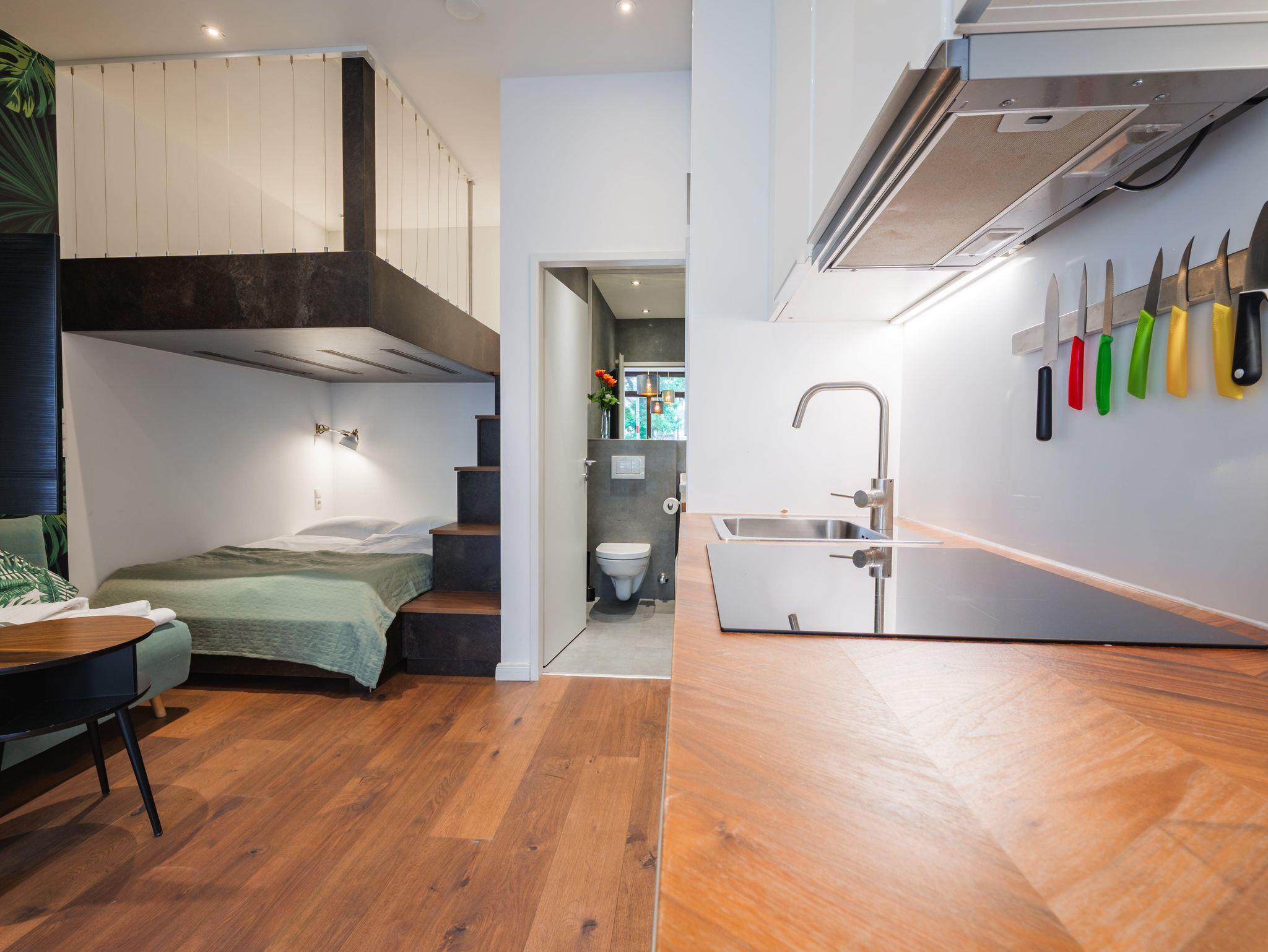Dieses Appartement zeichnet sich vor allem durch seine zentrale Lage aus, obwohl man sich hier Mitten im Geschehen befindet wir man nicht vom Lärm der Stadt überwältigt. Es ist somit der optimale Rückzugsort im Zentrum der Alpenstadt, perfekt geeignet für einen Urlaub mit der Familie oder mit Freunden. Insgesamt bietet das Appartement Raum für 4 Personen, welche in einem komfortablen Stockbett schlafen können. Allgemein ist das Appartement in einem modernen Stil eingerichtet, der es einem leicht macht, sich sofort wie zu Hause zu fühlen. Es handelt sich hierbei um eine Wohnung in der Schlaf- Wohnbereich und Küche nahtlos in einander übergehen. Das Badezimmer beinhaltet ein WC und eine schöne und geräumige Regendusche. Das Appartement verfügt über eine komplette Grundausstattung, es wird einem hier also an nichts fehlen.