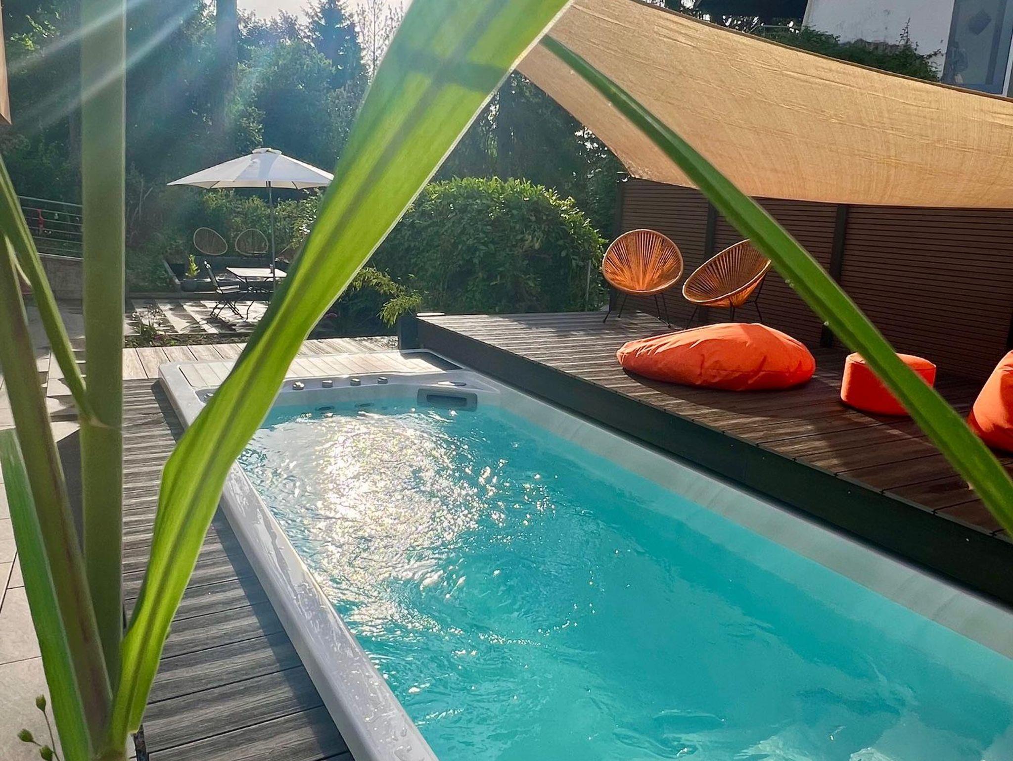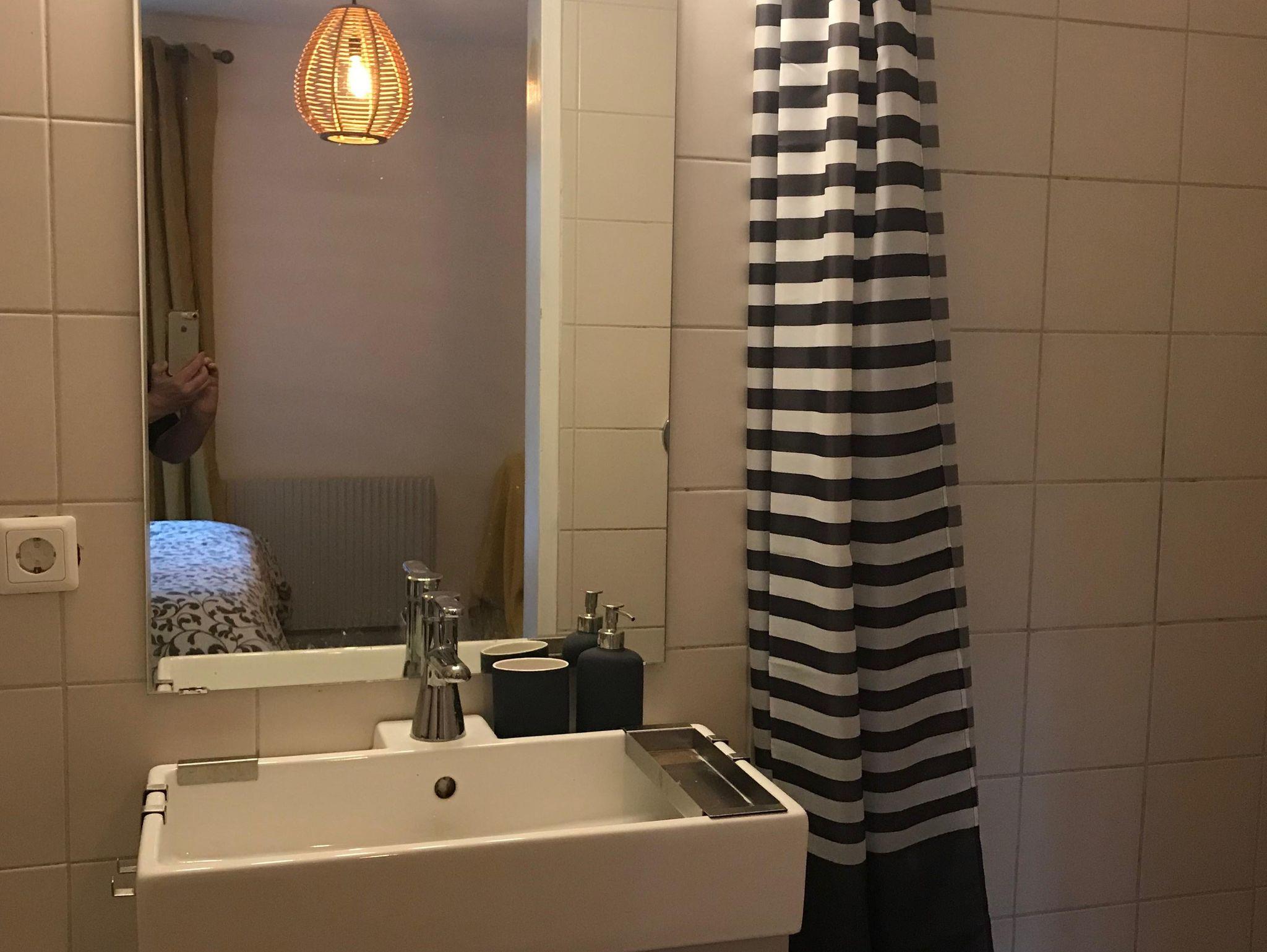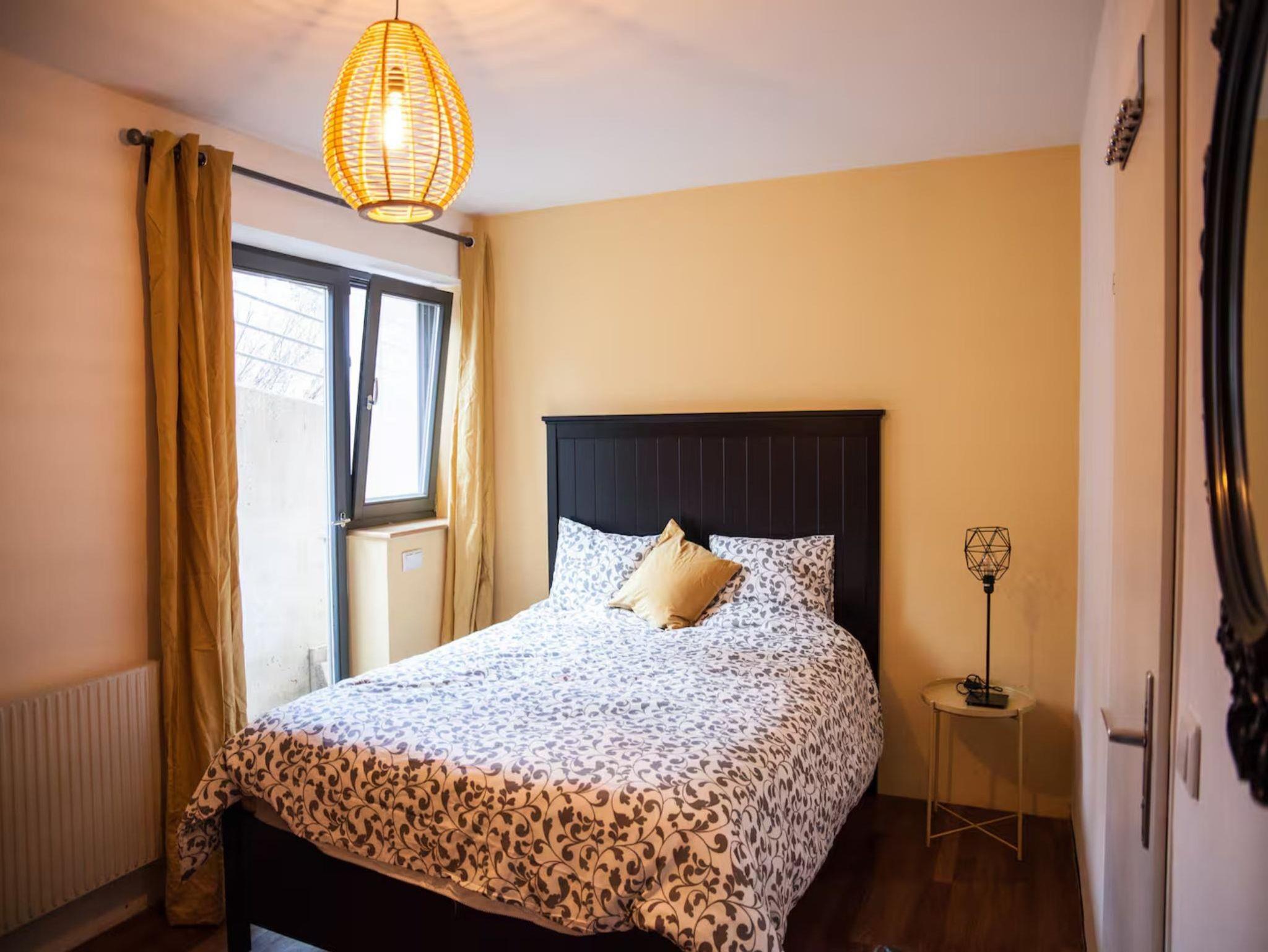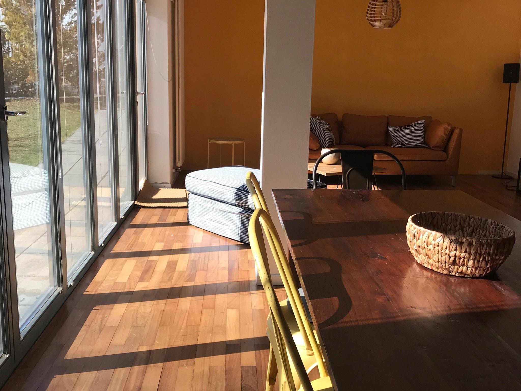 Über die gesamte Zimmerlänge eine Glasfront mit direktem Zugang zum kleinen gemütlichen Garten welcher zum Grillen und Chillen einlädt.