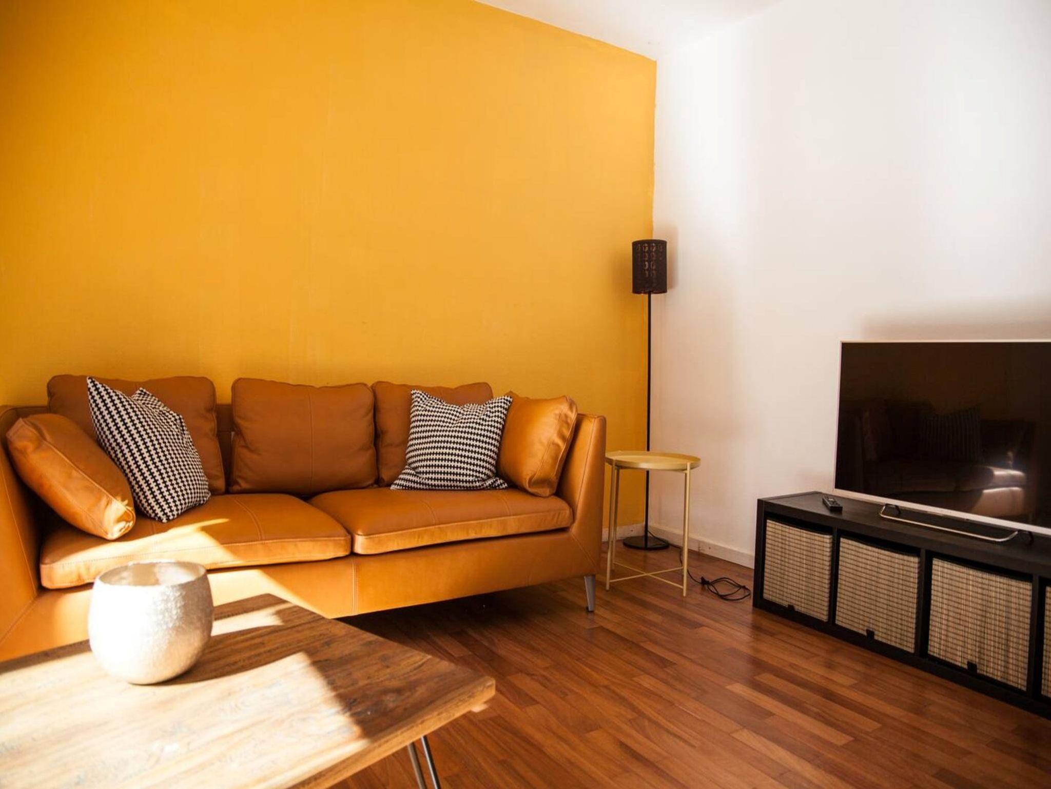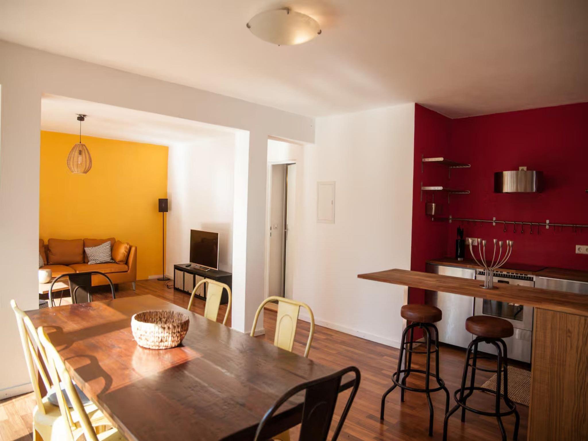 Das Wohnzimmer teilt sich in Wohn- und Essbereich, TV mit eigenem Netflix Zugang und eine kleine Stereoanlage mit Bluethoot und USB Anschluss sind vorhanden.