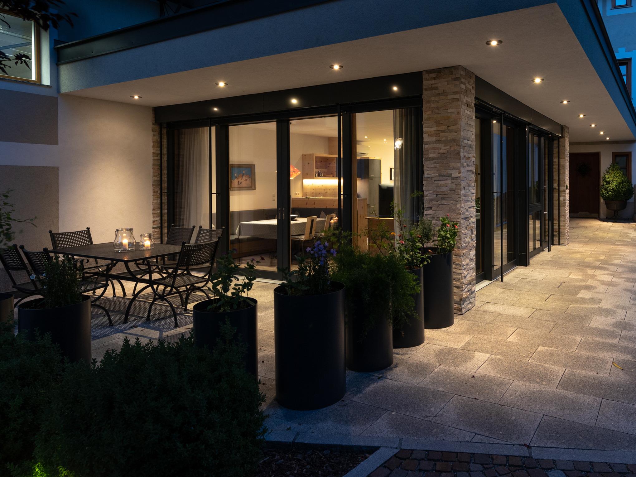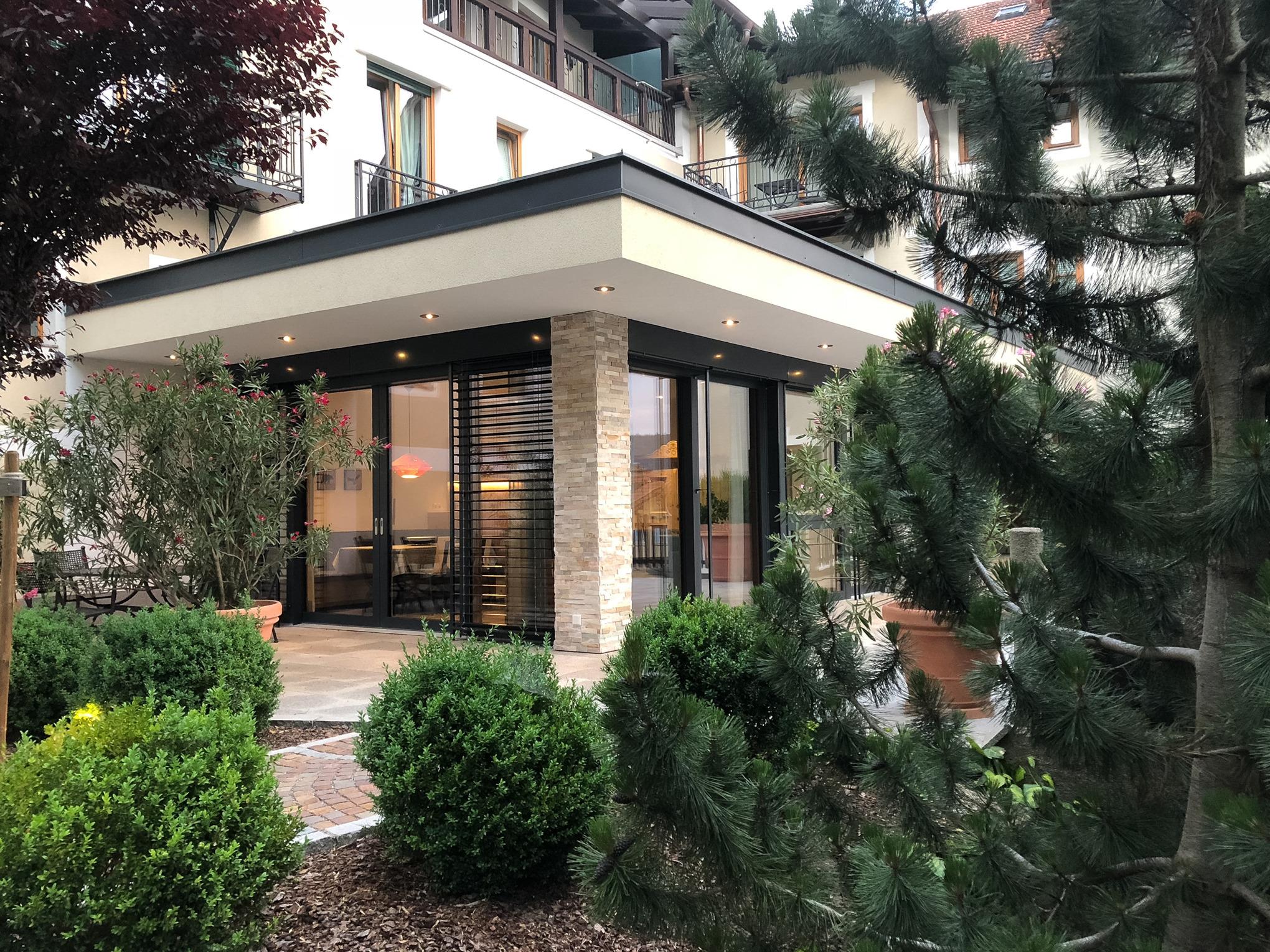 Frei, offen, großzügig - und gleichzeitig wohnlich warm. Diese Kombination schafft das Appartement "Wintergarten" mit raumhohen Fenstern aus Zirbenholz auf der Süd- und Westseite.