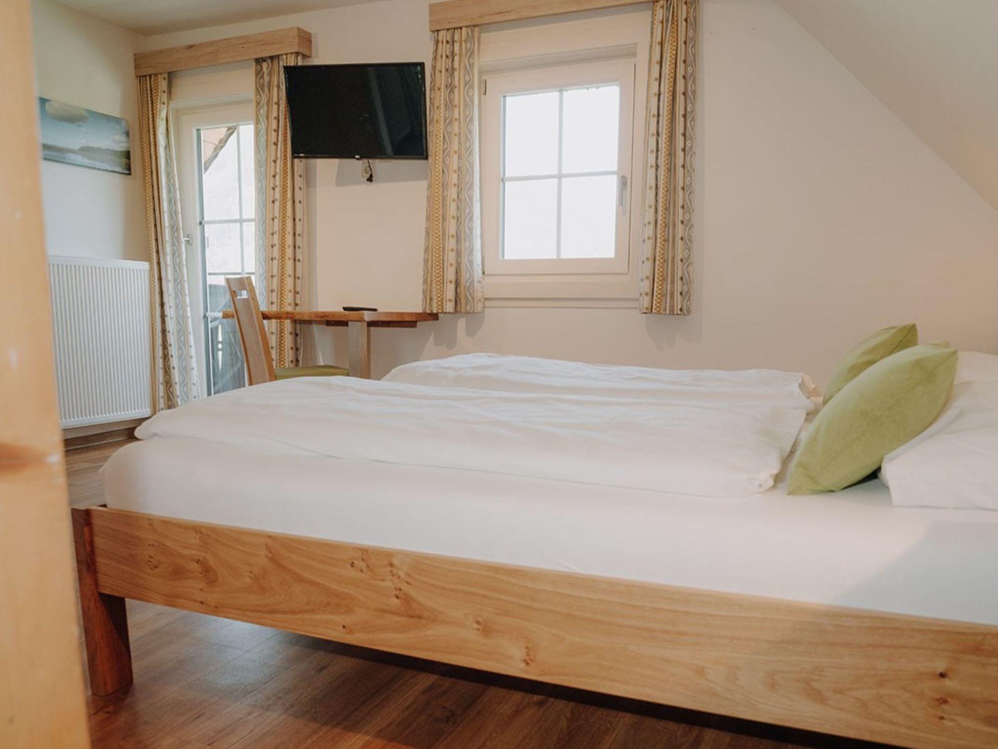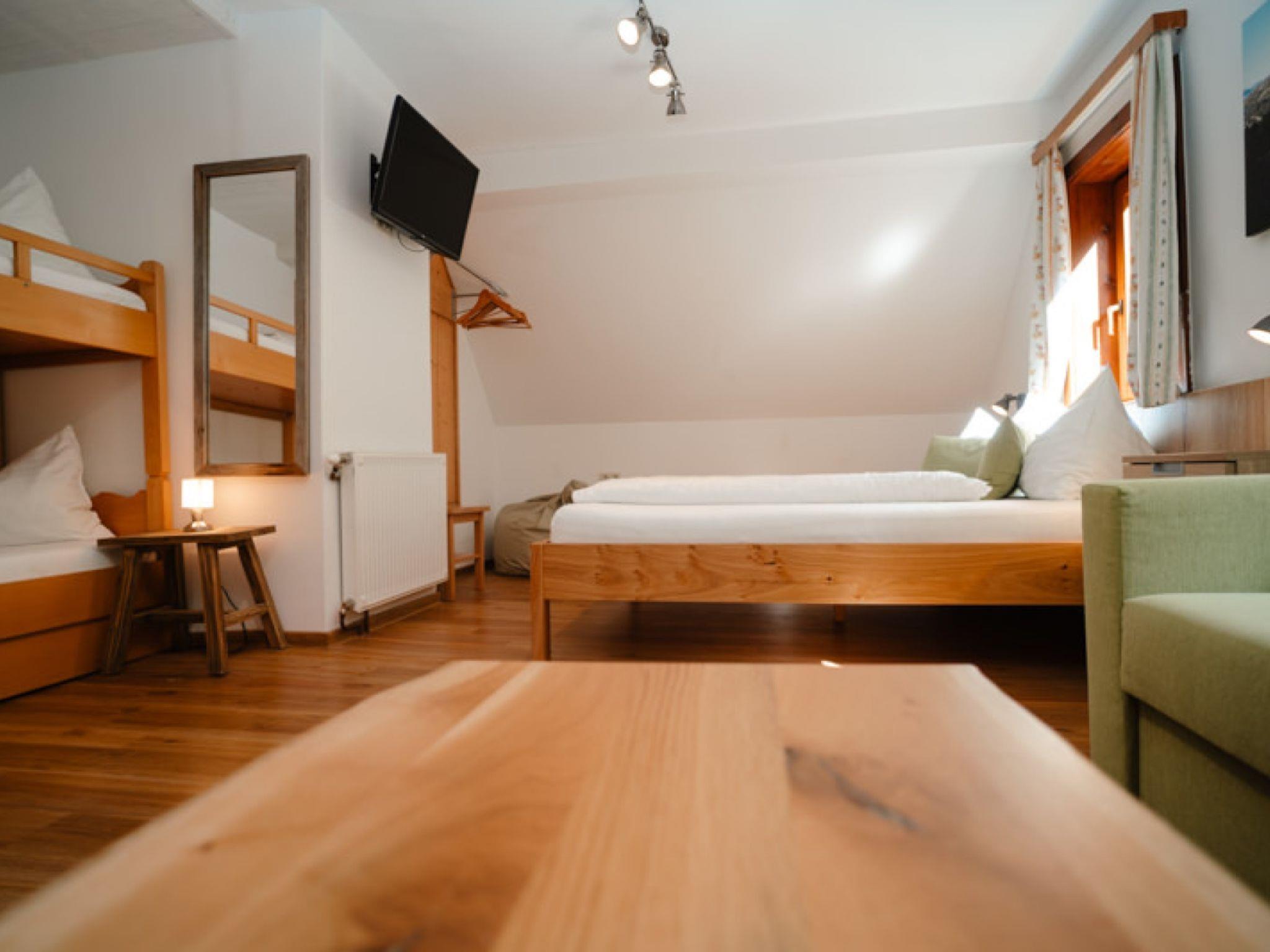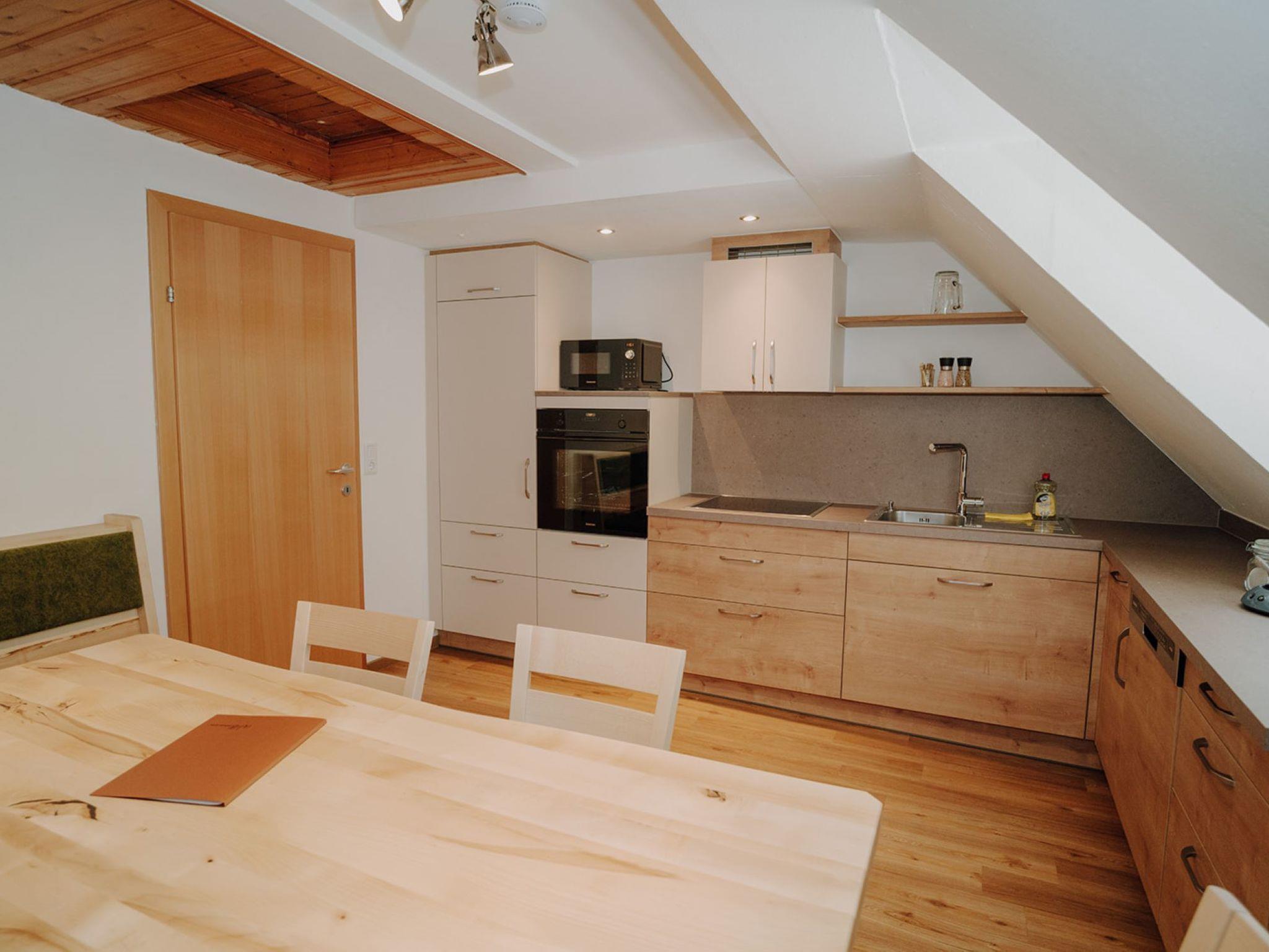 "Grimming", 3-room apartment 73 m2 on 2nd floor. Object suitable for 4 adults + 2 children. Partly with sloping ceilings, cosy furnishings: living/dining room with dining nook. 1 double bedroom with satellite TV and international TV channels (flat screen). Exit to the balcony. 1 room with 1 x 2 bunk beds, 1 double bed, satellite TV and international TV channels (flat screen). Open kitchen (oven, dishwasher, 4 induction hot plates, toaster, kettle, microwave, electric coffee machine). 2 showers/WC. Heating. Parquet floors. Balcony. Balcony furniture. Marvellous distant view of the mountains. Facilities: Internet (WiFi, free). Please note: non-smokers only. Maximum 1 pet/ dog allowed.