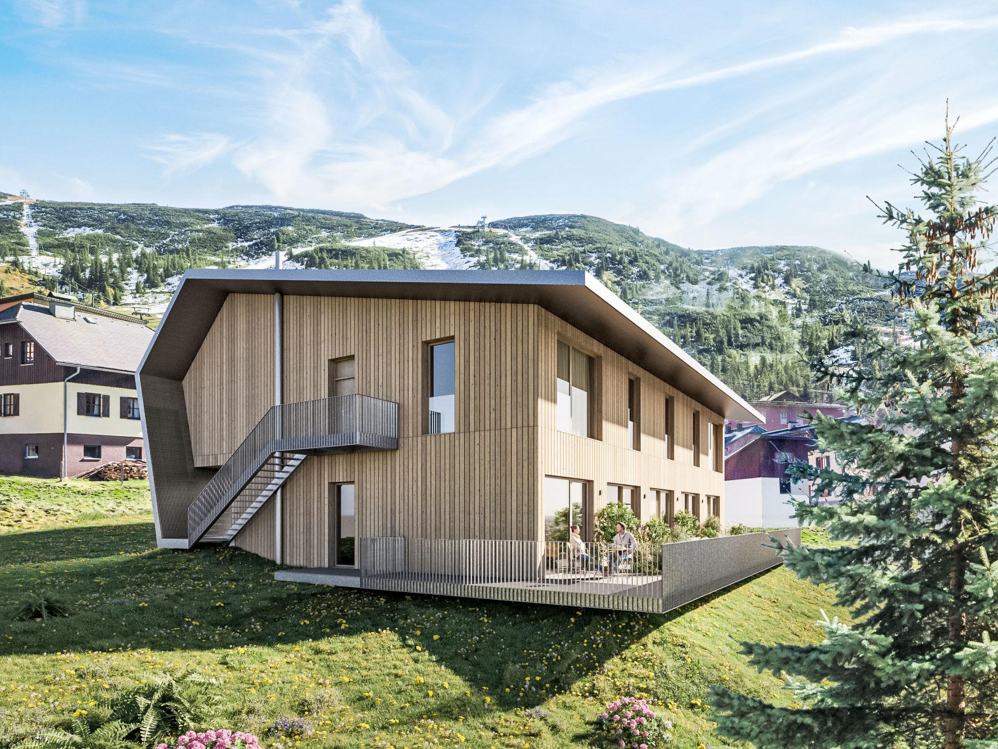 Modern apartment block "Hideaway Planneralm by Jufa Hotels", 2 storeys. 7 apartments in the residence. In the district of Planneralm 12 km from the centre of Donnersbach, in a quiet, sunny position, 3 km from the lake, 100 m from the skiing area, in the countryside. In the complex: storage room for bicycles, storage room for skis, central heating system. Parking at the house. E-charging station. Supermarket 12 km, restaurant 100 m, bus stop "Planneralm Rotbühellift" 45 m, outdoor swimming pool 22 km. Golf course (18 hole) 20 km, walking paths from the house 10 m, ski lift 100 m, chair lift, skisport facilities 100 m. Nearby attractions: Donnersbachklamm 13 km, Grimming Therme Bad Mitterndorf 35 km, KULM Skiflugschanze 33 km, Kirchenruine St. Aegidius 12 km. Well-known ski regions can easily be reached: Planneralm 100 m. Well-known lakes can easily be reached: Plannersee 3 km, Putterersee 21 km. Hiking paths: Donnersbachklamm 13 km. The photo is just an example. All houses/apartments are individually designed/furnished. The holiday properties may differ in situation, size and location.