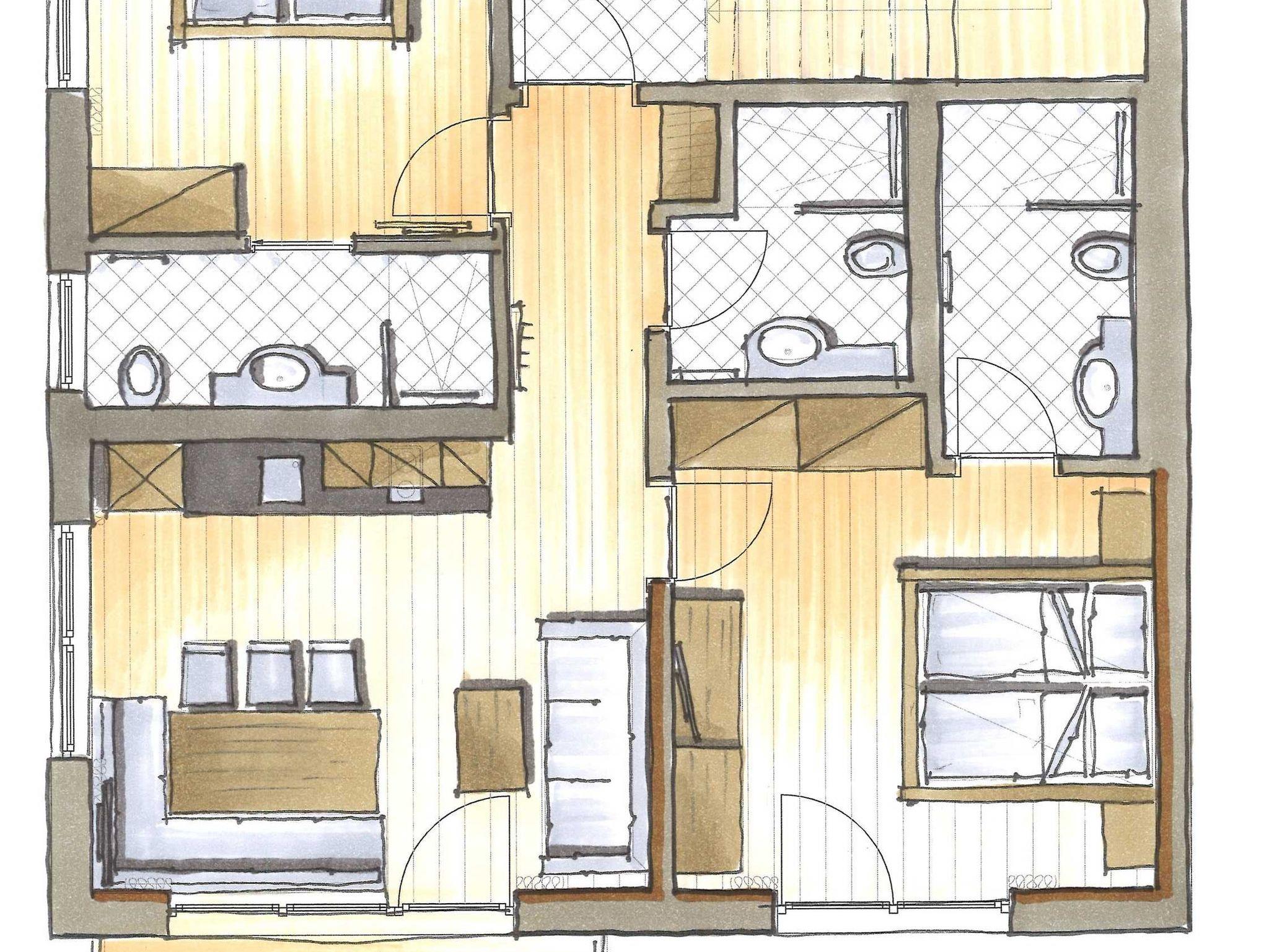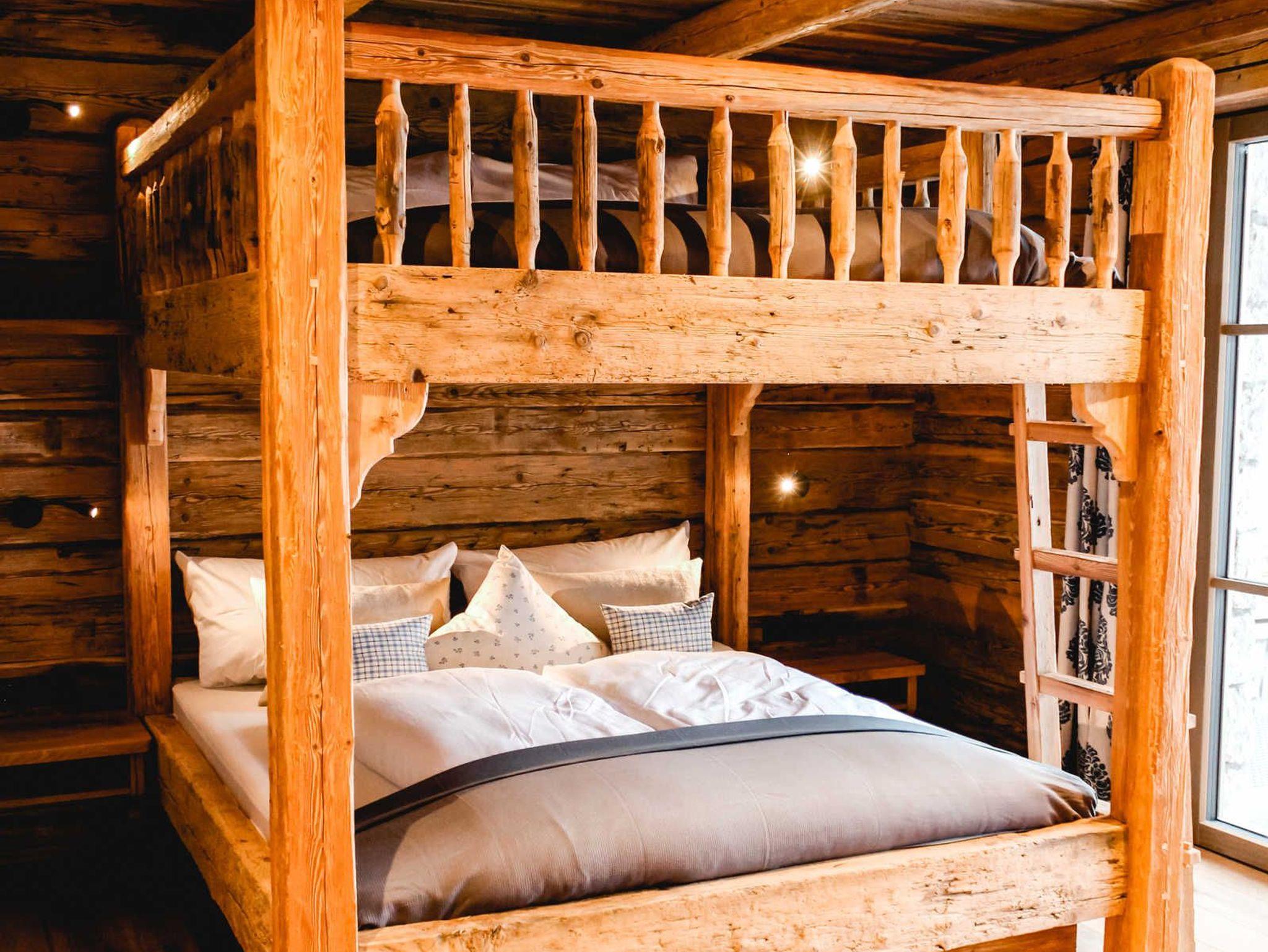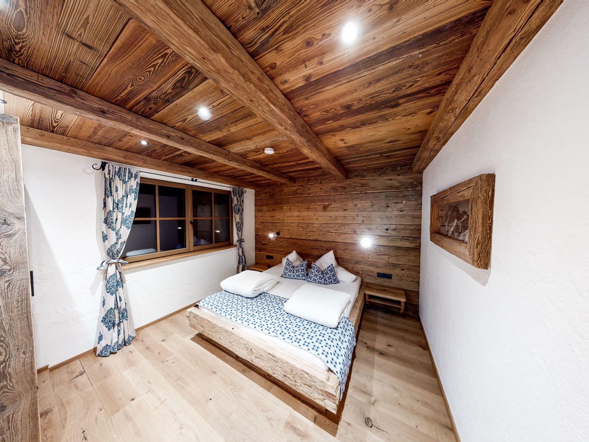 Das urige Appartement verfügt über drei Badezimmer, zwei Schlafzimmer und eine Wohnstube inklusive Küche und Ausziehcouch. Im größeren Schlafzimmer findet man neben den großen Fensterflächen und den rustikalen Antikmöbeln ein Altholz-Doppelstockbett. Das Berghütten-Ambiente ist komplett durchgängig … … in den Zimmern befinden sich Smart-TVs, sodass man nicht nur über die Wettersituation im Skigebiet stets im Bilde ist.