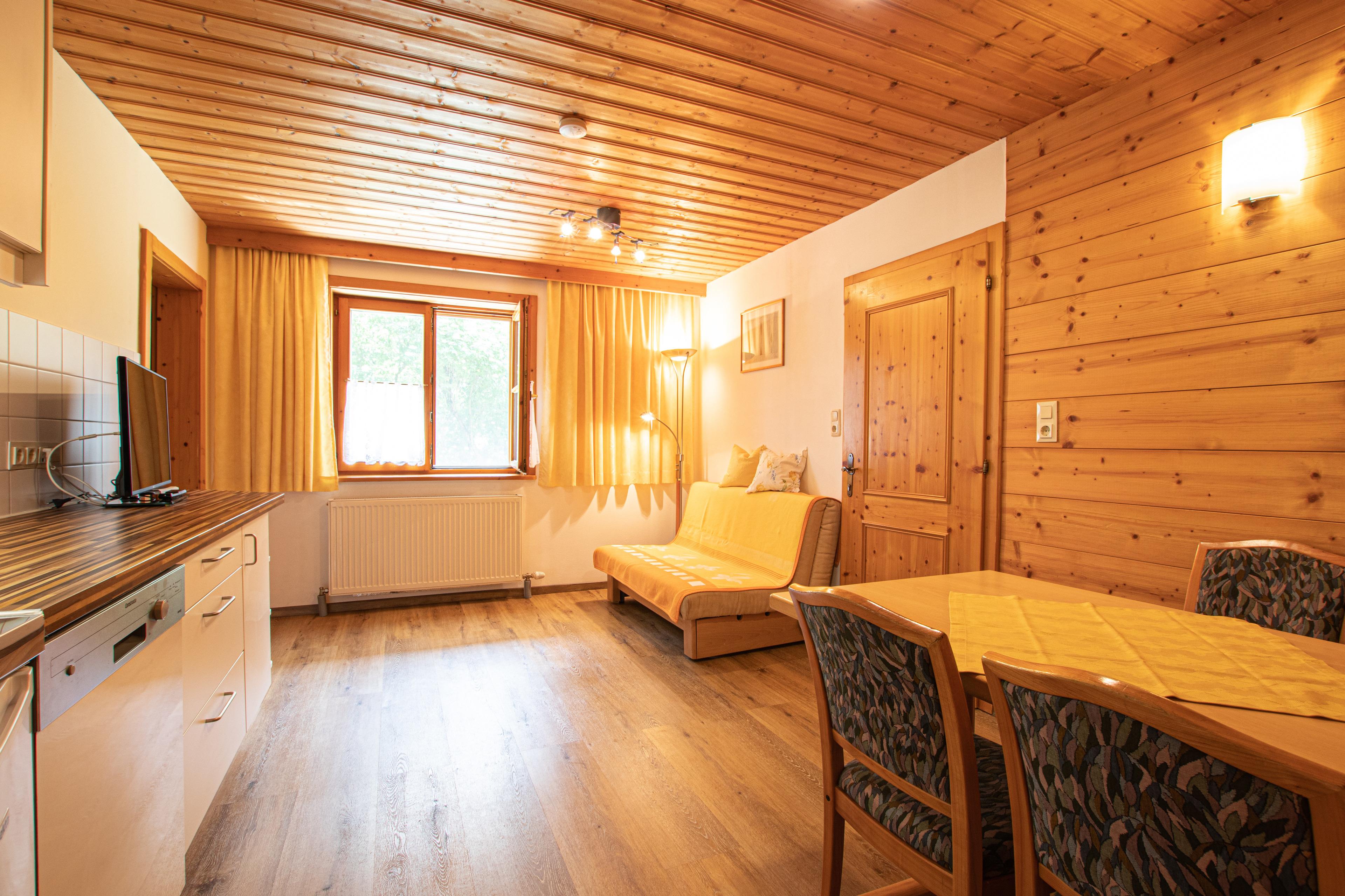 Gemütliche 2-Zimmer-Wohnung mit 45m² im Erdgeschoss für maximal 3 Personen. Ein Schlafzimmer mit Doppelbett, Wohn-/Schlafraum mit Schlafcouch, Essplatz für 3 Personen und Kochnische. Ausgestattet mit Geschirrspüler, Kühlschrank, Kaffeemaschine, Wasserkocher, Toaster und Mikrowelle. Ellmau, Going, Scheffau und Söll