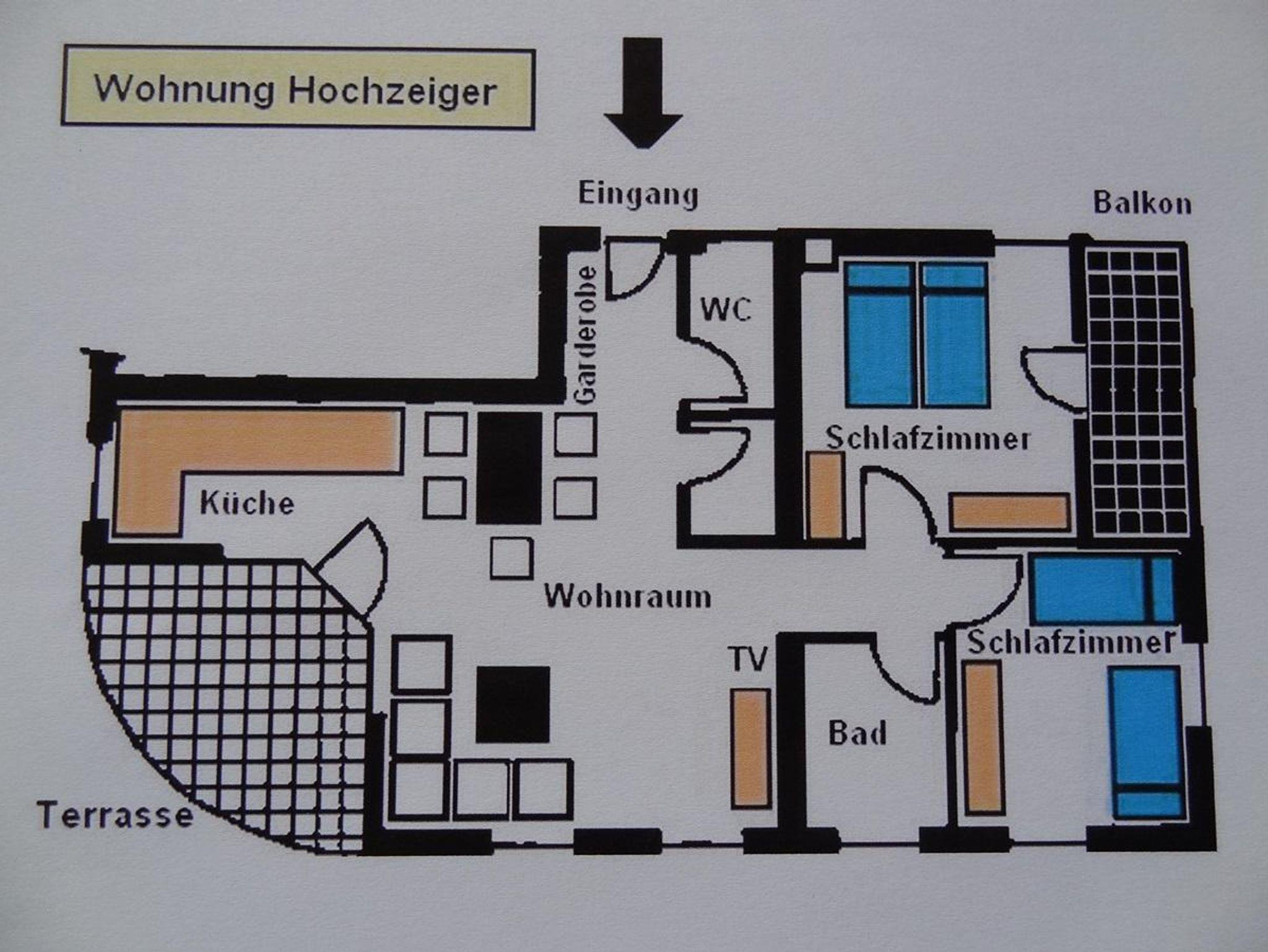 Die 3 - Zimmer Wohnung Hochzeiger mit 62 m² besteht aus: . 2 getrennten Schlafzimmern ( 1x Doppel, 1x 2 Bettzimmer) . Wohnzimmer mit Doppelausziehcouch . ein eigener Abstellraum mit Regalen . bestens ausgestatteter Küche mit Mikrowelle, Toaster, Geschirrspüler, Wasserkocher, Safe . Bettwäsche, Hand-, Bade- und Geschirrtücher sind vorhanden . SAT TV, Stereoanlage mit CD-Player, . Internetanschluss . Bad + WC sind separat, Fön, Kosmetikspiegel, Seife, Duschaufbau mit Glasschiebetür . Balkon und Terrasse mit Süd-West Lage